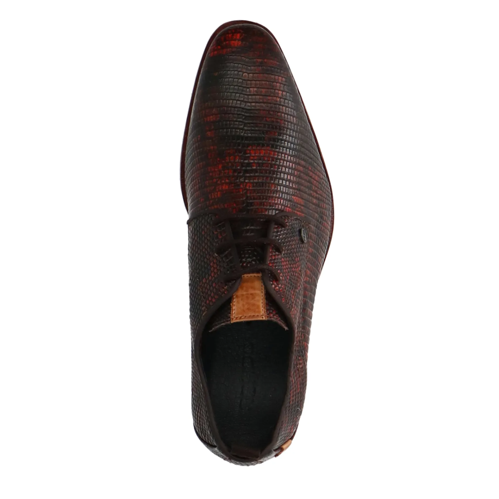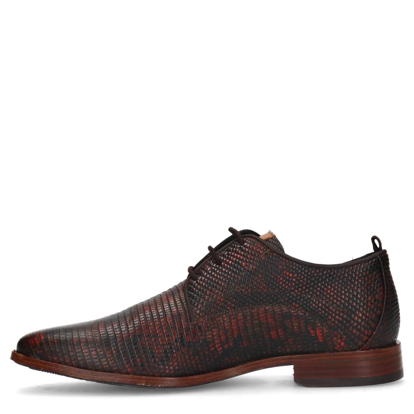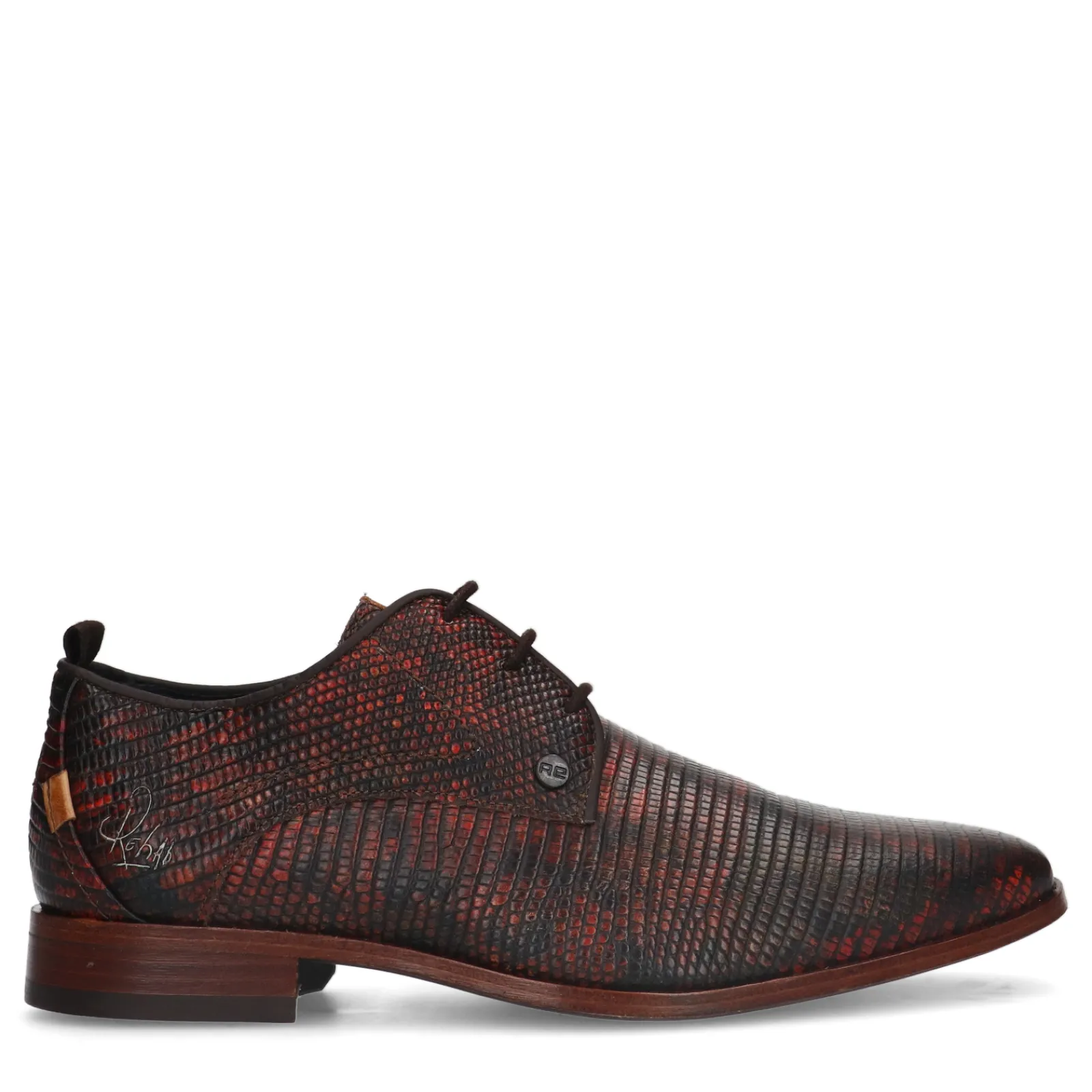 Rode Casual Veterschoenen Met Print Van Het Merk Rehab. Deveterschoenen Hebben Een Uniek Patroon Met Verschillende Rode Kleuren. De Schoenen Zijn Aan De Binnen- En Buitenzijde Gemaakt Van Leer. Maak Gebruik Van De Juiste Onderhoudsproducten!
