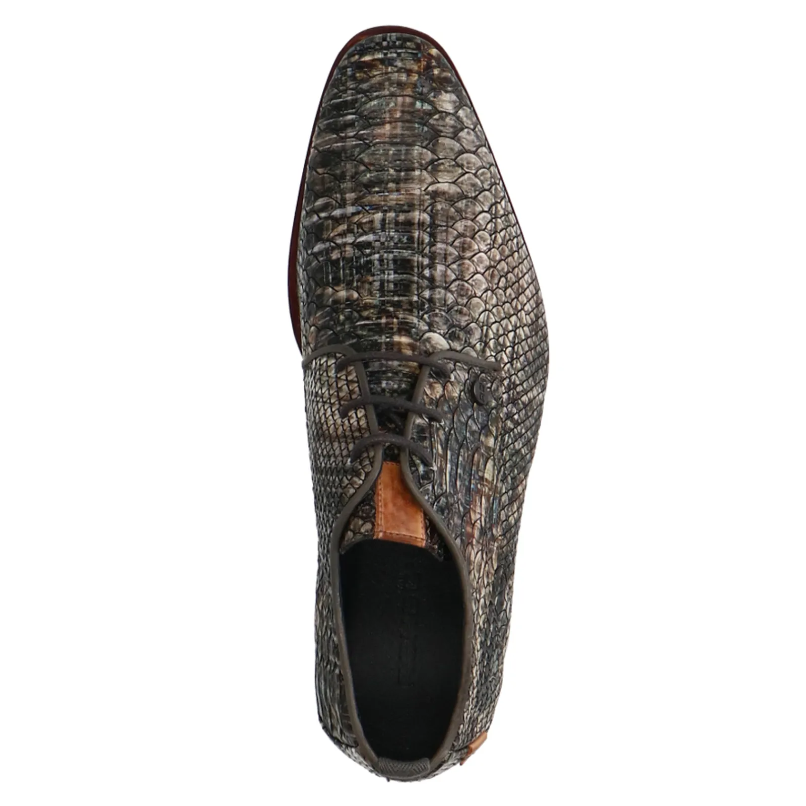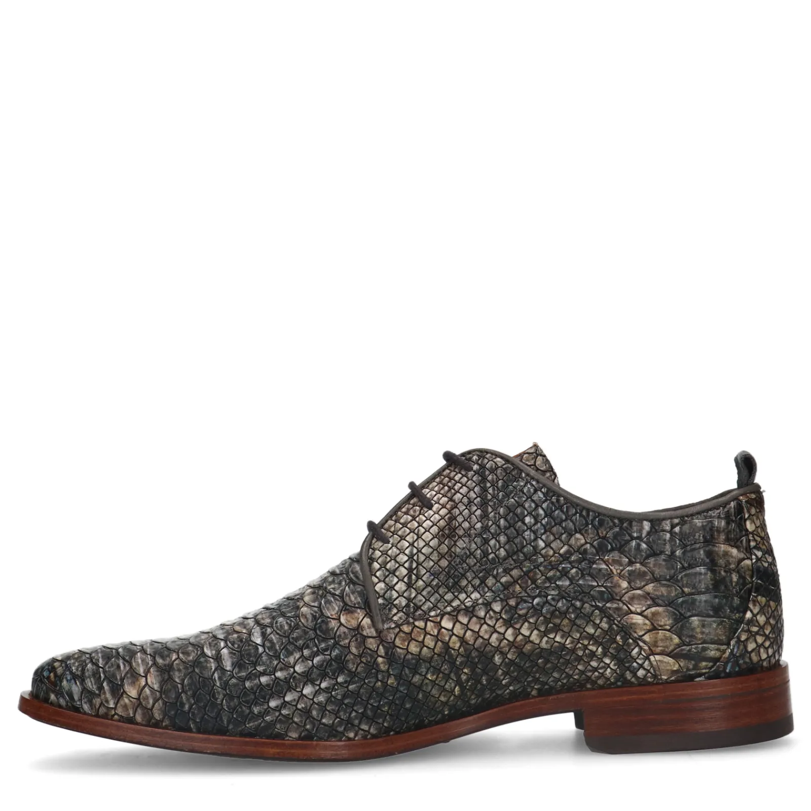 Donkergrijze Leren Veterschoenen Met Print Van Rehab. De Heren Schoenen Zijn Aan De Binnen- En Buitenkant Gemaakt Van Le…