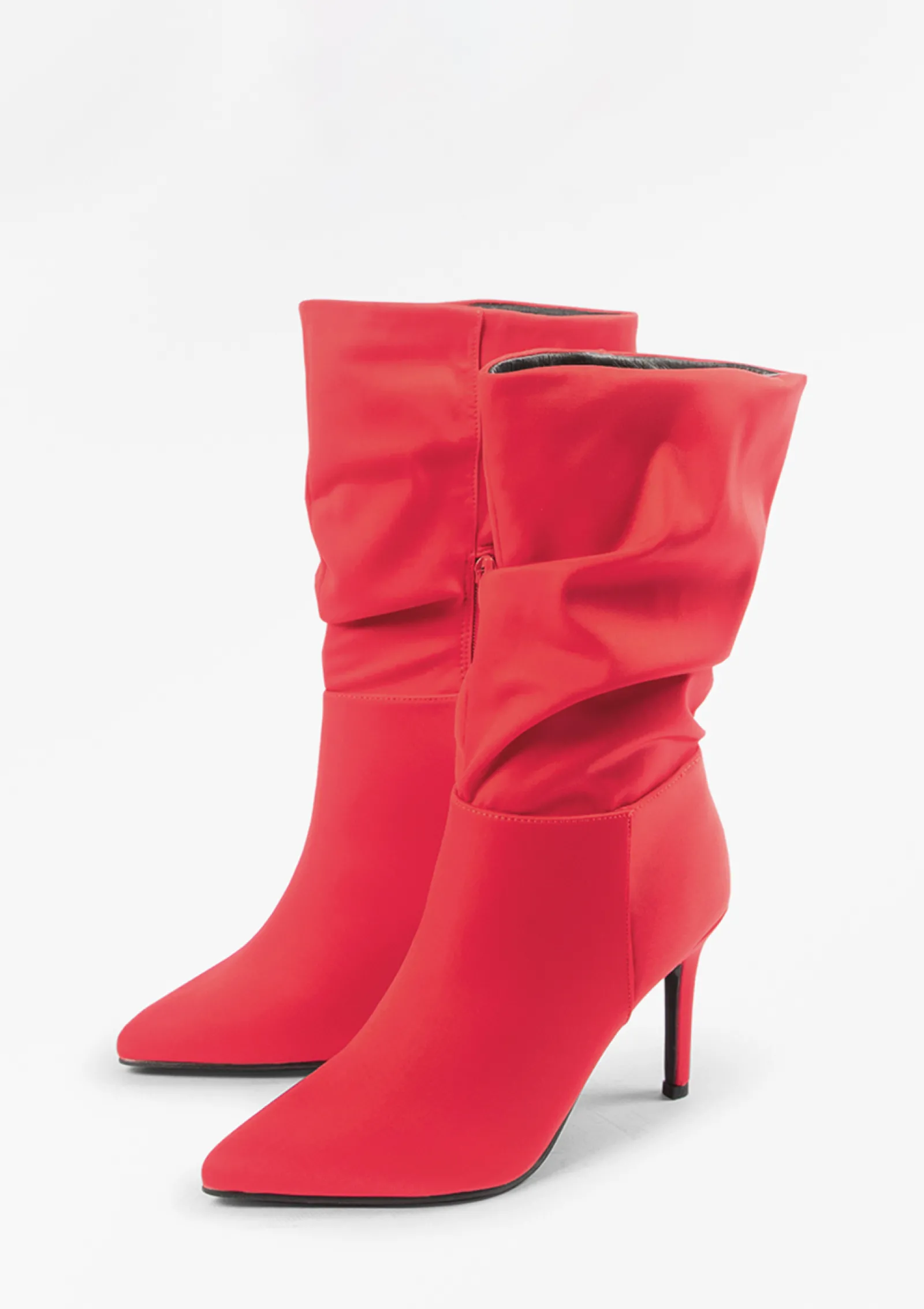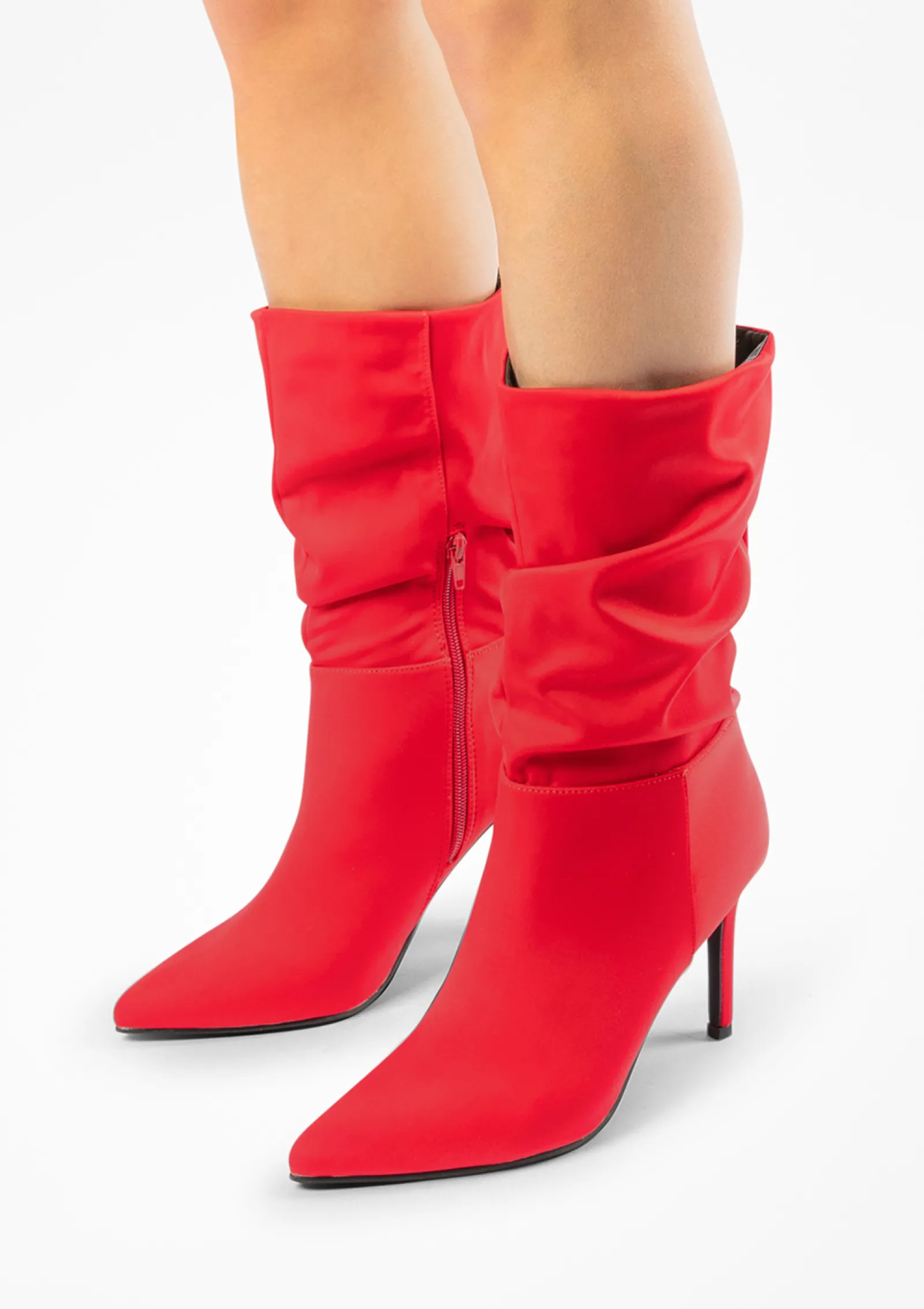De Trend Is Terug! Deze Rode Enkellaarsjes Met Satin-Finish Hebben Een Gerimpeld Afzak Effect. De Laarsjes Hebben Aan De Binnenzijde Een Korte Rits En Een Naaldhak Van 10 Cm Hoog. De Boots Hebben Een Schachthoogte Van 23 Cm En Een Schachtomtrek Van 33 Cm. Maak Gebruk Van De Juiste Onderhoudsproducten.