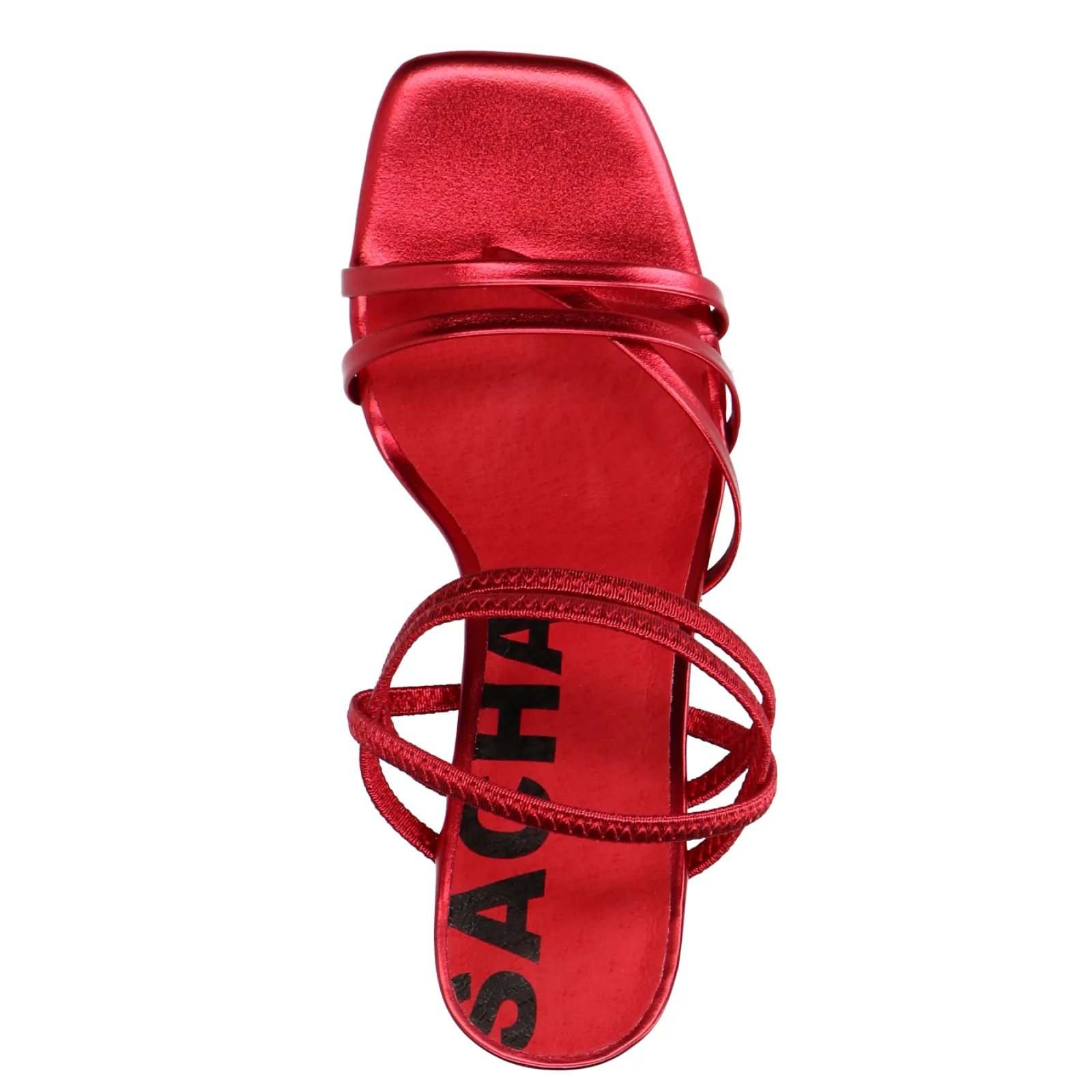 De Sacha It-Haksandaal In Een Felle Metallic Rode Uitvoering! De Bovenste Bandjes Zijn Gemaakt Van Elastiek, Waardoor Je De Sandalen Gemakkelijk Kan Aan- En Uittrekken. De Binnenzijde Is Gemaakt Van Leer. De Hak Heeft Een Hoogte Van 9 Cm En Een Afgeronde Vierkante Neus. Maak Gebruik Van De Juiste Onderhoudsproducten!