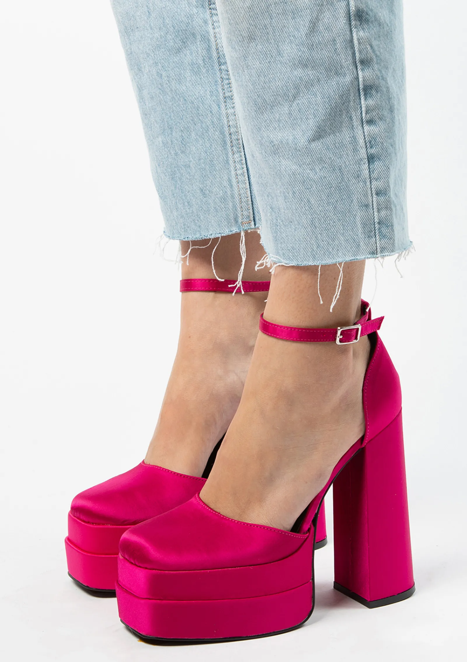 Sky-High Met Deze Roze Gesloten Pumps Met Plateauzool Van Sacha! Deze Gesloten Pumps Hebben Een Hak Met Een Hoogte Van 14 Cm. De Plateauzool Heeft Een Hoogte Van 5 Cm, Waardoor Je Gemakkelijk Op Deze Knal Hakken Kan Lopen. De Binnenzool Is Gemaakt Van Leer, De Binnenzijde Van Synthetisch Materiaal En De Buitenzijde Heeft Een Glanzende Satin-Finish Uitstraling. We Raden Je Aan Deze Gesloten Pumps Te Verzorgen En Beschermen Met De Collonil Carbon Pro.