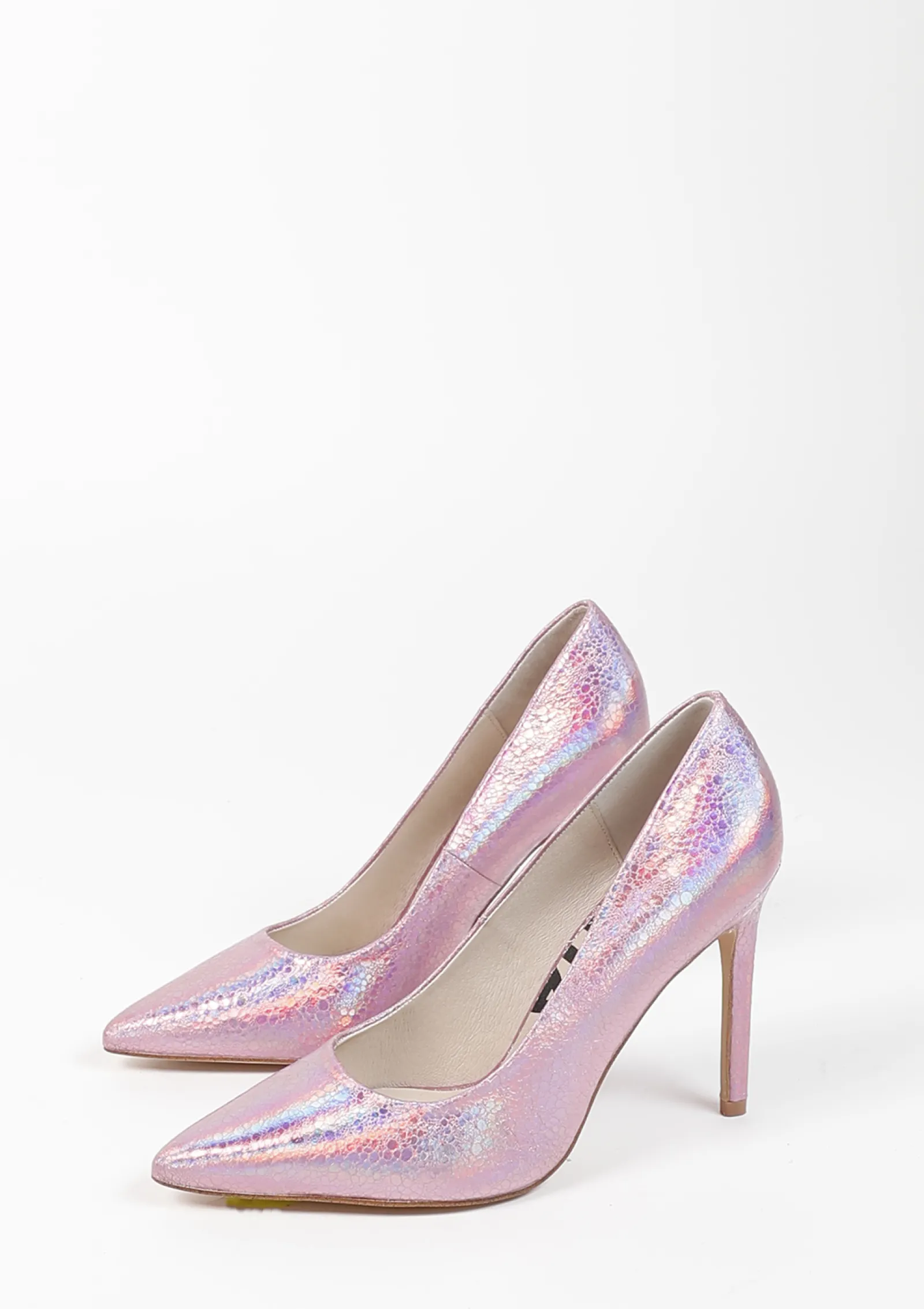 Deze Roze Pumps Van Sacha Hebben Een Glinsterend Metallic Glitter Patroon. De Glitters In Het Design Zorgen Voor Een Glinsterend Rainbow Effect. De Pumps Hebben Een Puntige Neus En Een Naaldhak Van 11 Cm Hoog. De Binnenkant Is Gemaakt Van Leer En De Buitenkant Van Synthetisch Materiaal. Maak Gebruik Van De Juiste Onderhoudsproducten!