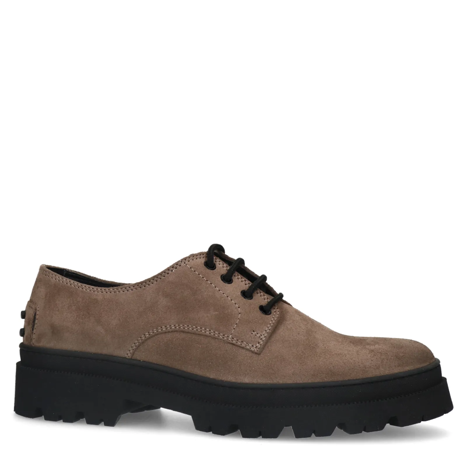Deze Taupe Veterschoenen Van Sacha Hebben Een Grove Zwarte Zool. De Herenschoenen Zijn Aan De Buitenkant Gemaakt Van Sue…