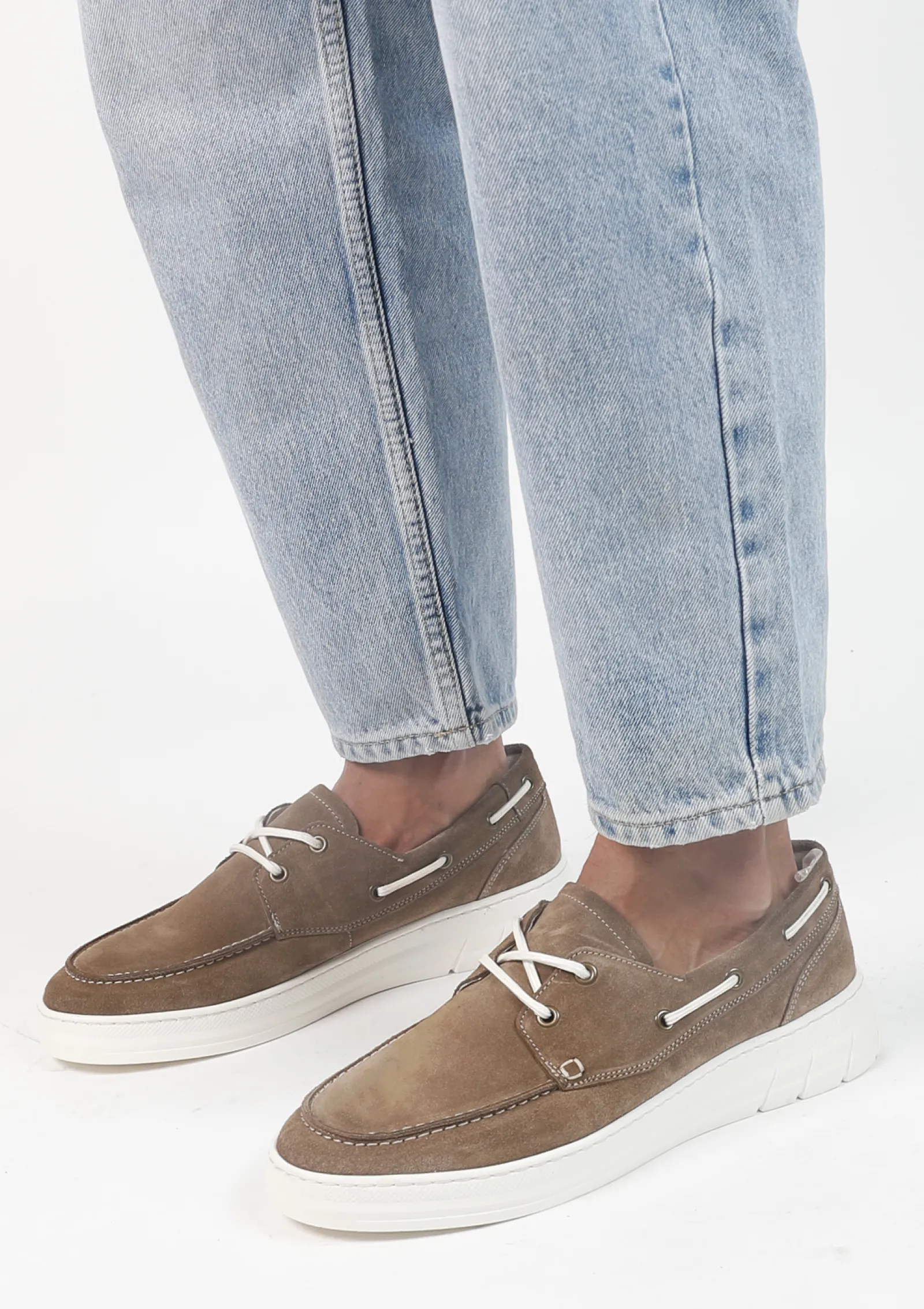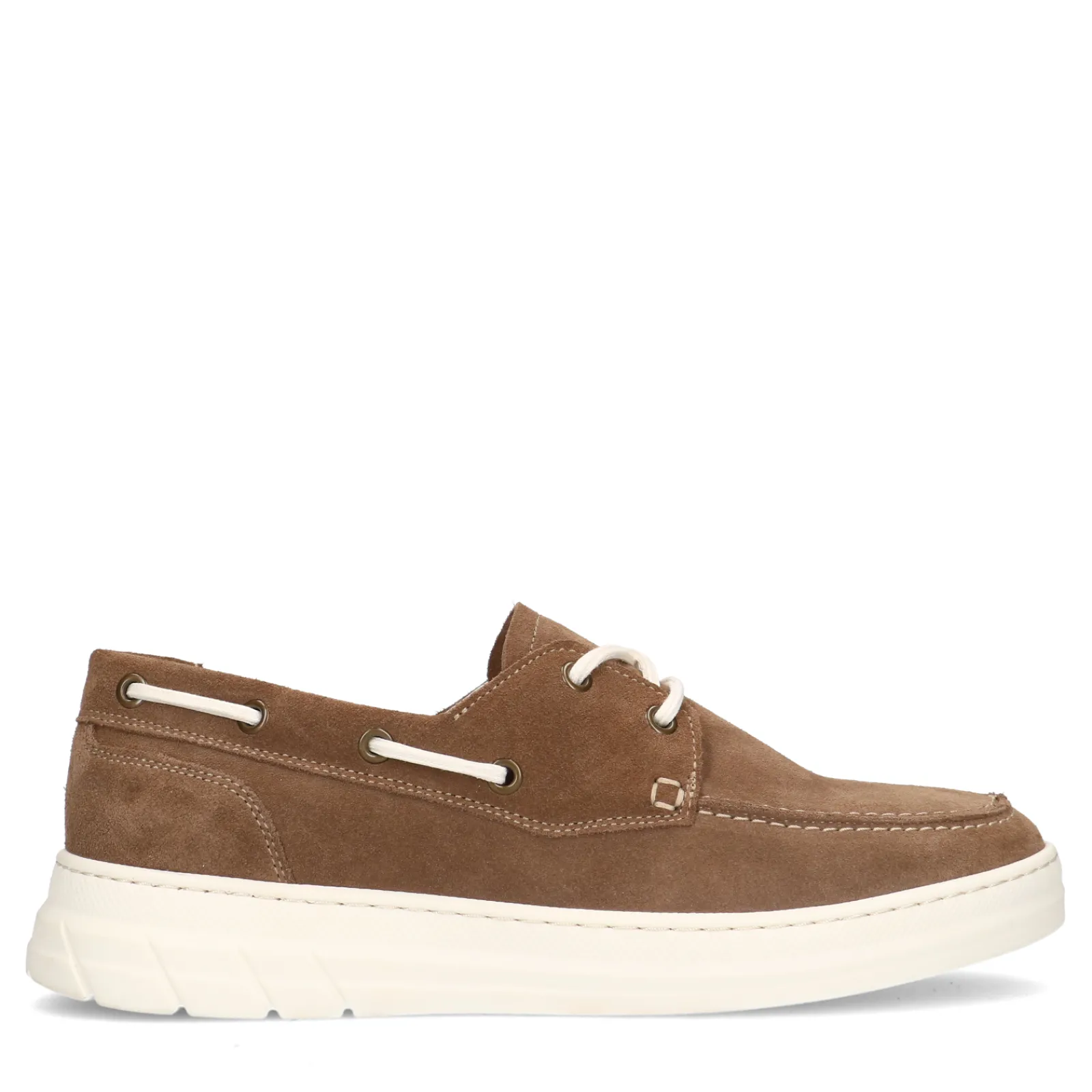 Deze Suede Bootschoenen Van Sacha Hebben Een Wit Verweven Veter En Twee Veterogen. De Taupe Veterschoenen Zijn Aan De Buitenkant Gemaakt Van Suede En Aan De Binnenkant Van Synthetisch Materiaal. De Witte Zool Is 3 Cm Dik. Maak Gebruik Van De Juiste Onderhoudsproducten.
