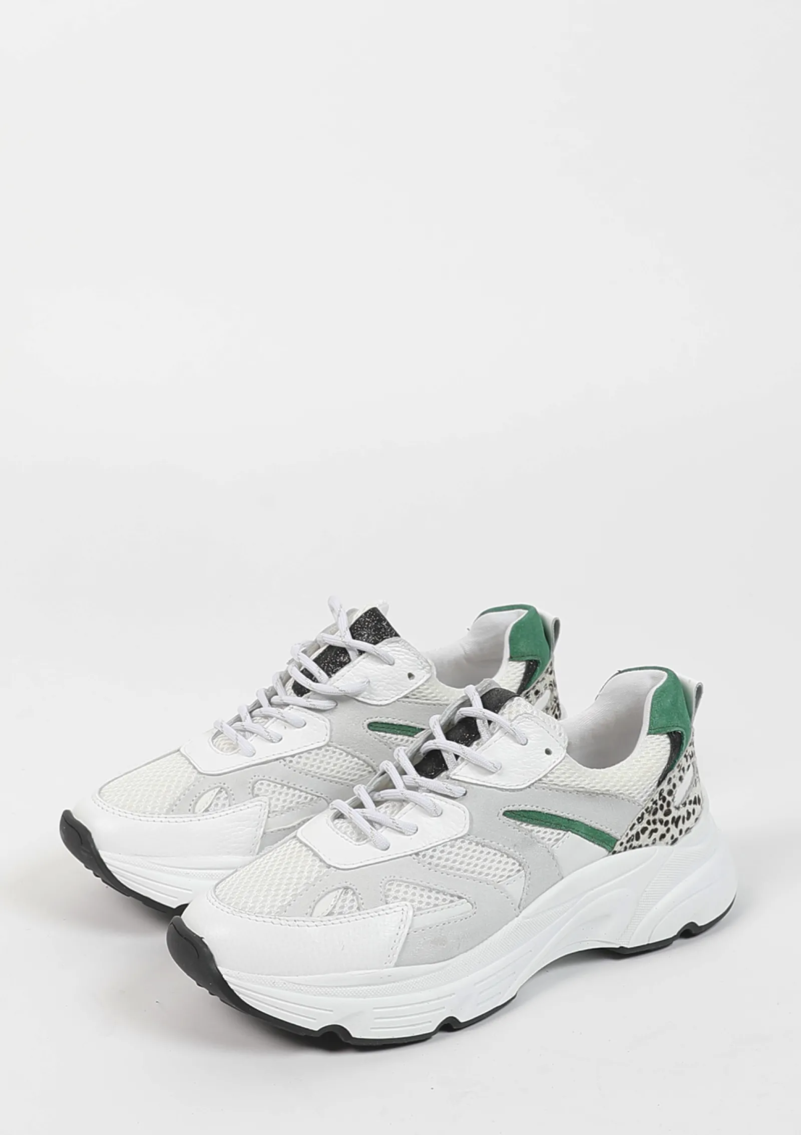 Witte Chunky Dot Sneakers Met Groene Details^Sacha Discount