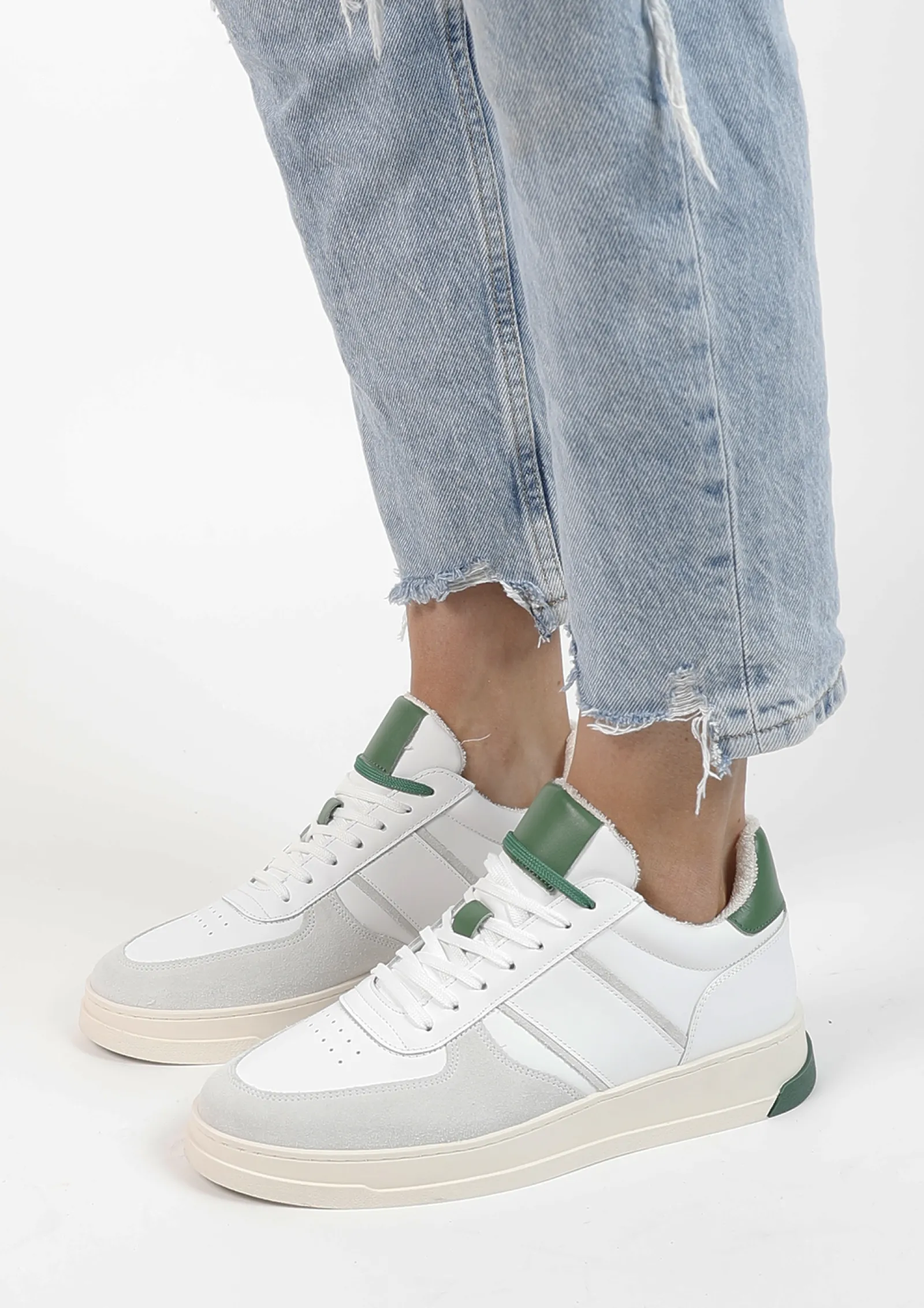 Witte Leren Sneakers Met Groene Details^Sacha Clearance