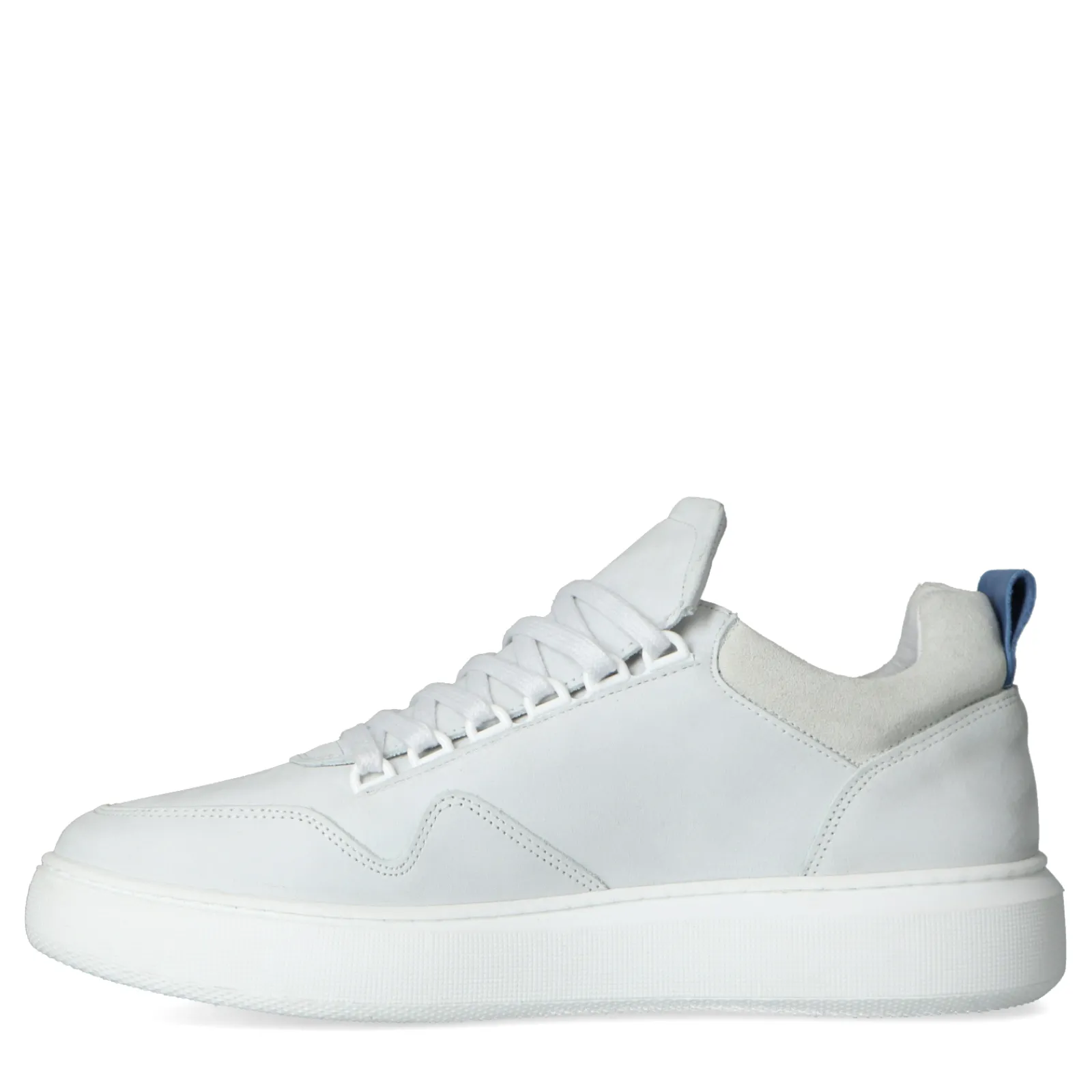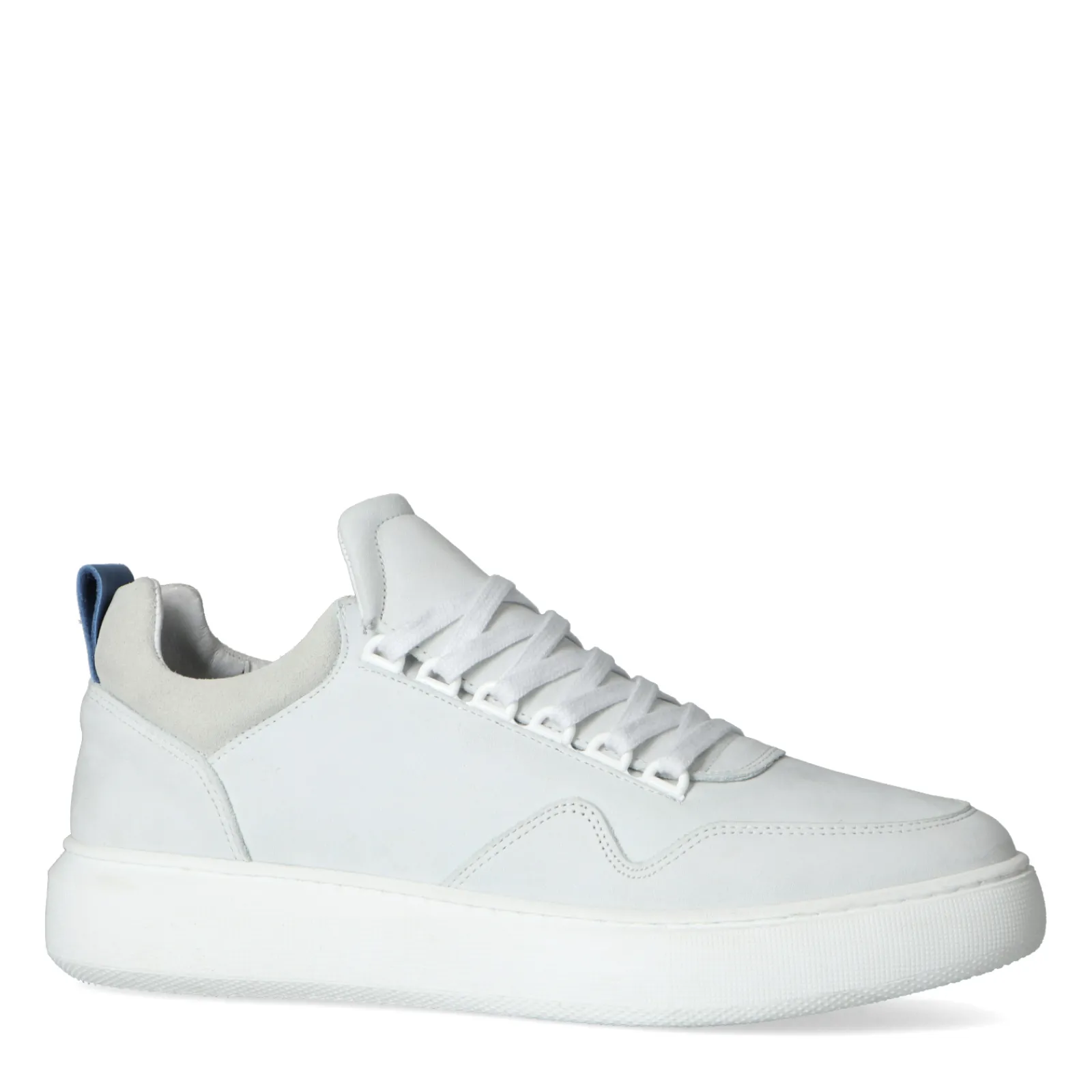 Elke Man Heeft Een Paar Basic Sneakers Nodig! Deze Witte Sneakers Uit De Est. 1909 Collectie Van Sacha Geven Een Sportieve En Casual Twist Aan Je Outfit. De Schoenen Zijn Afgewerkt Met Verschillende Details, Wat De Schoenen Een Stoer Karakter Geven. Zo Is Er Gekozen Voor Materiaal In Verschillende Structuren, Veterogen En Een Opvallende Blauwe Touch Op De Hiel. De Binnenkant Van De Schoenen Is Gemaakt Van Nubuck En De Binnenzijde Is Van Leer. De Witte Zool Heeft Een Plateauhoogte Van 3 Cm En Een Hakhoogte Van 4 Cm. Draag De Sneakers Onder Een Jeans Of Pantalon Met Een Blauwe Sweater Voor Een Stijlvolle Look! Maak Gebruik Van De Juiste Onderhoudsproducten Om De Sneakers Zo Lang Mogelijk Mooi Te Houden, Bijvoorbeeld De Pure Protect 300 Ml.