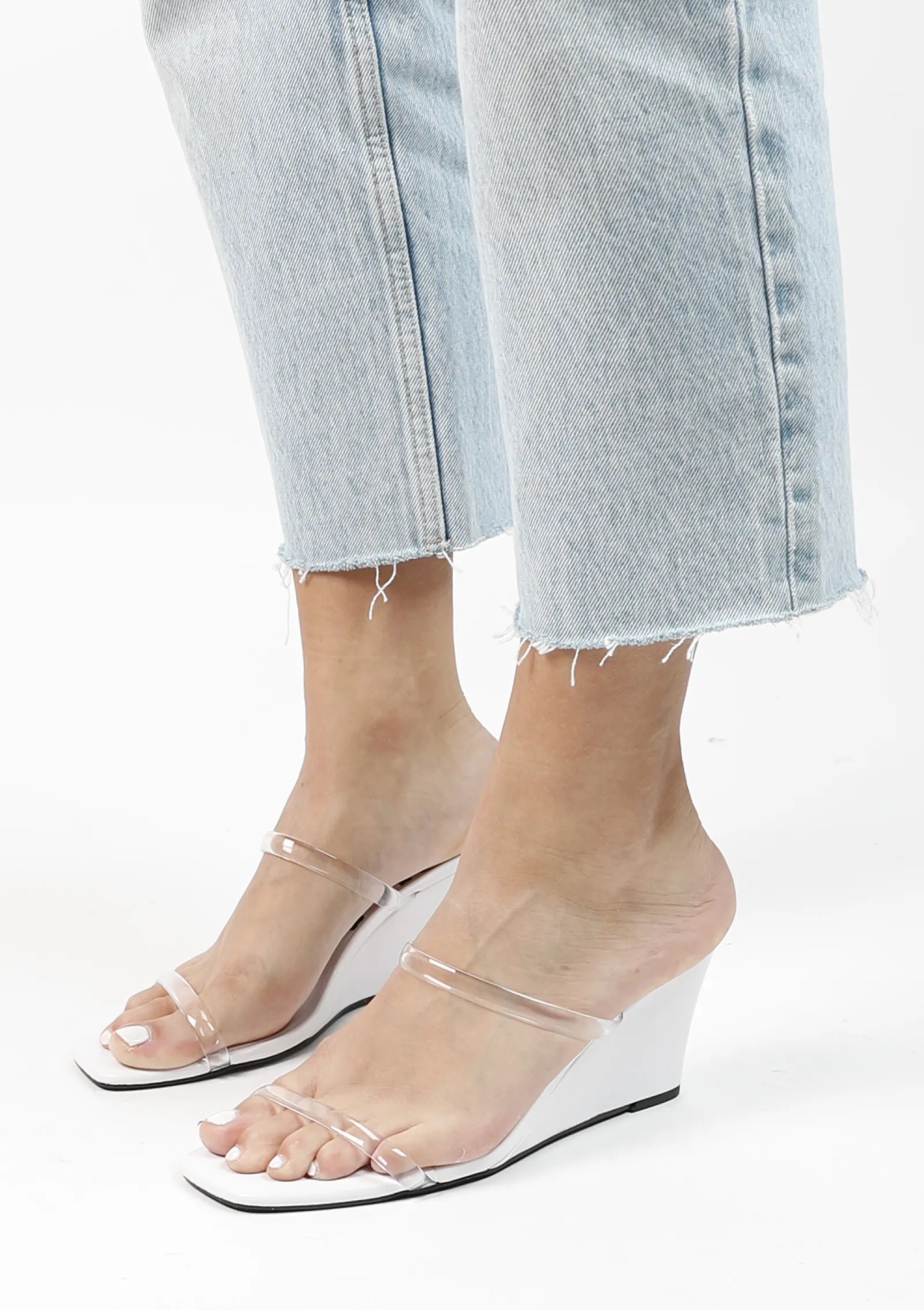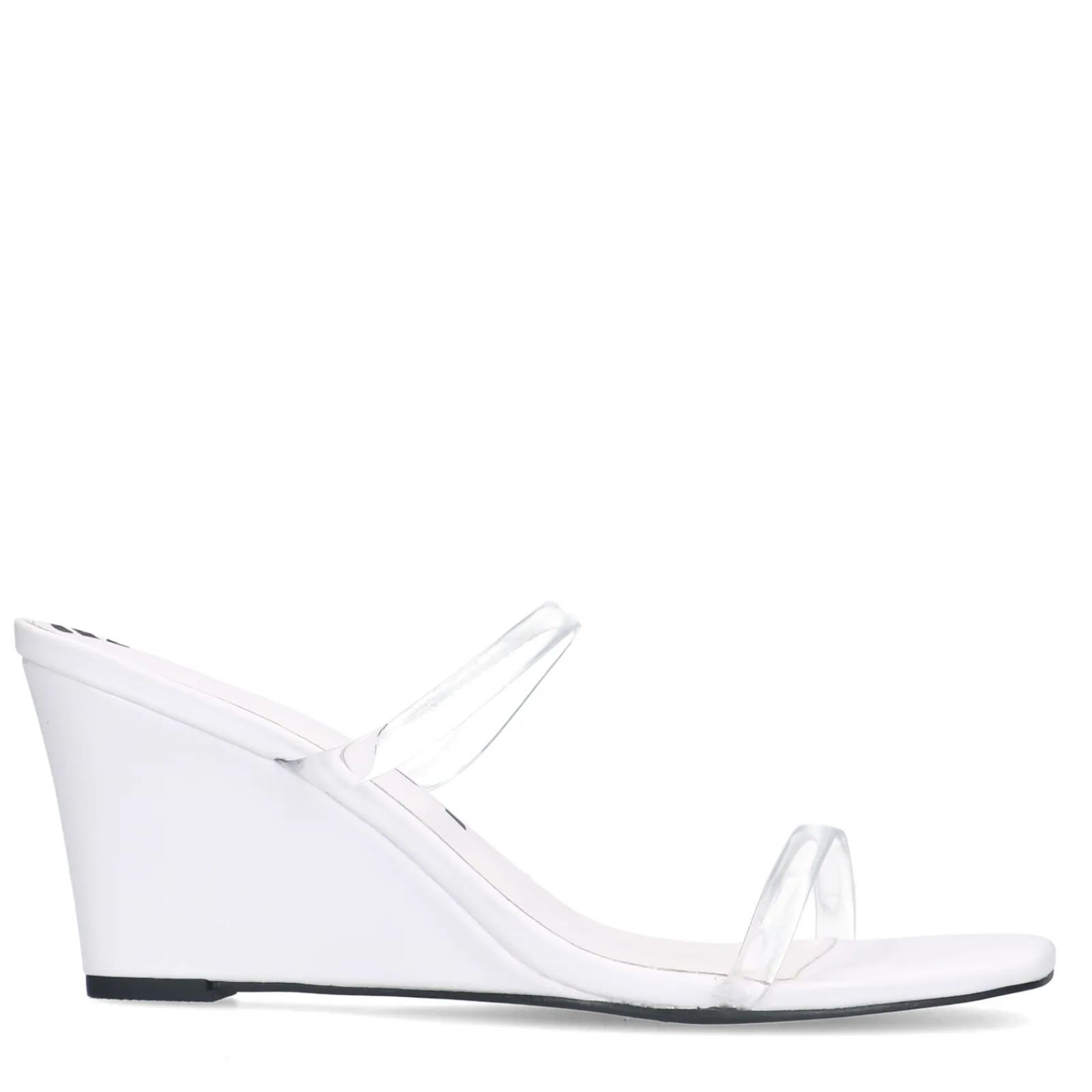 Deze Witte Wedge Sandalen Van Sacha Zijn Echte Eyecatchers! De Sandalen Zijn Gemaakt Van Synthetisch Materiaal En Hebben Een Sleehak Van 8 Cm Hoog. Over De Voet Lopen Twee Doorzichtige Bandjes Van 1 Cm Dik. Maak Gebruik Van De Juiste Onderhoudsproducten.