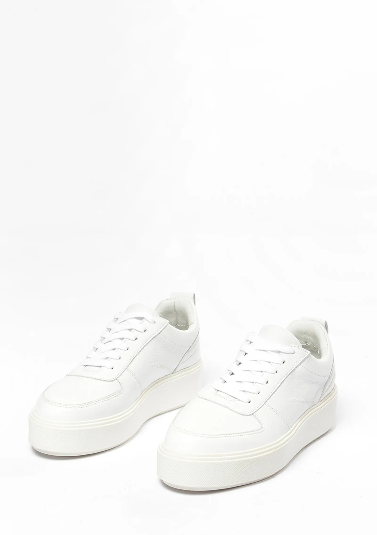 Deze Witte Sneakers Passen Bij Iedere Outfit! De Plateauzool En Leren Details Op De Hak Geven De Schoenen Een Stoere Uitstraling. De Sneakers Zijn Aan De Binnen- En Buitenkant Gemaakt Van Leer, Wat Zorgt Voor Een Optimaal Loopcomfort. De Plateauzool Van De Schoenen Is Circa 4 Centimeter Hoog. Deze Schoenen Combineer Je Zo Met Elke Outfit, Bijvoorbeeld Met Een Mom Jeans En Fijne Sweater Voor Een Comfy Uitstraling.