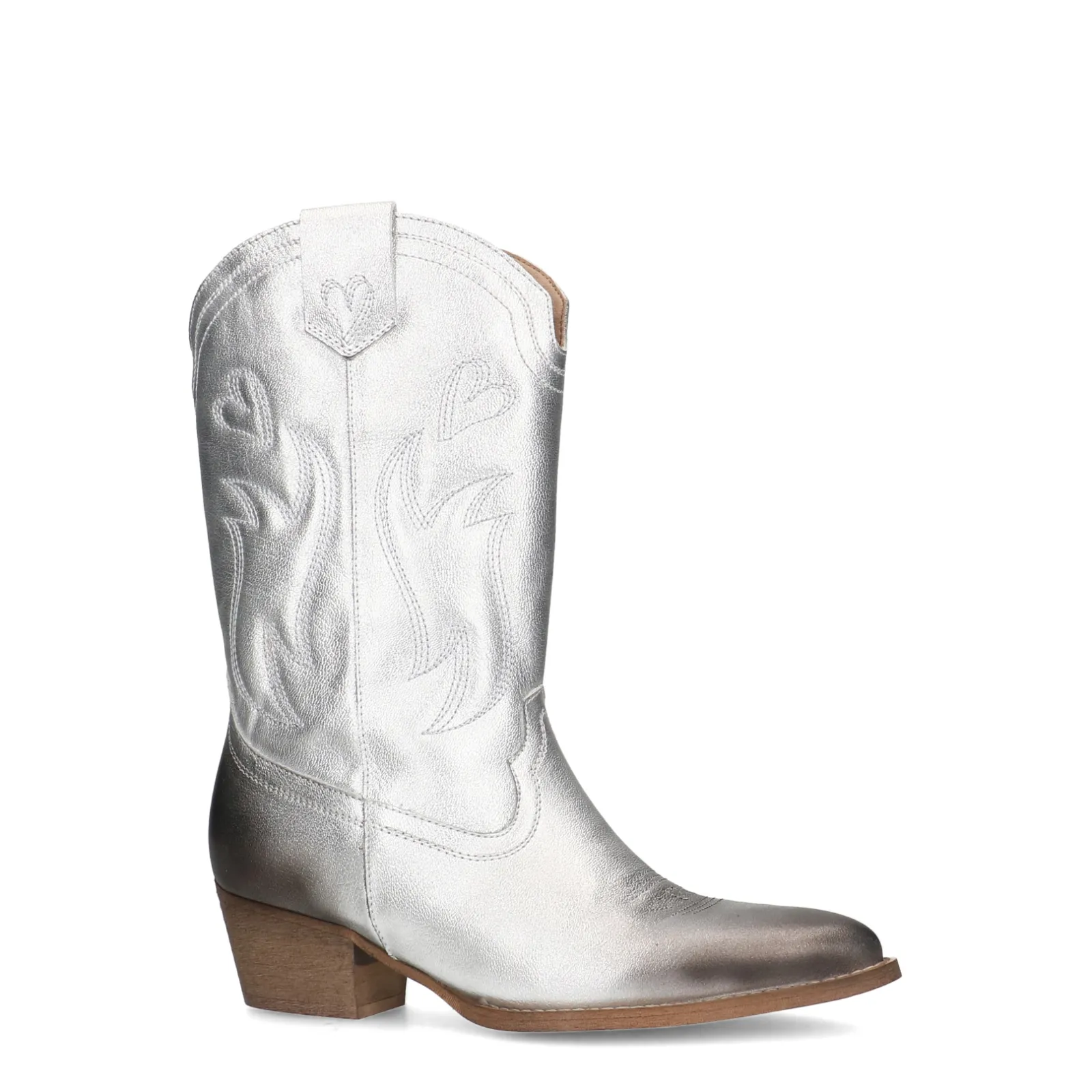 Deze Zilverkleurige Cowboy Laarzen Van Sacha Hebben Een Hak Van 4 Cm En Een Plateau Van 1 Cm. De Schachthoogte Meet 20 Cm En De Schachtomtrek Is 34 Cm. Deze Boots Zijn Aan De Buitenzijde Van Leer Gemaakt. Maak Gebruik Van Onderhoudsproducten Zoals Pure Protect Om De Laarzen Zo Goed Mogelijk Te Beschermen.