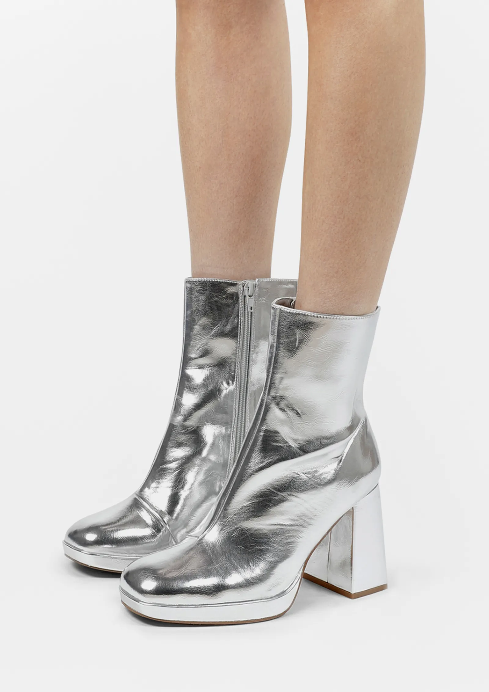 Zilveren Metallic Enkellaarsjes Met Hak^Sacha Store