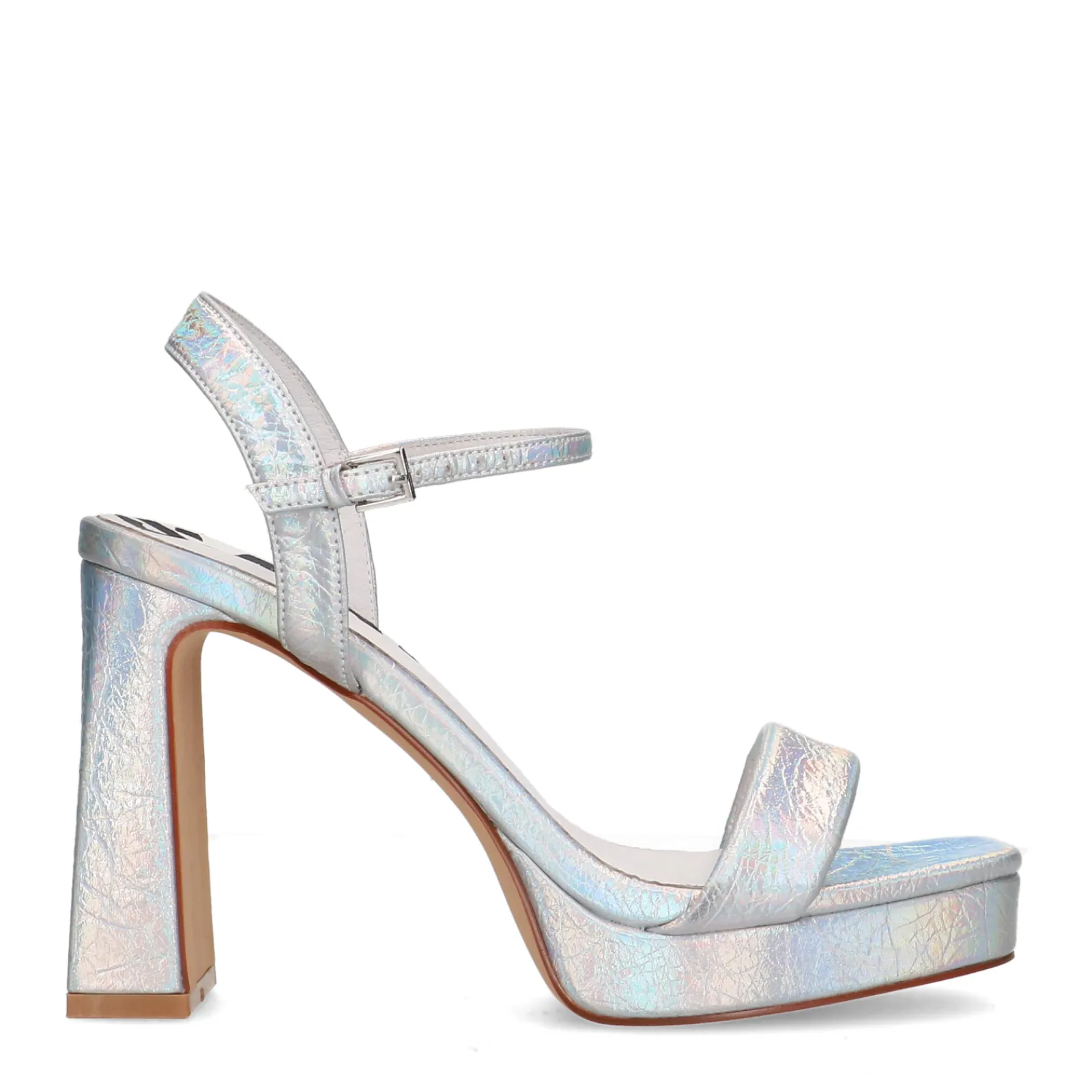 Deze Zilverkleurige Sandalen Van Sacha Zijn Echte Eyecatchers! De Sandalen Hebben Een Metallic Finish Waardoor Ze Extra Shinen. De Hak Heeft Een Hoogte Van 10 Cm Met Een Plateau Zool Van 2 Cm. De Sandalen Hebben Een Smal Bandje En Sluiten Middels Een Enkelbandje Met Zilverkleurige Gesp. De Binnen- En Buitenzijde Zijn Gemaakt Van Synthetisch Materiaal. Maak Gebruik Van De Juiste Onderhoudsproducten!