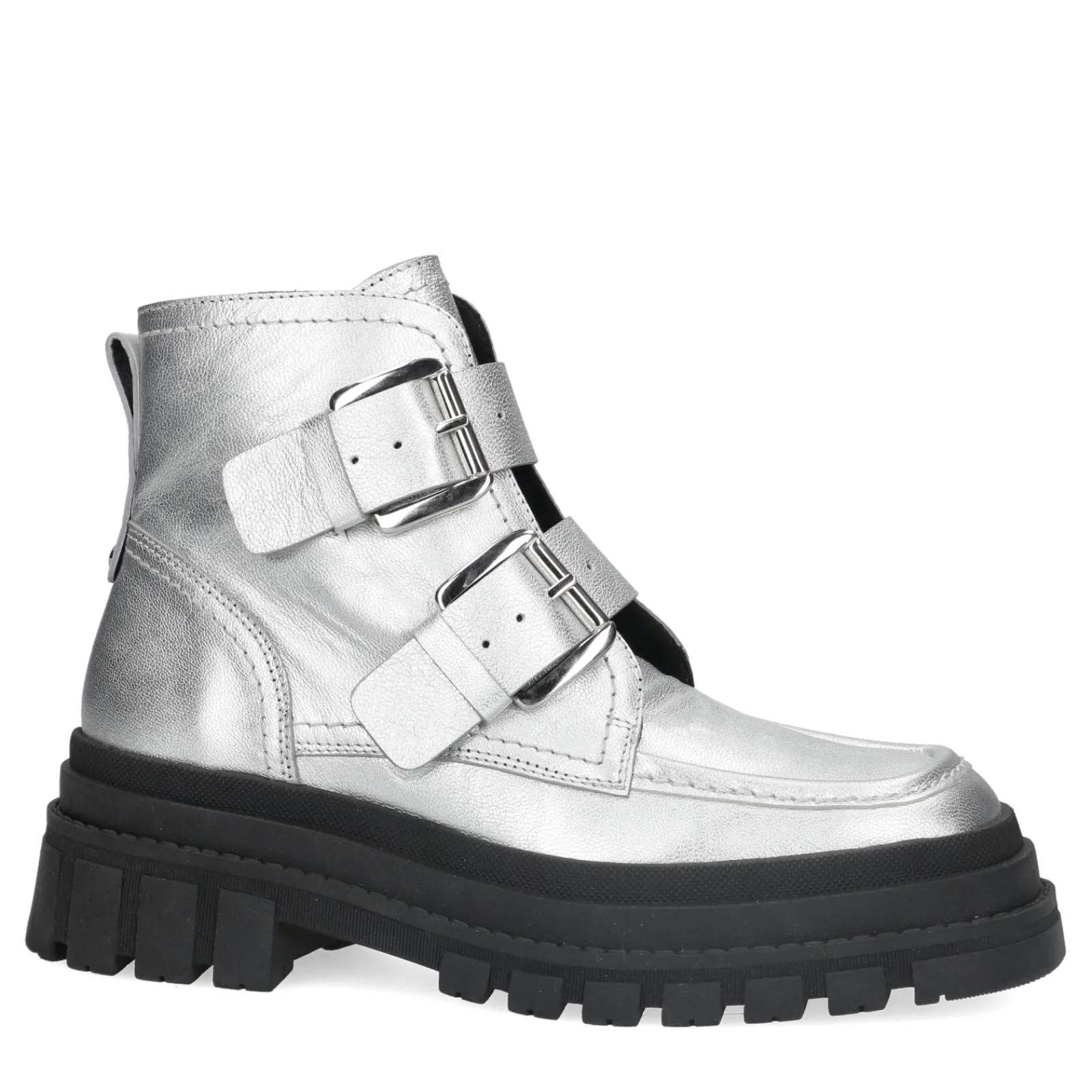 A Statement Piece! Deze Zilverkleurige Biker Boots Van Sacha Hebben Twee Gespen Als Detail. De Boots Hebben Een Hakhoogte Van 6 Cm En Een Zooldikte Van 4 Cm. De Schachthoogte Van De Enkellaarsjes Is 11 Cm En De Schachtomtrek Is 26 Cm. De Buitenkant Van De Enkellaarsjes Is Van Leer, Maak Dus Gebruik Van De Onderhoudsproducten Zoals Anti Aging Voor Langdurig Plezier Van De Boots.