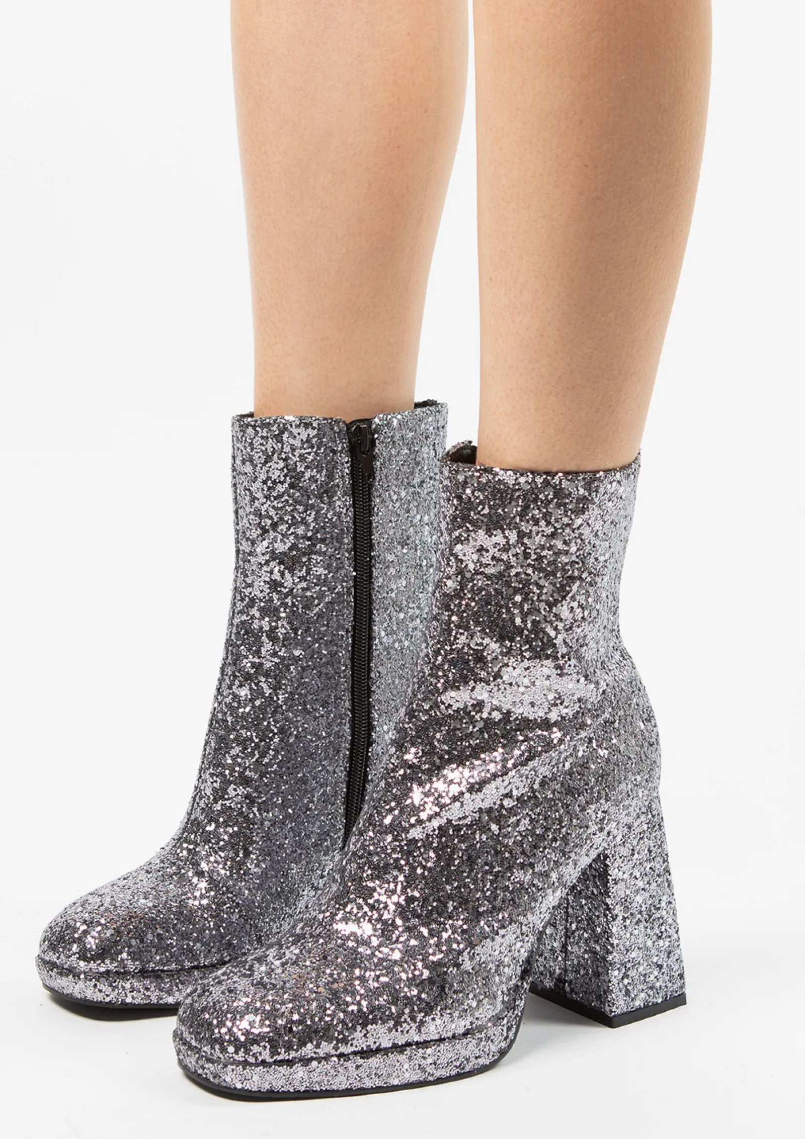 Party-Season Ready Met Deze Glitter Enkelboots Van Sacha! De Zilverkleurige Sequins Krijgen Een Edgy Karakter Door Stoere Eigenschappen In De Laars. De Laarsjes Hebben Een Afgeronde Carre Neus, Een Plateau Van 2 Cm Dik En Een Chunky Blokhak Van 10 Cm Hoog. Hierbij Hebben De Boots Een Schachthoogte Van 15 Cm En Een Schachtomtrek Van 27 Cm. Maak Gebruik Van De Juiste Onderhoudsproducten.