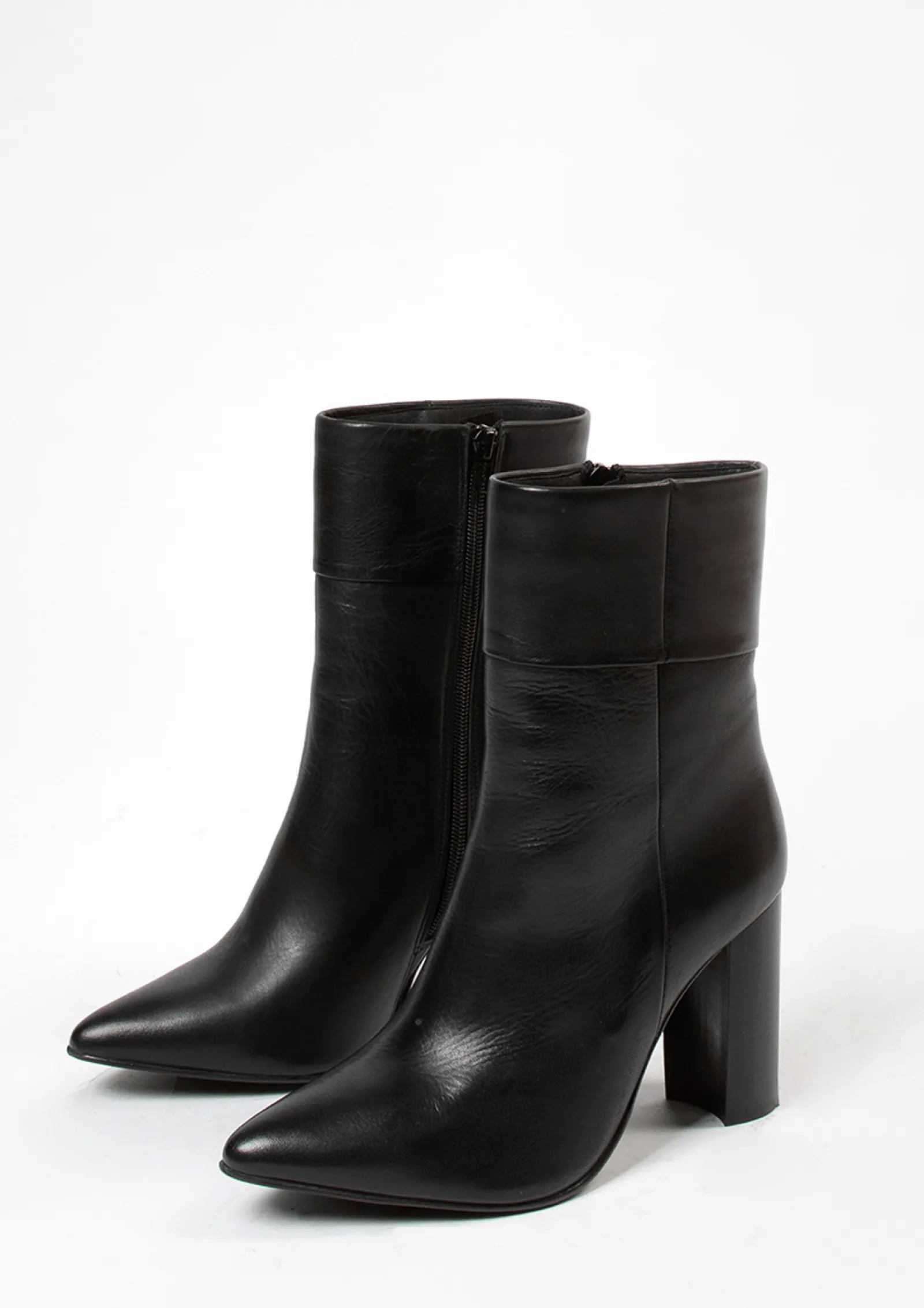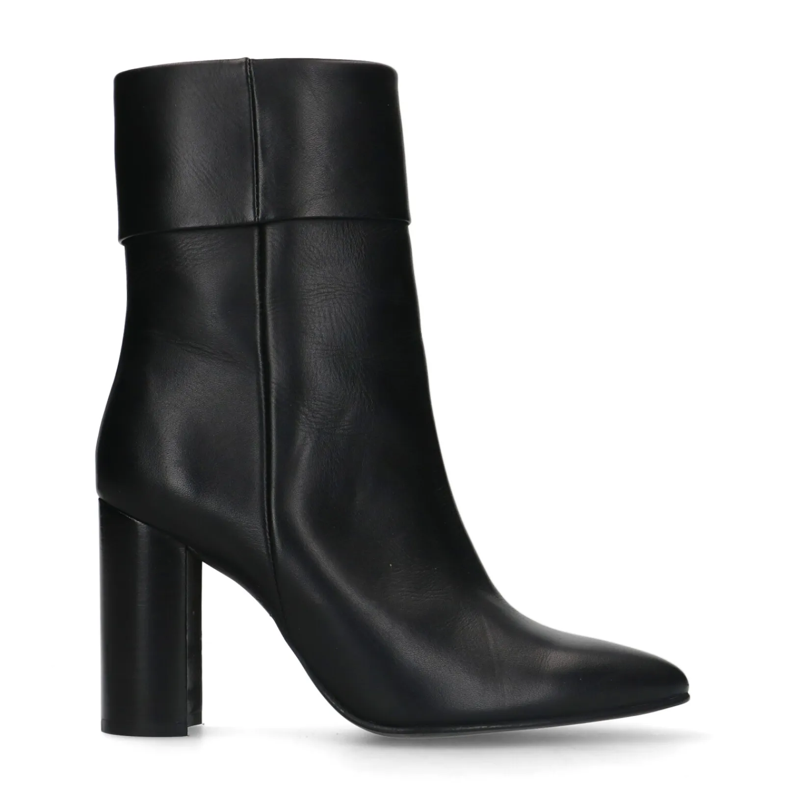 Zwarte Enkellaarsjes Uit De Women Essentials Collectie Van Sacha. De Puntneus, Het Gestikte Detail Aan De Bovenzijde En Blokhak Van 9 Cm Hoog Geven De Laarsjes Een Elegante Uitsraling. Zowel De Buiten- Als Binnenkant Zijn Gemaakt Van Leer. Draag De Laarsjes Onder Een Mom Jeans Met Een Mooie Top Of Een Leuk Jurkje. Maak Gebruik Van De Juiste Onderhoudsproducten Zoals De Colloni Carbon Pro Spray.