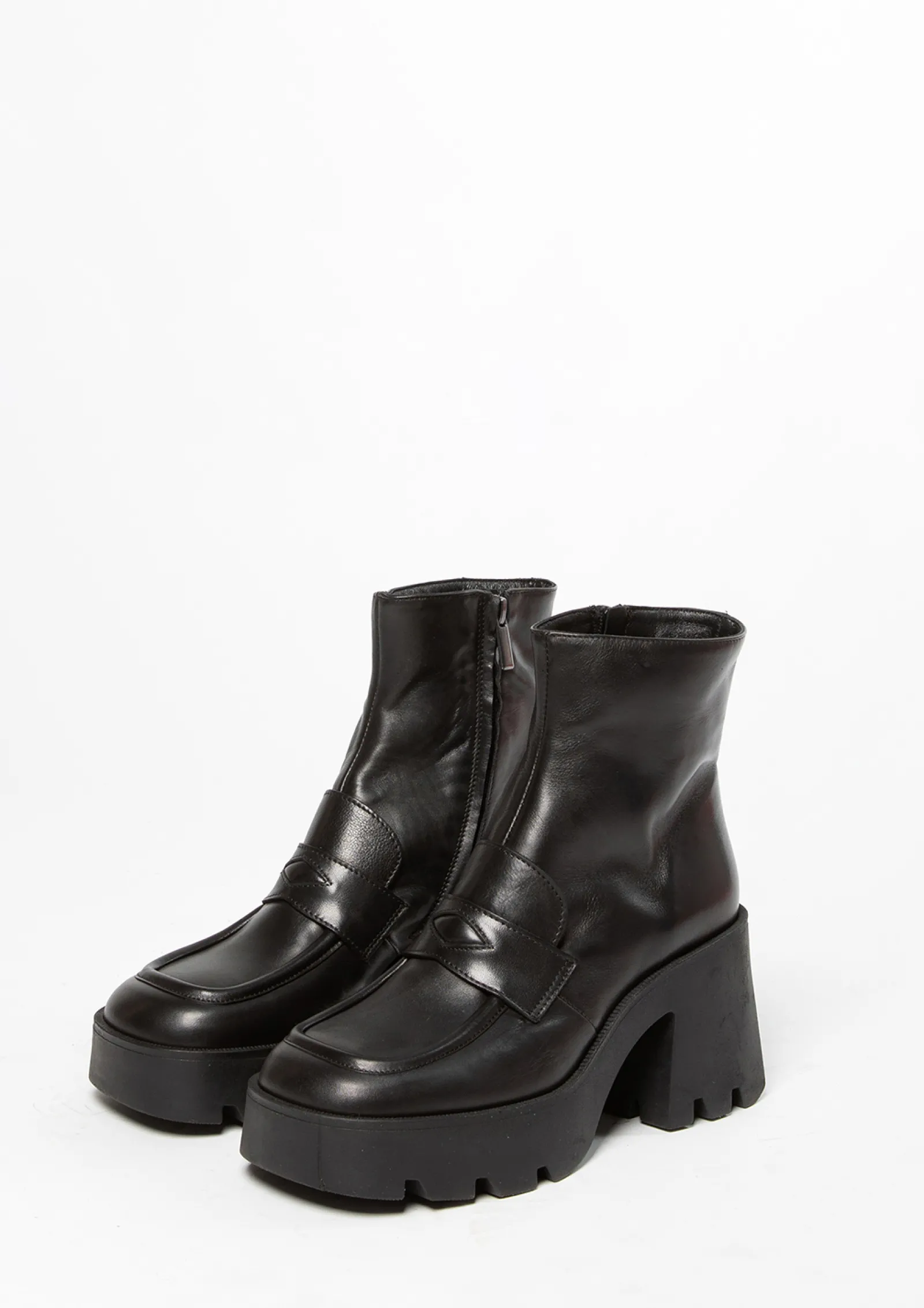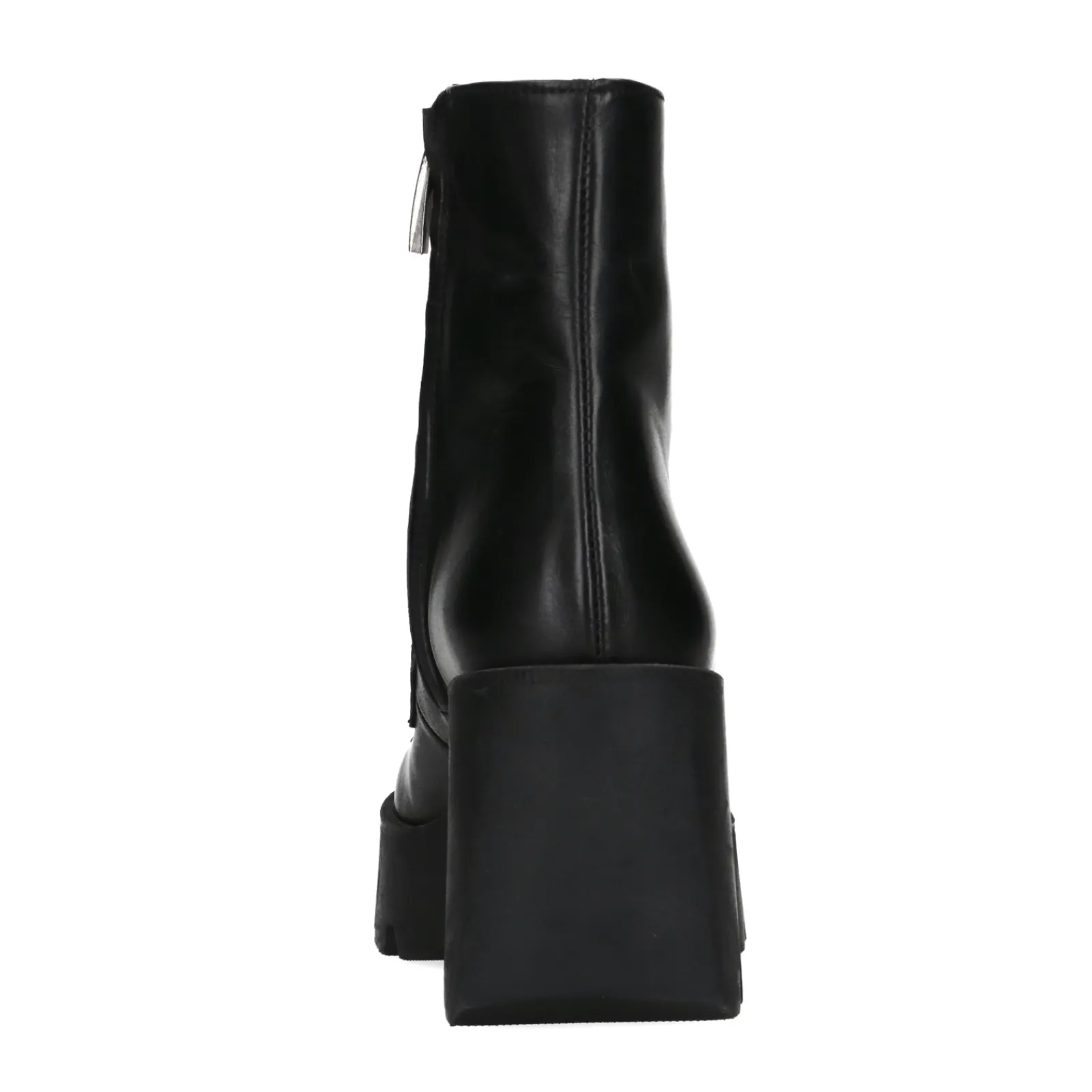 Zwarte Leren Chunky Enkellaarsjes Van Sacha. De Binnen- En Buitenkant Zijn Volledig Gemaakt Van Leer. Aan De Binnenzijde…