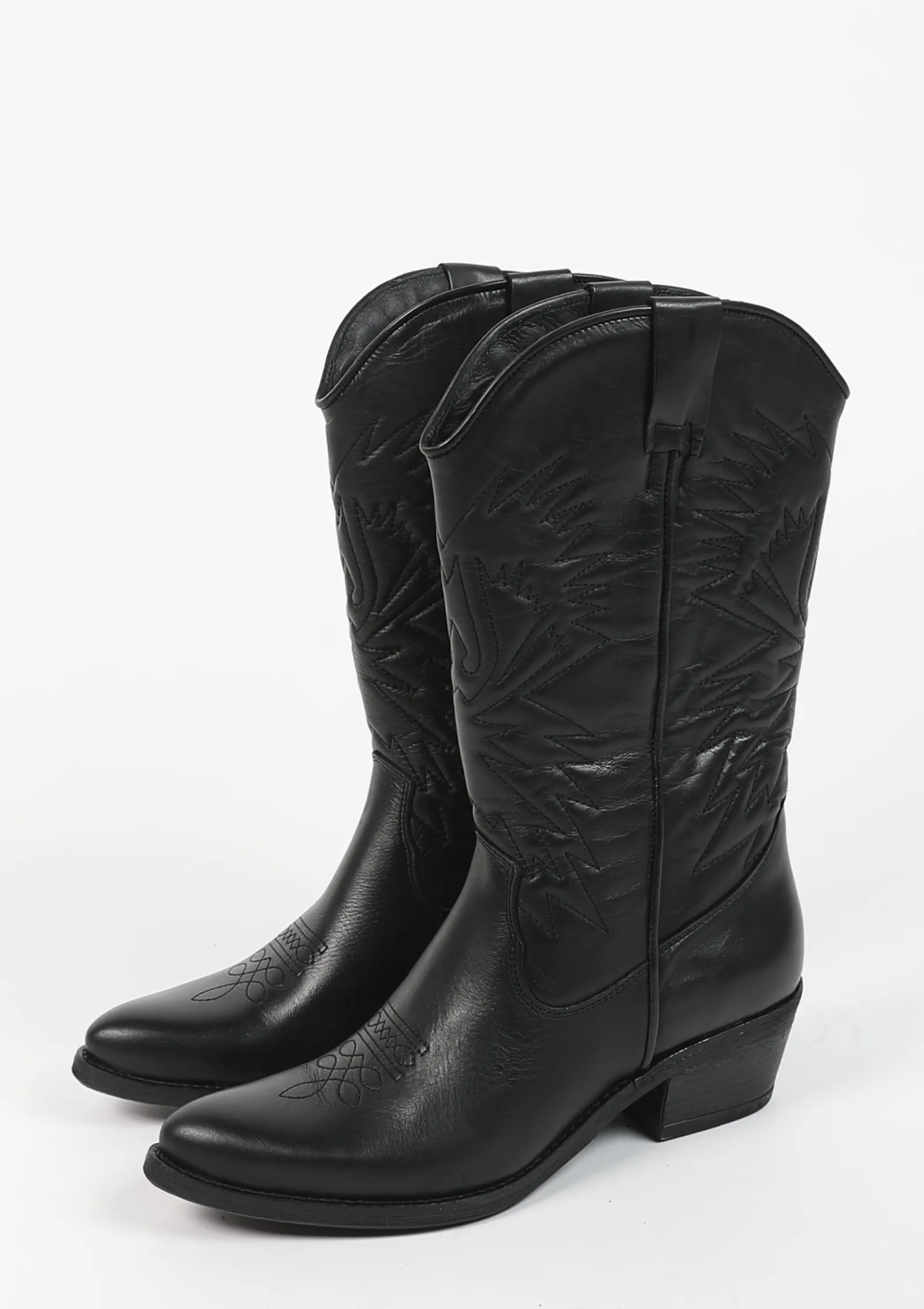 Hold Your Horses! Deze Zwarte Cowboylaarzen Uit De Women Essentials Collectie Van Sacha Zijn Dit Seizoen Helemaal Hot En Happening. De Laars Heeft Een Puntneus En Een Stevige Blokhak Van 5,5 Cm. De Schachthoogte Is 27 Cm En De -Omtrek Is 35 Cm, Gemeten Bij Maat 37. Door De Sierstiksels Krijgen De Cowboylaarzen Een Tof Western Effect. De Laarzen Zijn Van Binnen En Buiten Van Leer Gemaakt. Verzorg Deze Stappers Daarom Goed Met De Juiste Onderhoudsproducten Om Er Extra Lang Plezier Van Te Hebben. Voor Een Vrouwelijke Look Draag Je De Boots Met Een Jurkje. Combineer Ze Met Jeans Als Je Voor Een Stoere Look Wil Gaan.