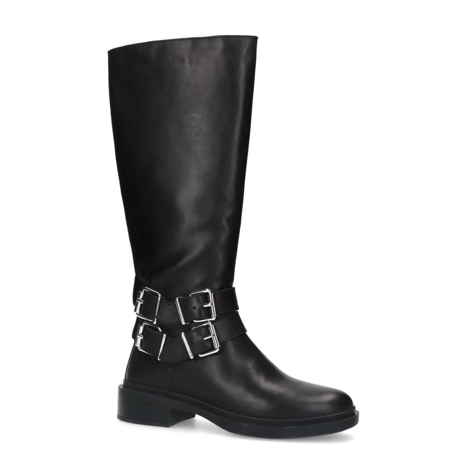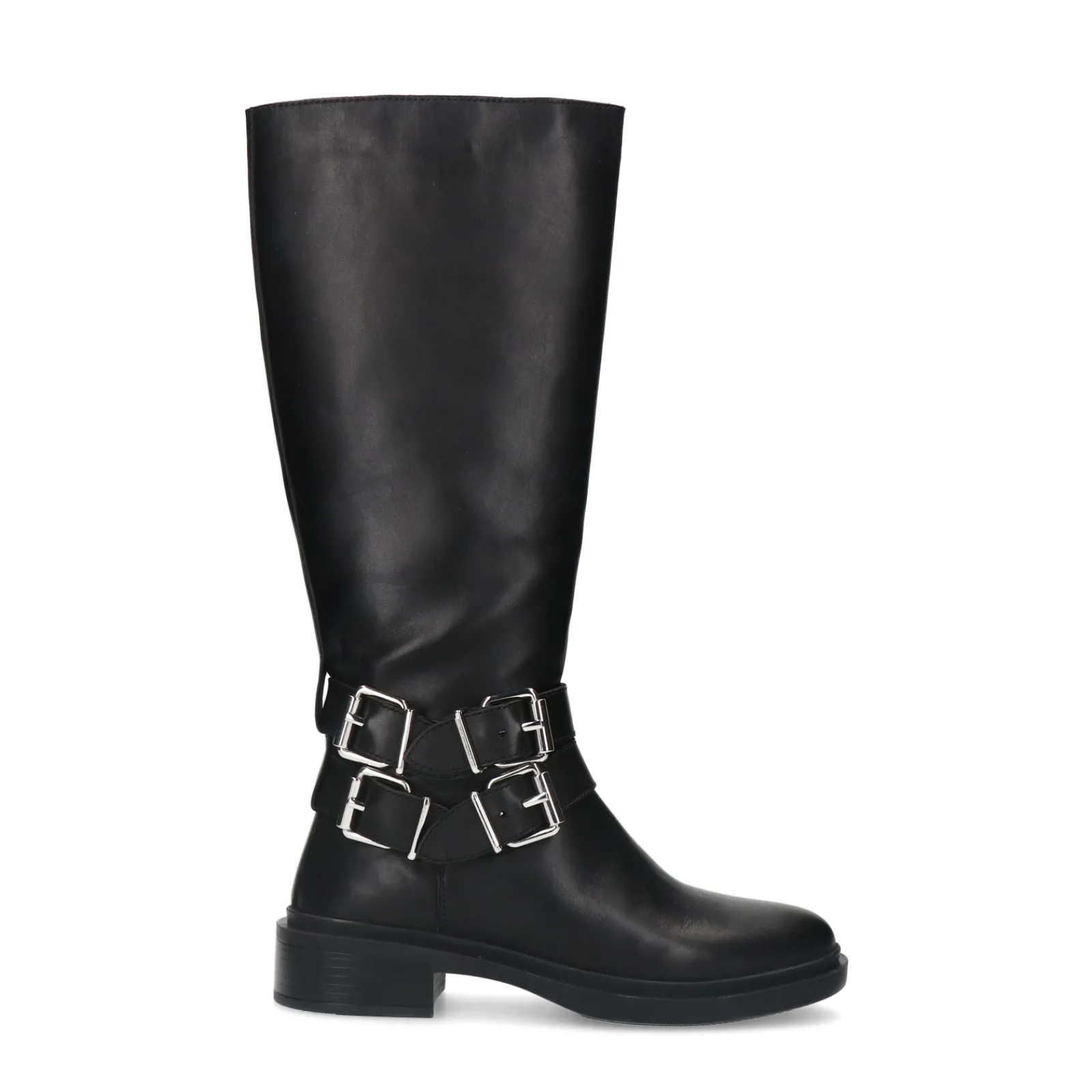 Double Trouble! Deze Zwarte Hoge Biker Boots Van Sacha Hebben Twee Buckle Gespen Met Zilverkleurige Hardware. Door De Subtiele Lage Hak En Ronde Neus Krijgen De Biker Boots Een Elegante Look. De Hoge Laarzen Zijn Aan De Buitenzijde Gemaakt Van Leer En Aan De Binnenzijde Van Textiel. De Stoere Boots Hebben Een Hoge Schacht Van 37 Cm En Een Schachtomtrek Van 39 Cm. Maak Gebruik Van De Juiste Onderhoudsproducten.