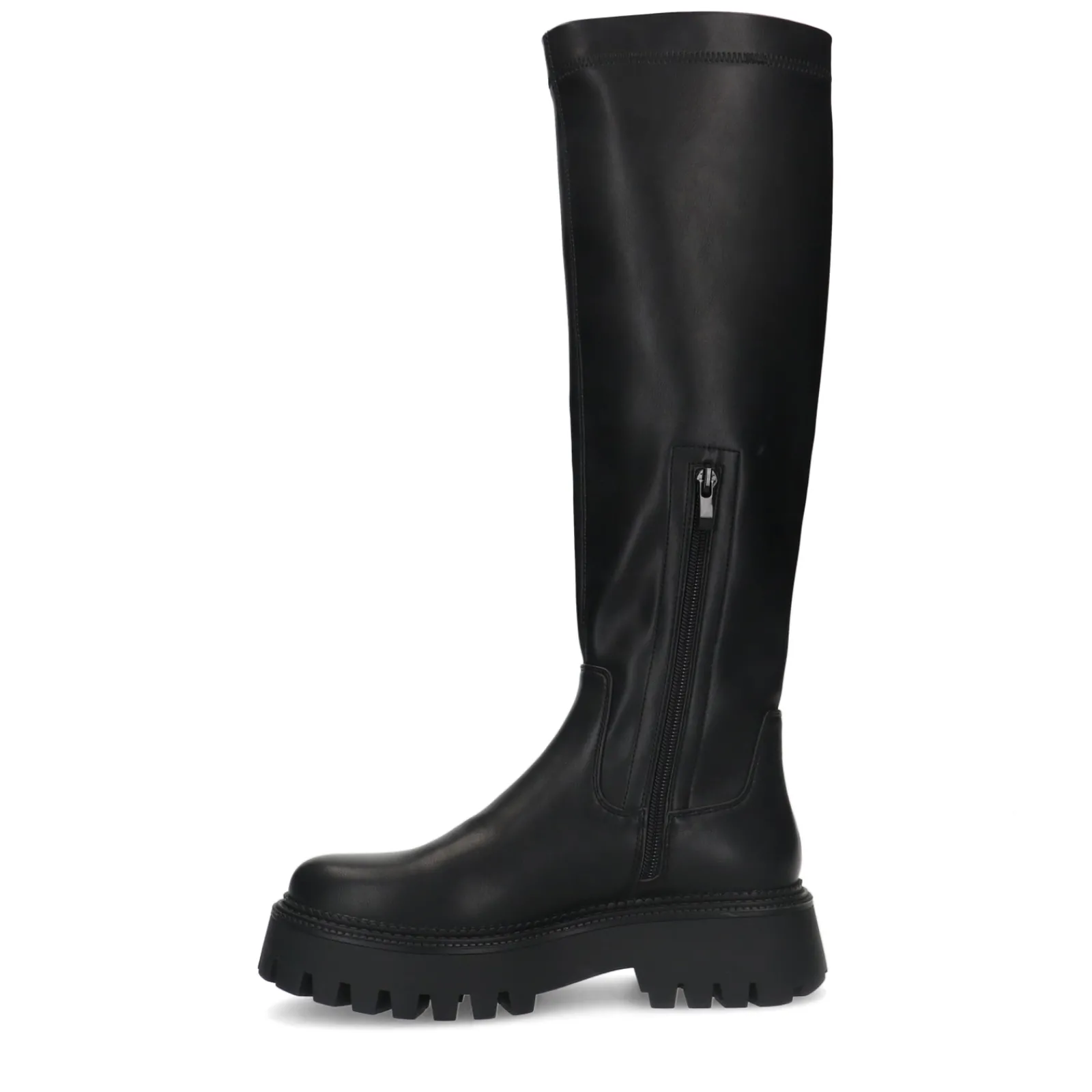 Deze Laarzen Van Sacha Zijn Een Echte Must Voor Jouw Collectie! De Zwarte Hoge Chunky Boots Hebben Een Flexibele Schacht En Sluiten Middels Een Rits Aan De Binnenzijde. De Hak Heeft Een Hoogte Van 4 Cm En De Grove Zool Is Ongeveer 3,5 Cm Hoog. De Schachthoogte Meet 43 Cm En De Schachtomtrek Is 37 Cm. De Laarzen Zijn Aan De Buitenkant Gemaakt Van Synthetisch Materiaal. Maak Gebruik Van Onderhoudsproducten Om Deze Laarzen Zo Goed Mogelijk Te Beschermen.