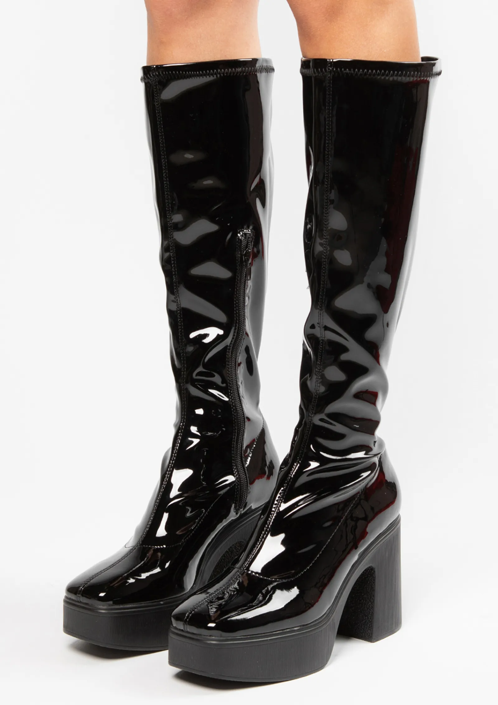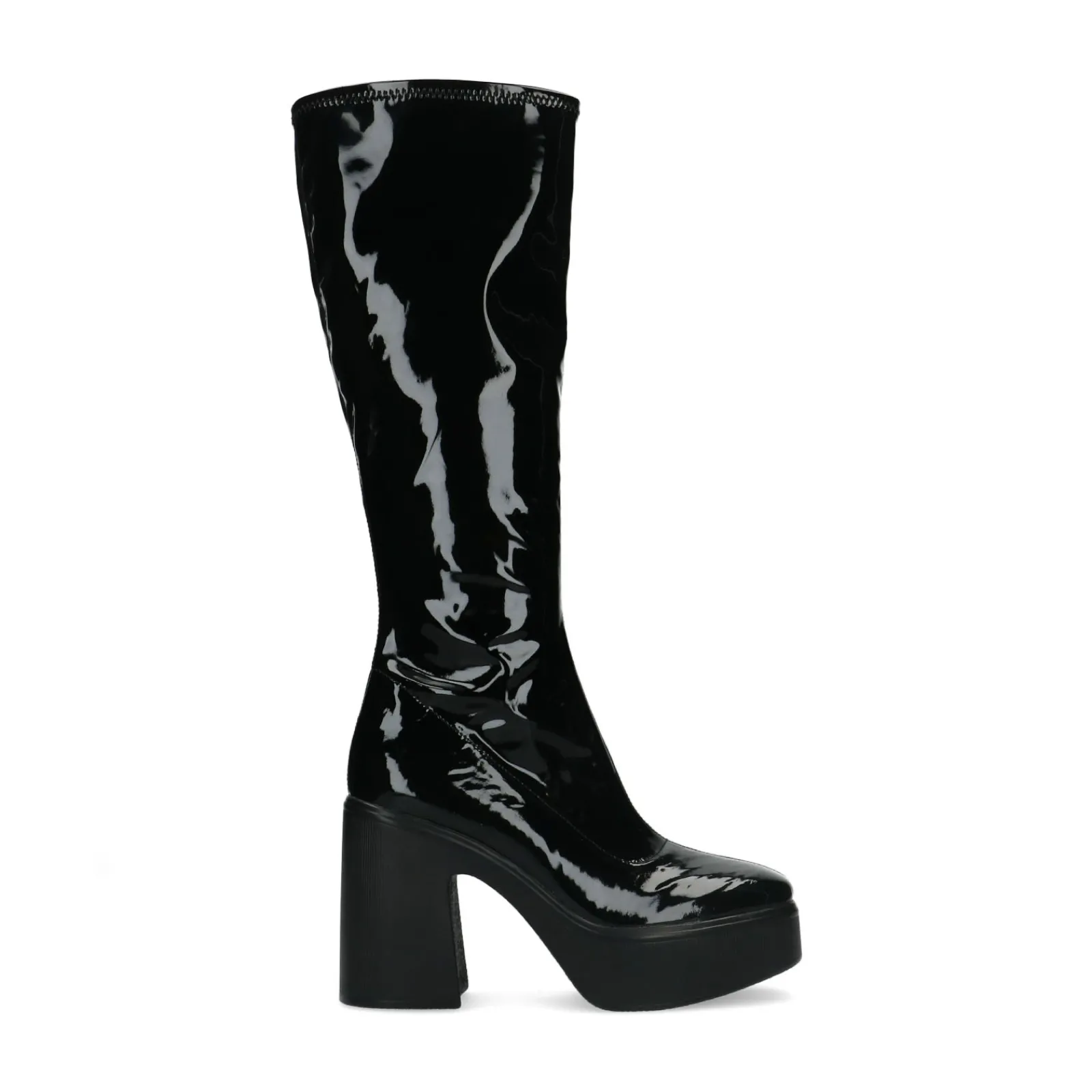 Met Deze Zwarte Hoge Lak Laarzen Van Sacha Steel Jij Absoluut De Show! De Laarzen Hebben Een Plateauzool En Blokhak Die Je Helemaal Terrugbrengen Naar ’70S. De Zool Heeft Een Hoogte Van 4 Cm En De Hak Een Hoogte Van 11 Cm. De Schachthoogte Is 38 Cm En De Schachtomtrek 36 Cm. De Laarzen Hebben Een Korte Rits Aan De Binnenkant. Maak Gebruik Van Onderhoudsproducten Zoals Collonil Carbon Pro Of Balanced Care!