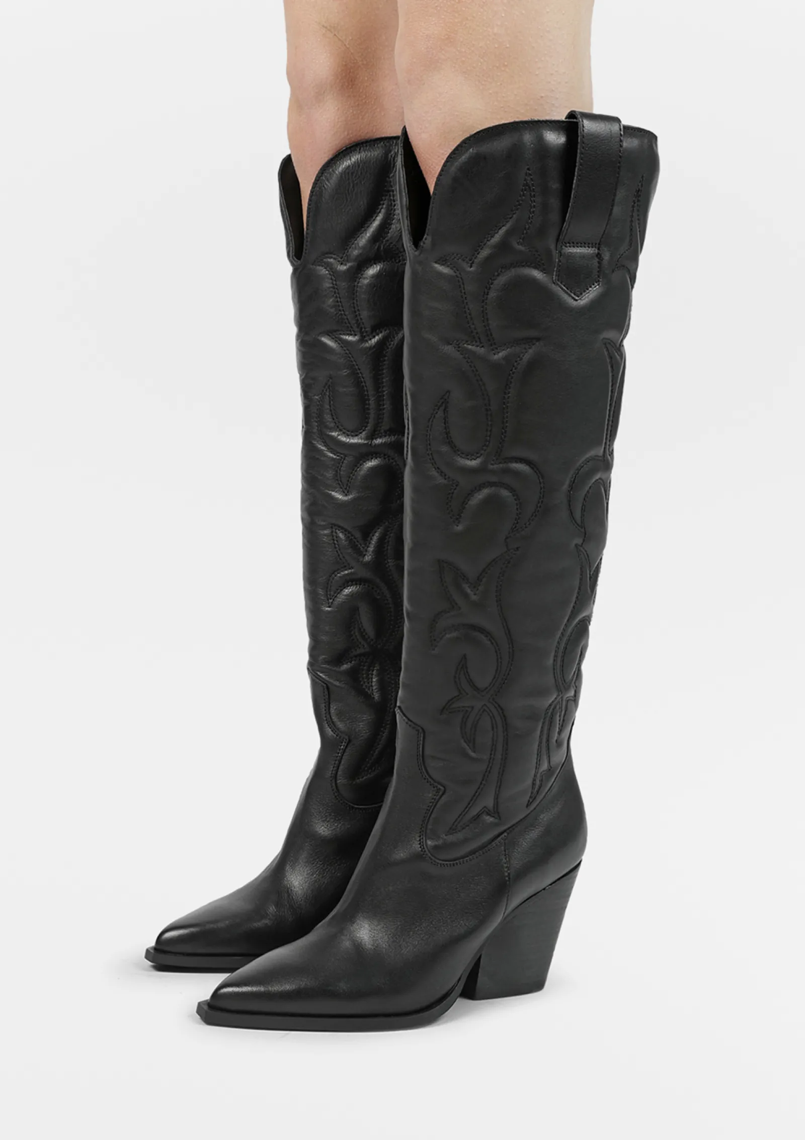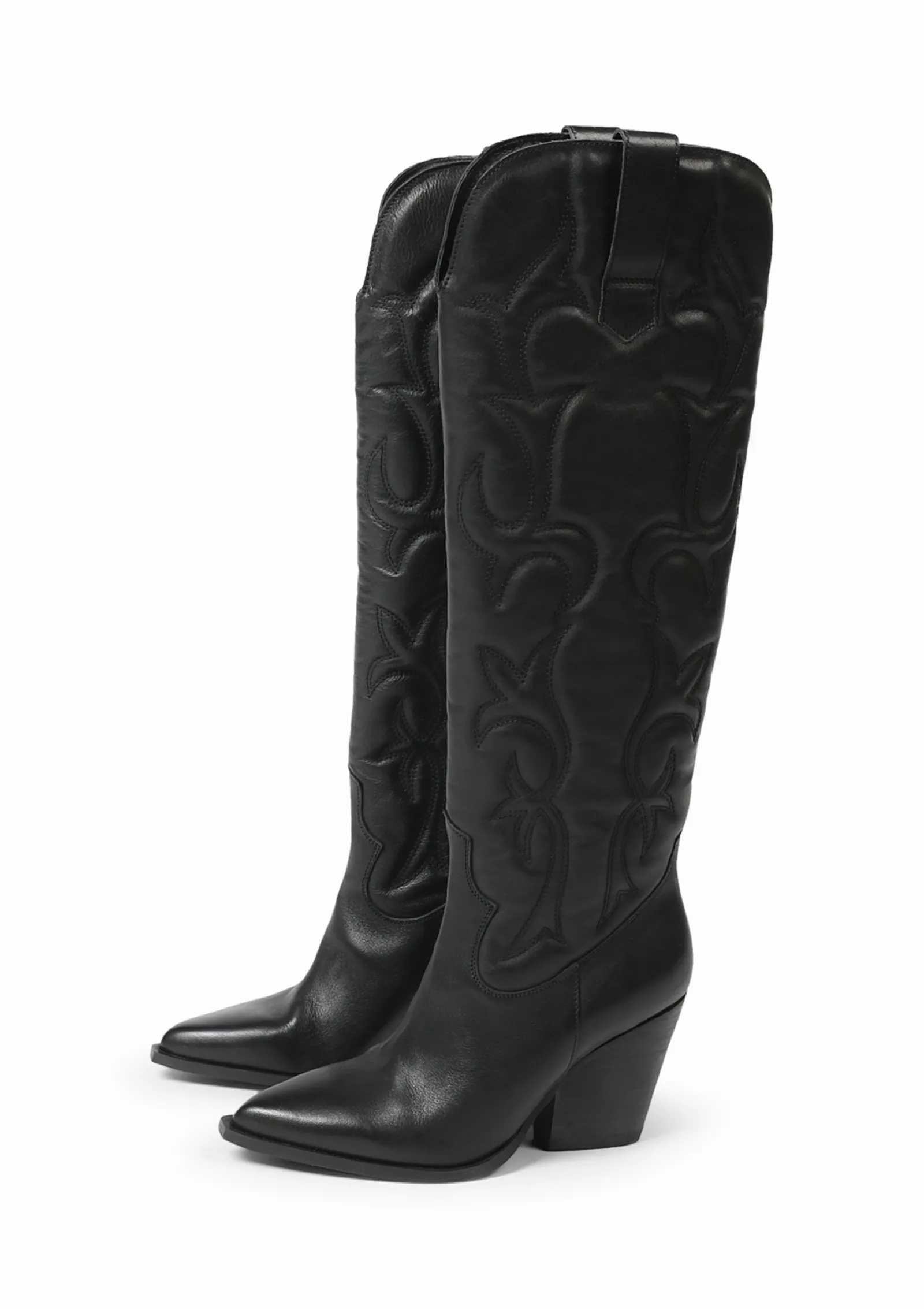 Deze Zwarte Hoge Cowboylaarzen Van Sacha Zijn Echte Showstoppers! Het Hoge Model Geeft Extra Spice Aan Jouw Look Met Als Finishing Touch Een Blok Hak Van 9 Cm Hoog. De Western Laarzen Zijn Geheel Gemaakt Van Leer En Zijn Aan De Buitenzijde Afgwerkt Met Opvallende Sierstiksels. De Puffy Schachthoogte Is 45 Cm En De Schachtomtrek Meet 38 Cm. Maak Gebruik Van De Juiste Onderhoudsproducten Om Jouw Boots Zo Goed Mogelijk Te Verzorgen!