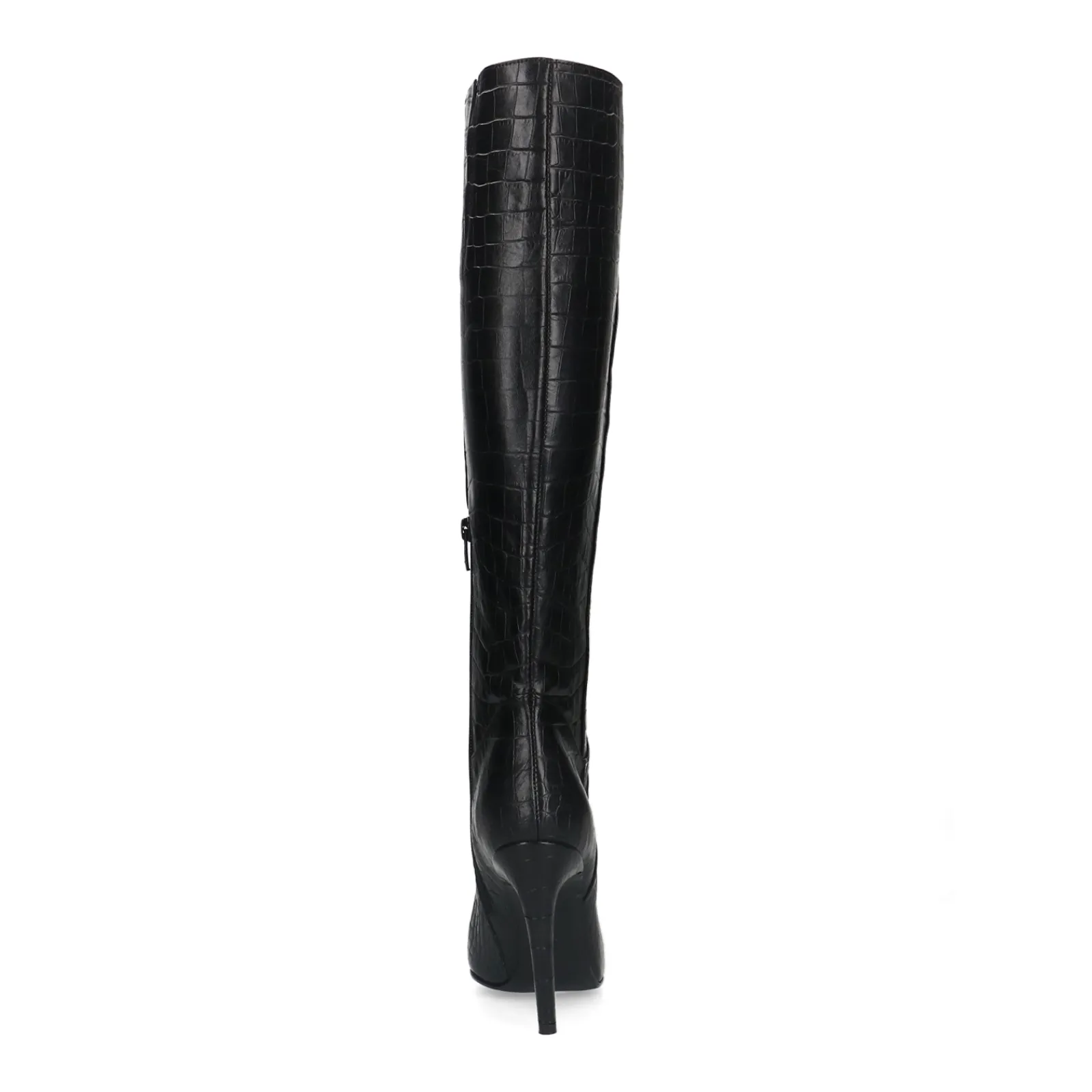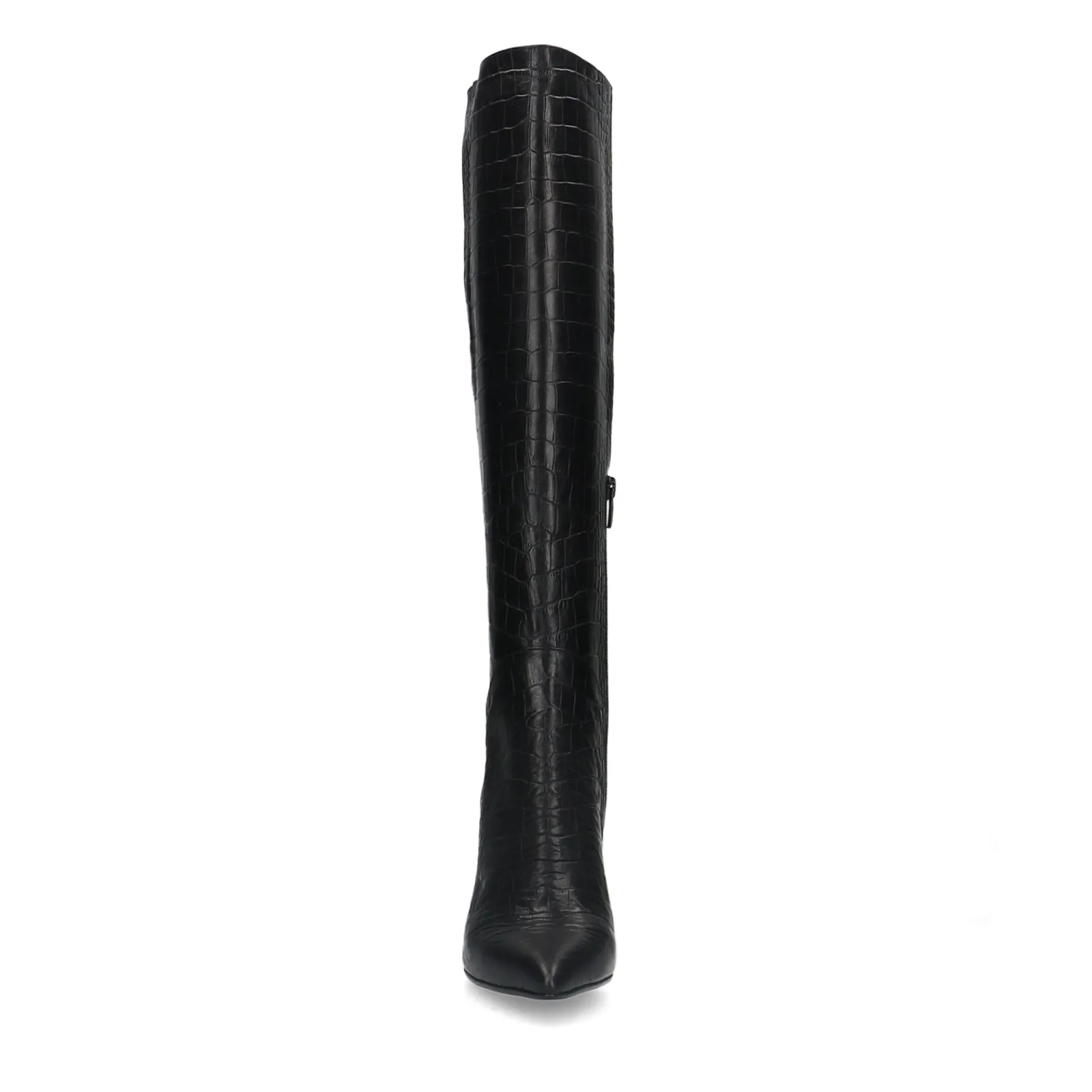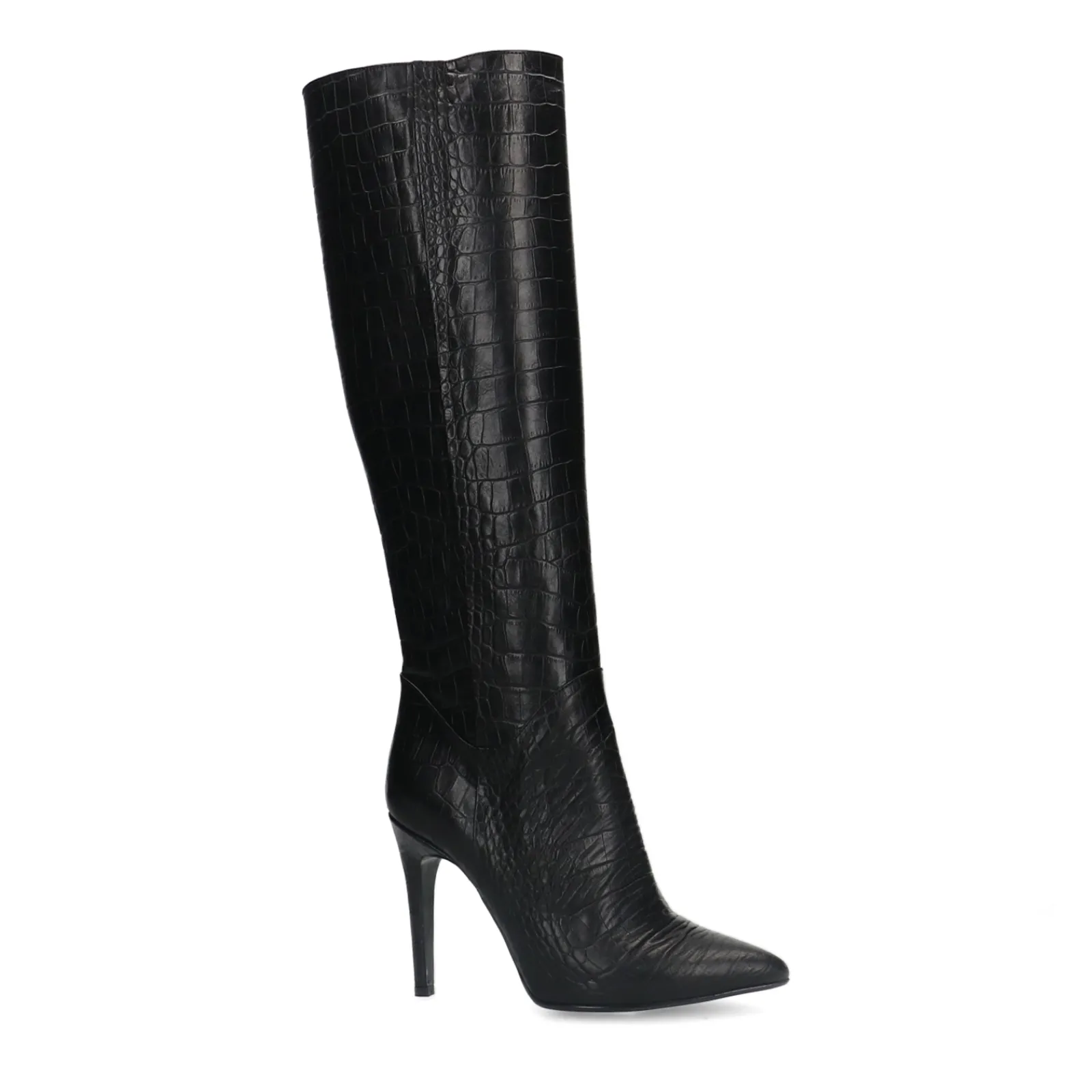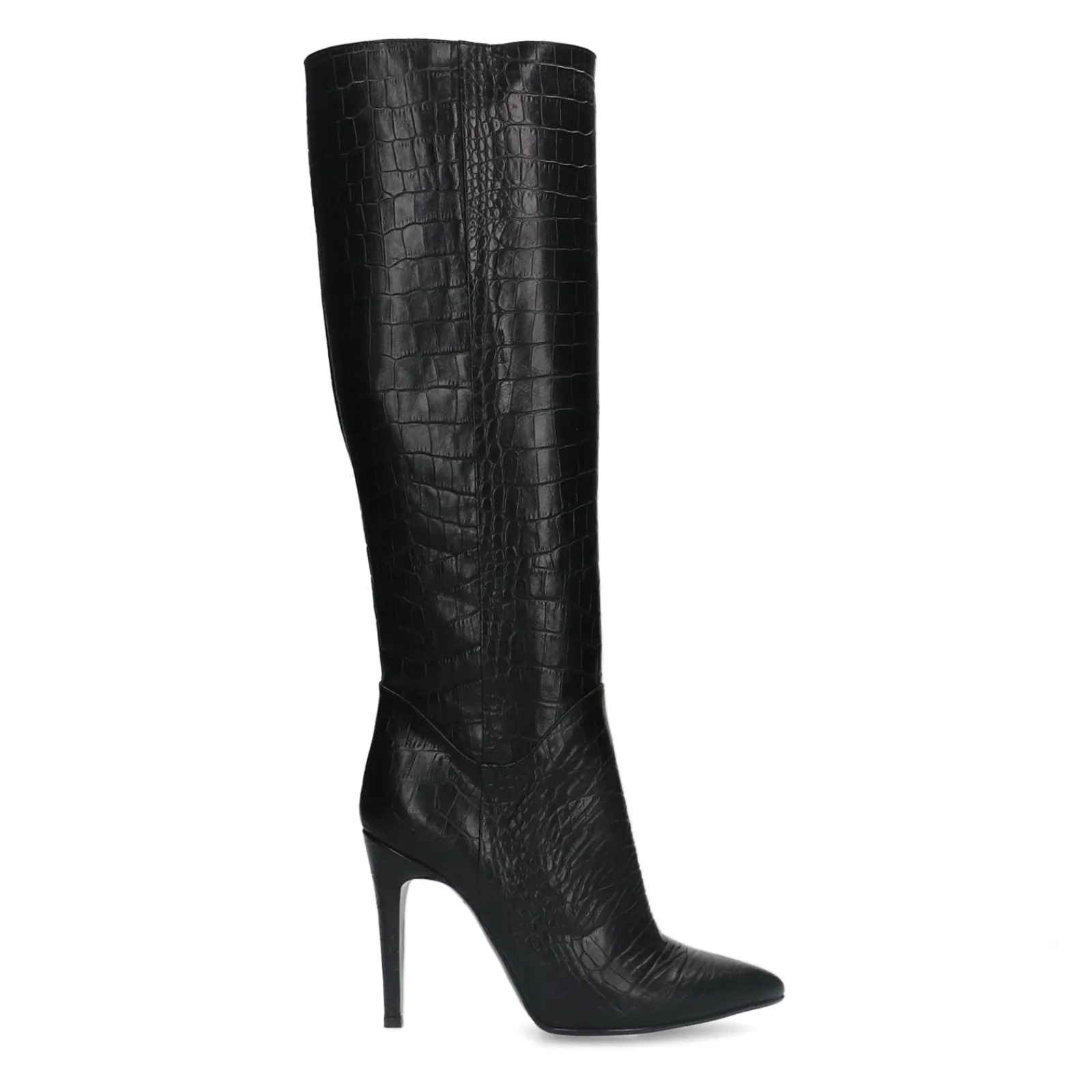 Zwarte Hoge Leren Laarzen Met Crocoprint^Sacha Store