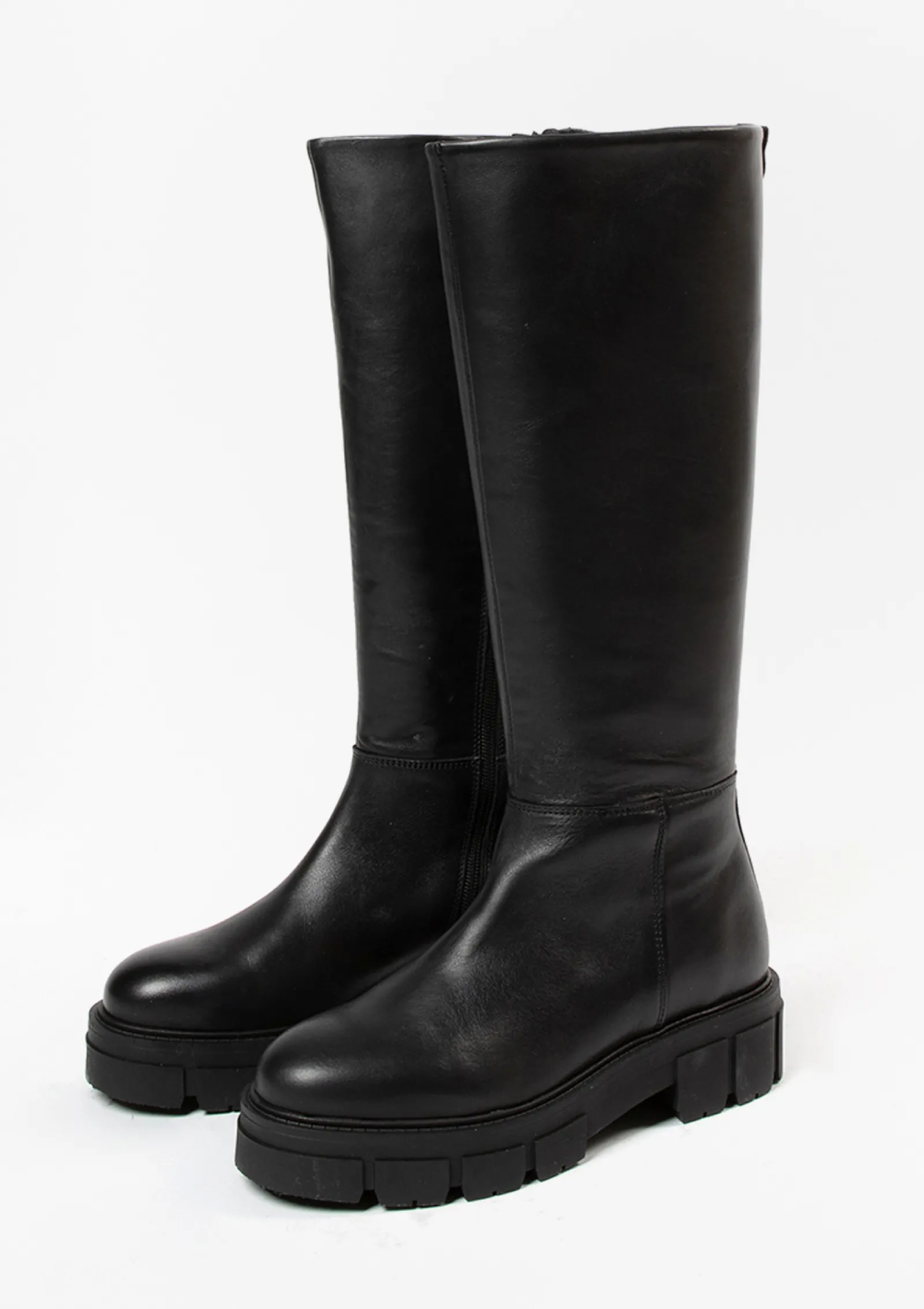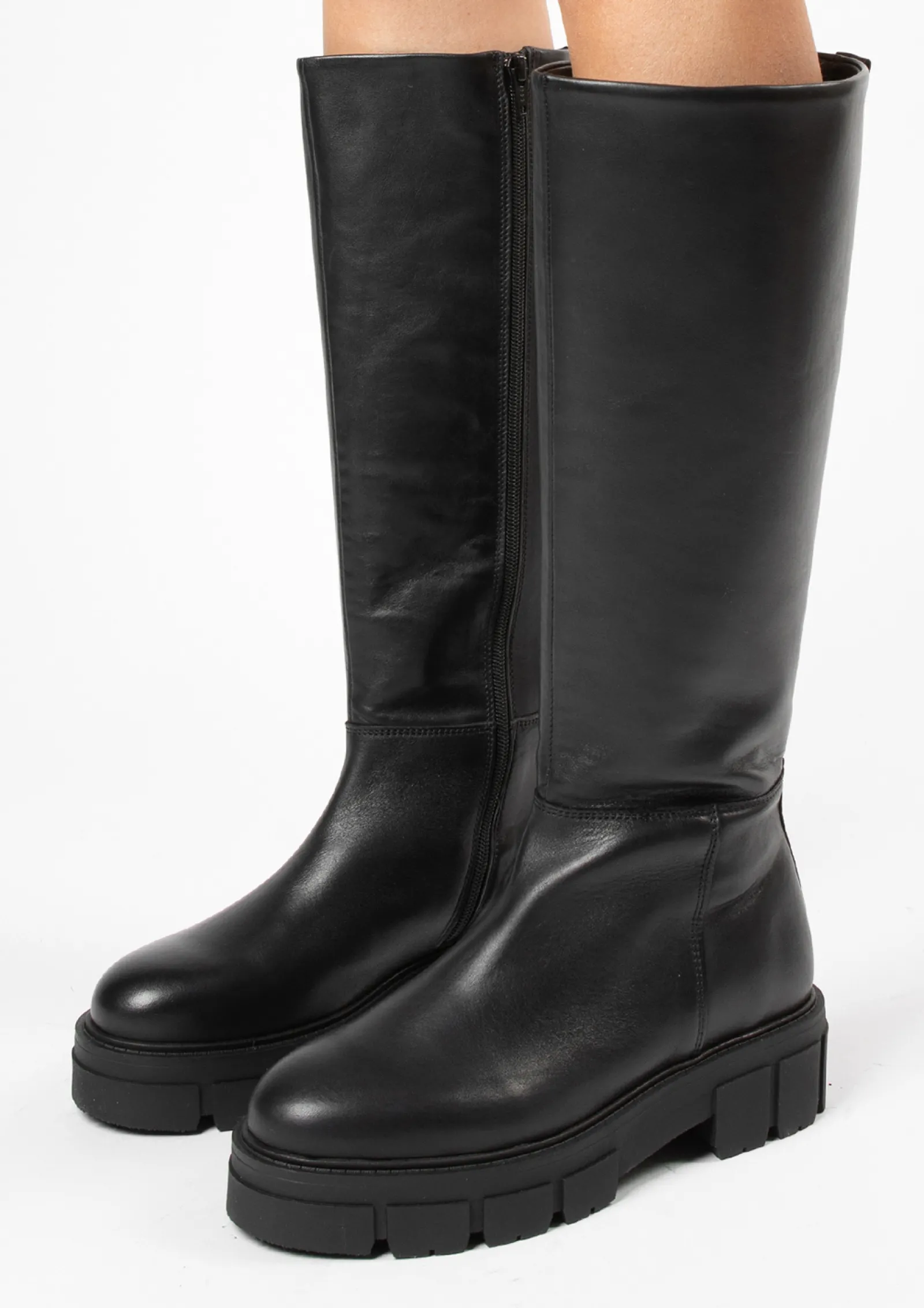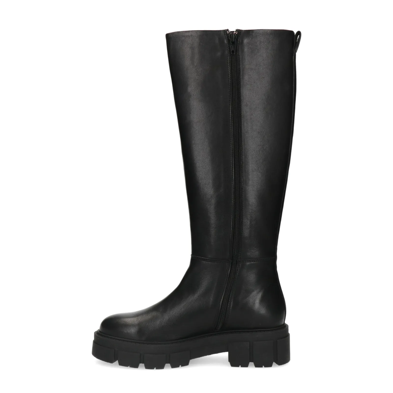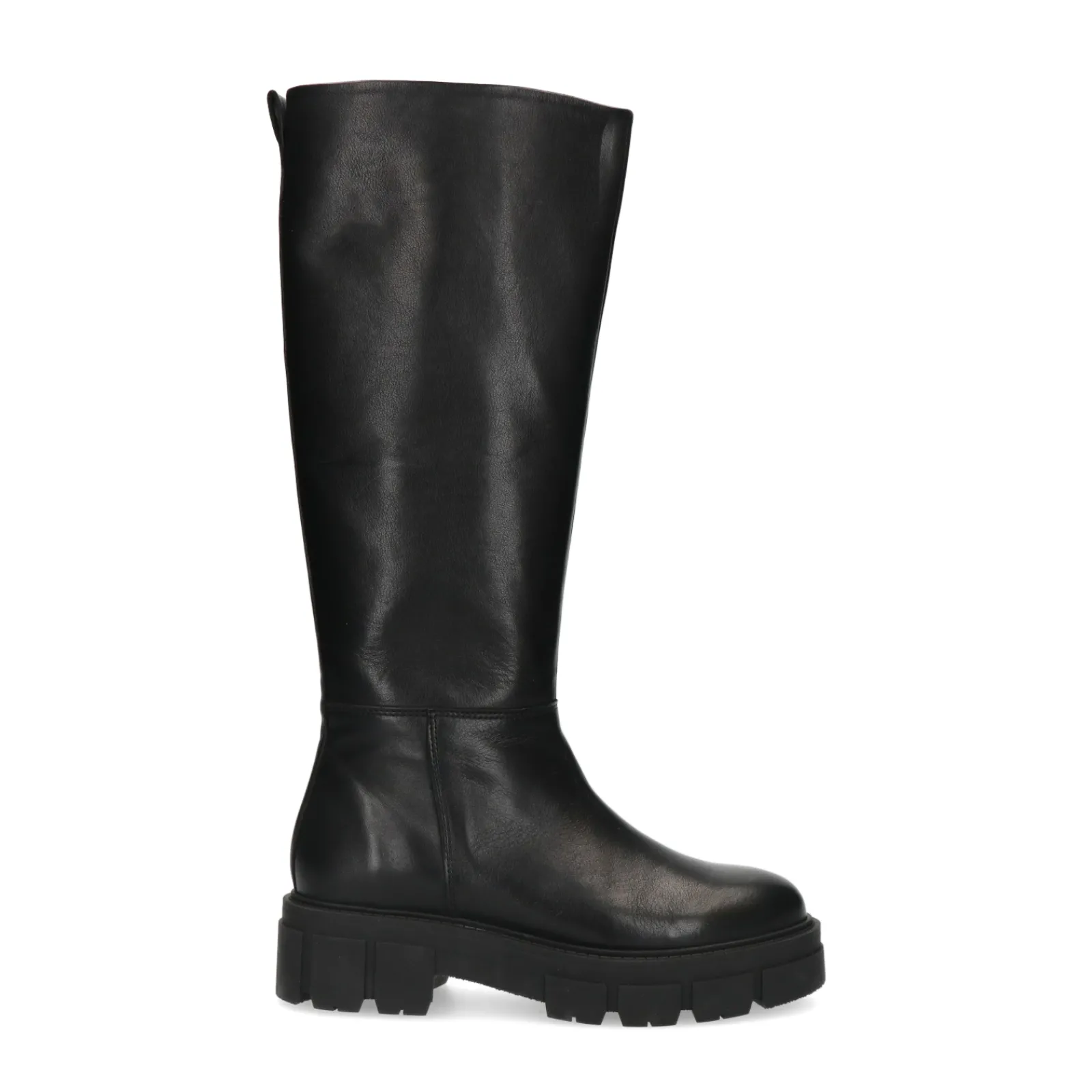 Zwarte Hoge Leren Boots Van Sacha. Deze Statement Laarzen Zijn Door De Grove Zool Een Mooie Toevoeging Aan Je Outfit! De Laarzen Hebben Een Plateauzool Van 3 Cm Hoog En Een Hakhoogte 4 Cm. Hierbij Een Schachtomtrek Van 36 Cm En Een Schachthoogte Van 39 Cm. Maak Gebruik Van De Juiste Onderhoudsproducten.