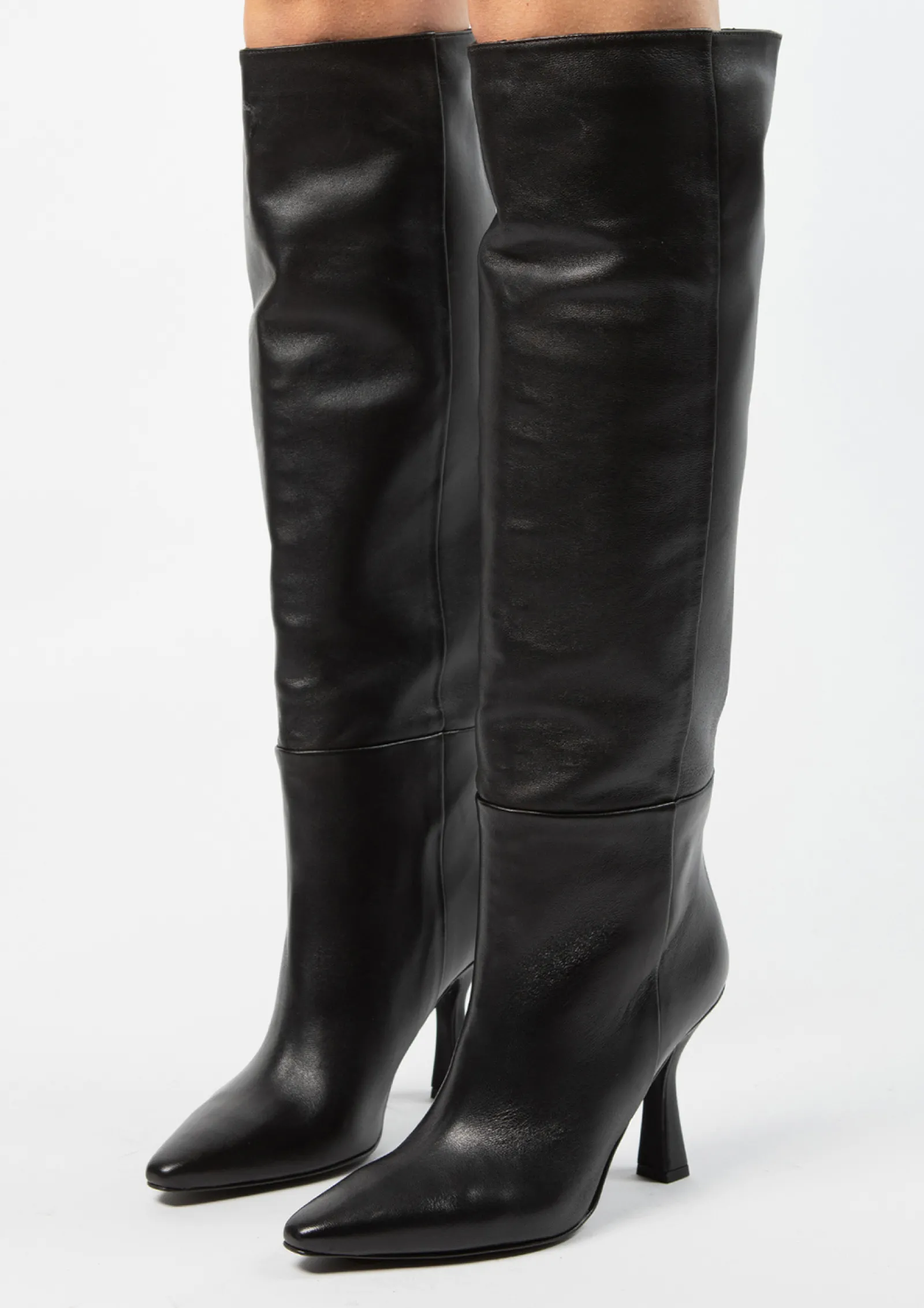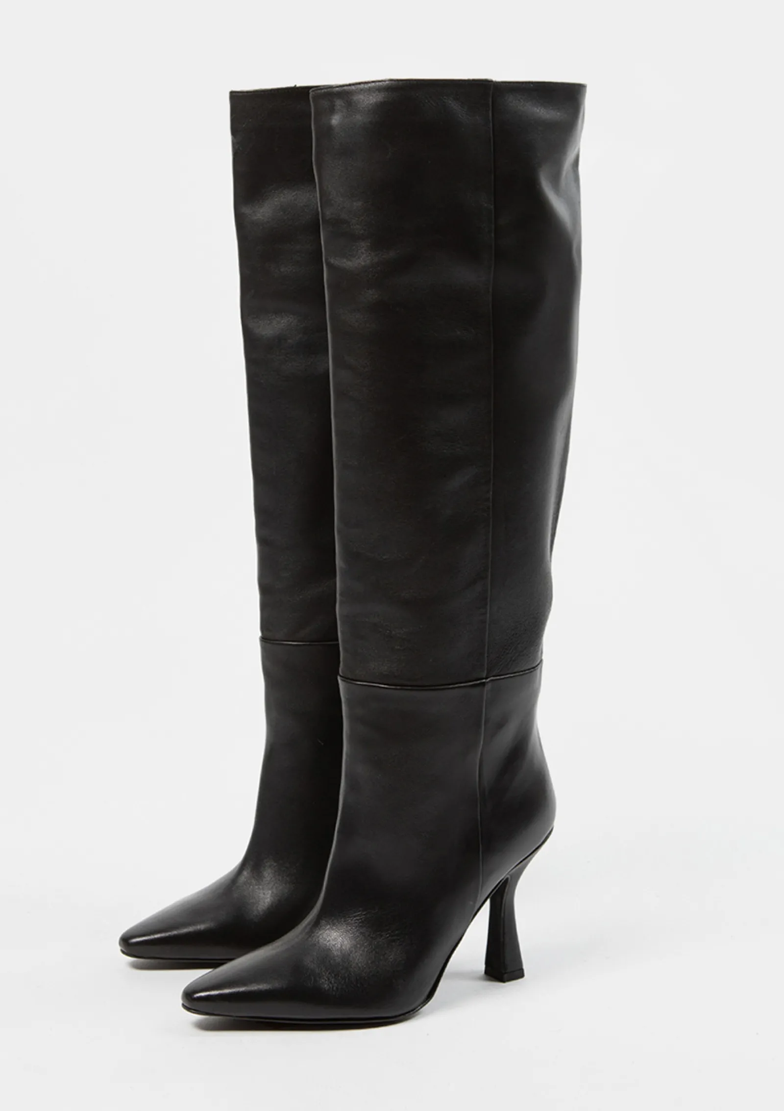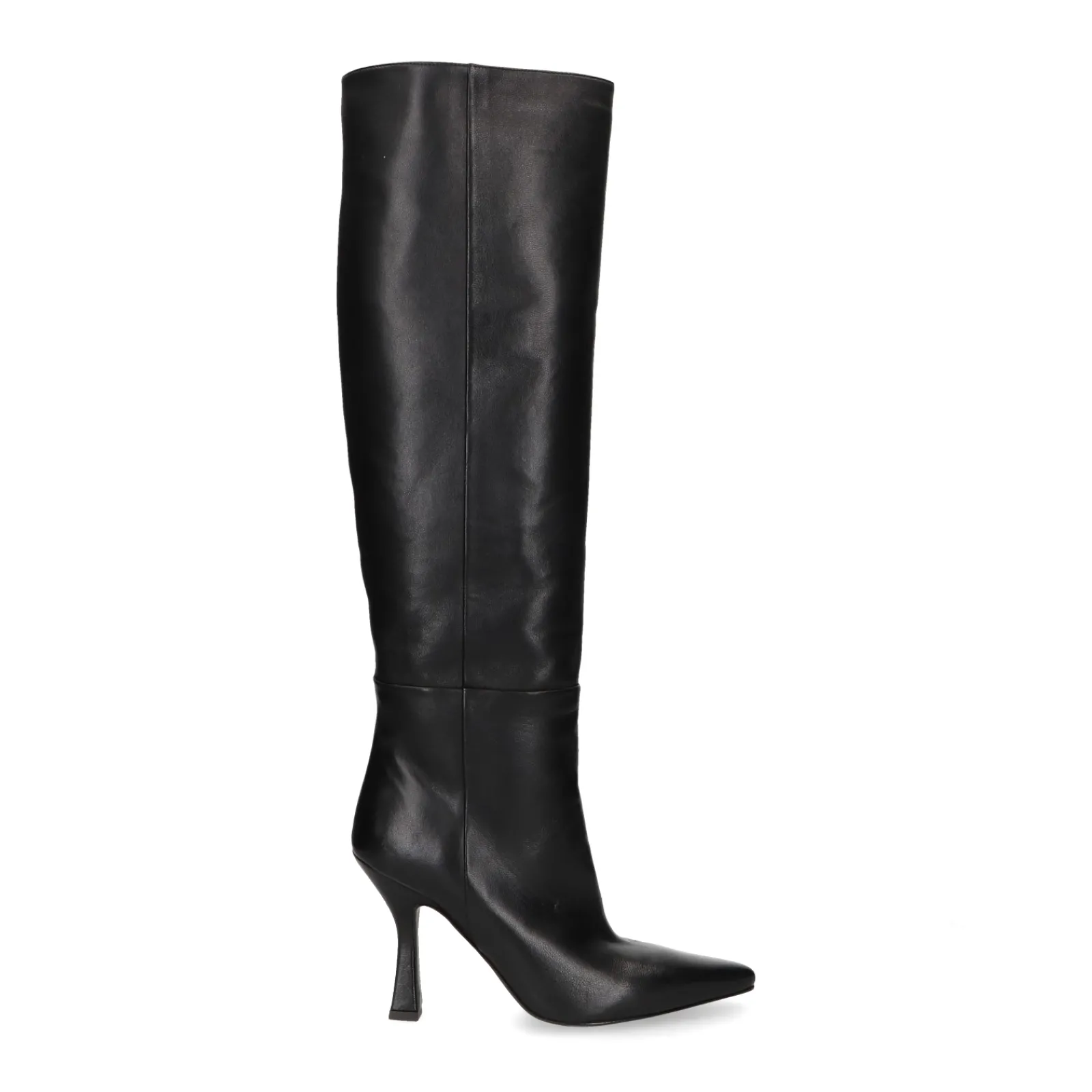 The Sky Is The Limit Met Deze Hoge Laarzen Uit De Women Premium Collectie Van Sacha. Deze Hoge Laarzen Hebben Door Hun Puntige Neus En Aflopende Hak Een Stijlvol Karakter. Ze Zijn Aan De Buitenkant Gemaakt Van Leer En Bestaan Aan De Binnenkant Uit Een Synthetisch Materiaal. De Schachthoogte Van De Laarzen Is 44 Cm En De Schachtomtrek Is 40 Cm. De Hak Is 10 Cm Hoog. Draag Deze Beauties Onder Een Bodycon Jurk Voor Een Classy Outfit.