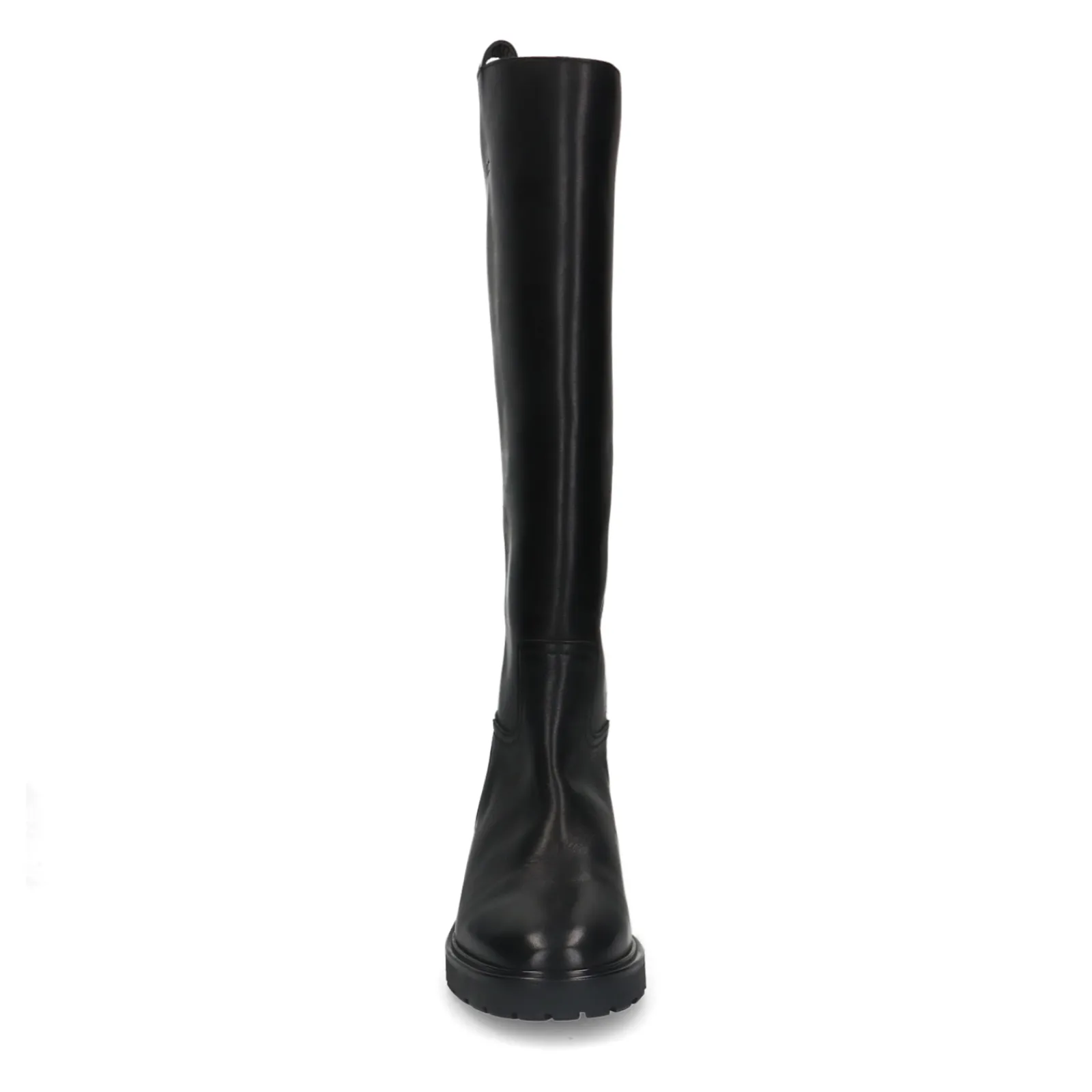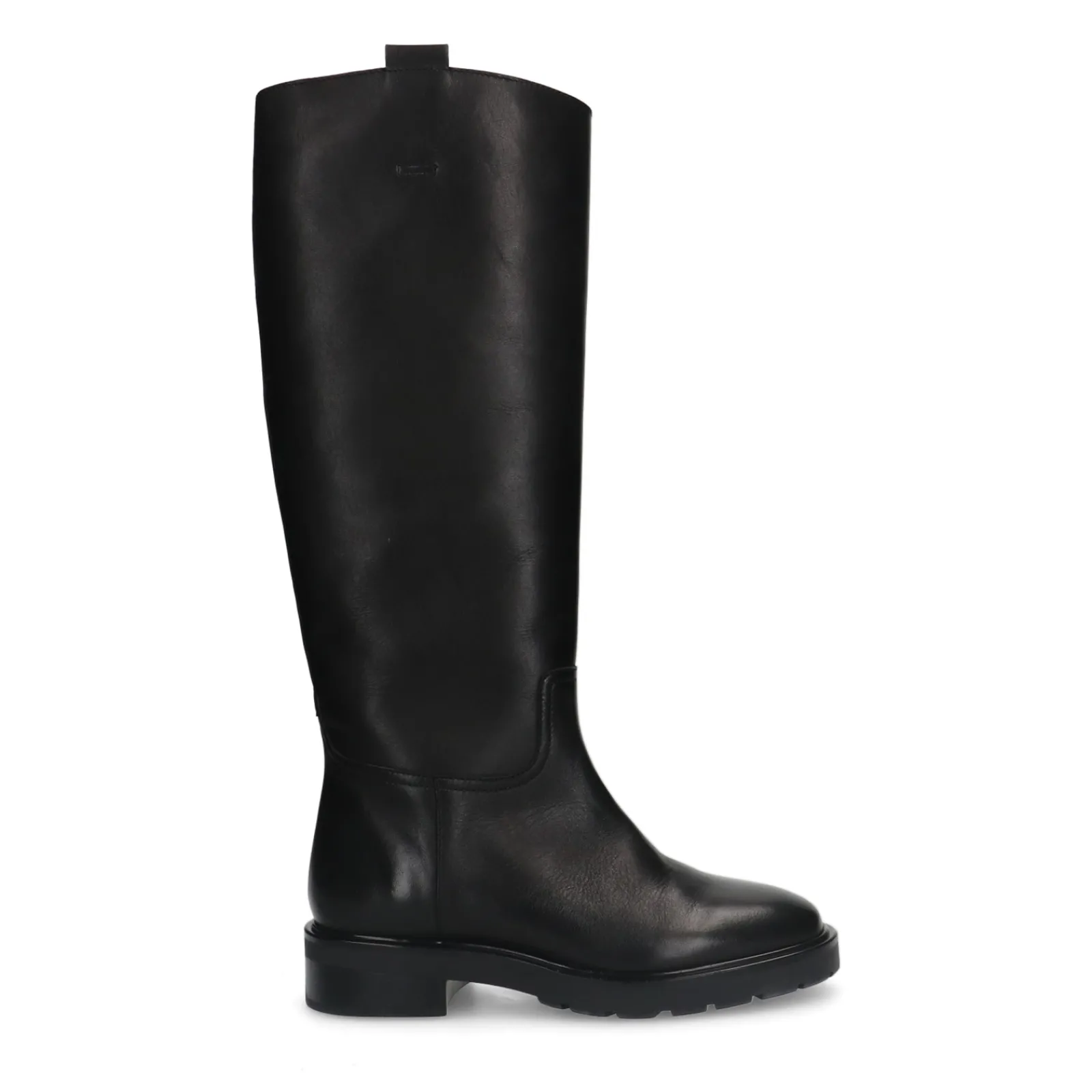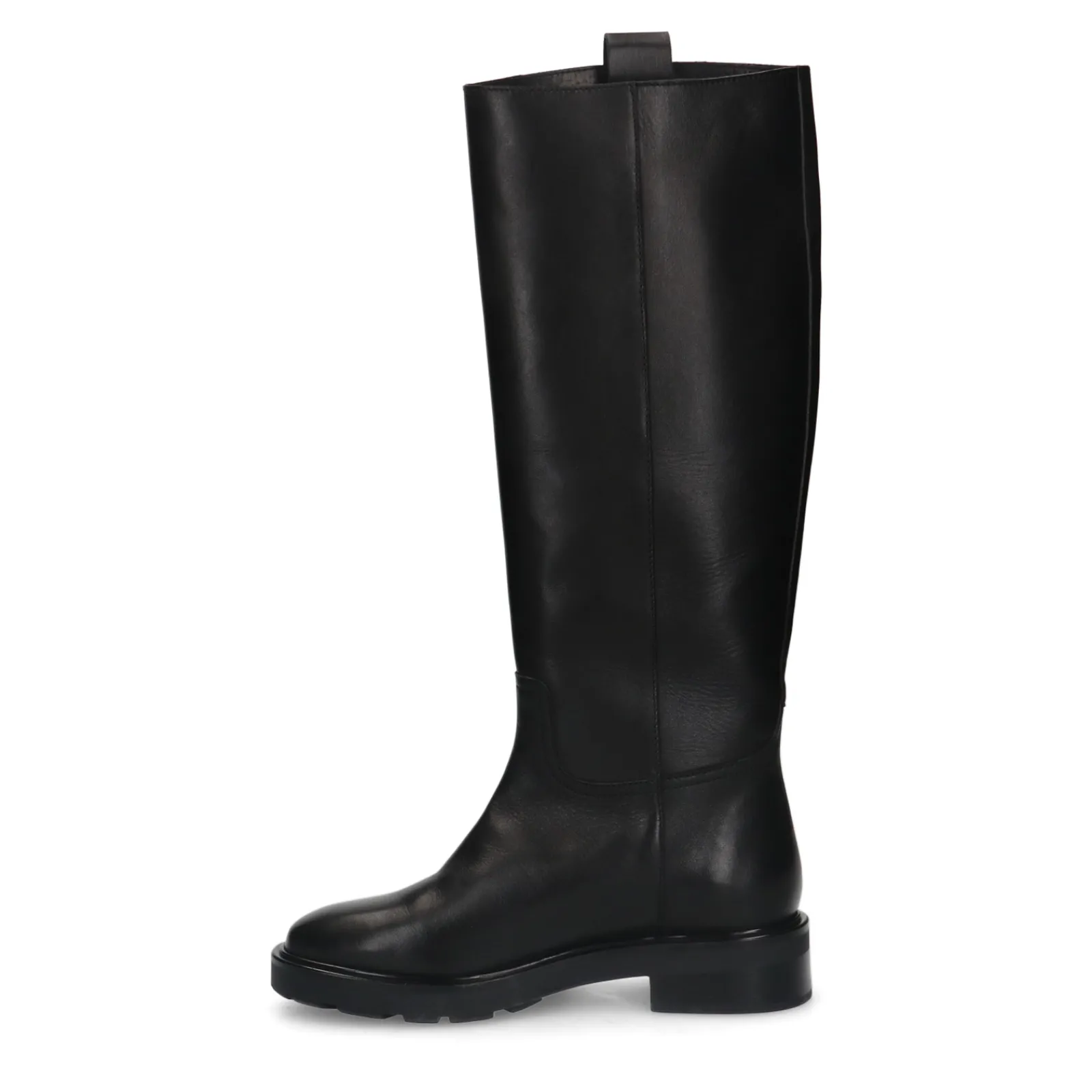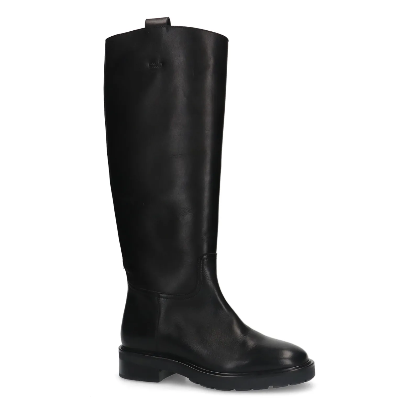 Zwarte Hoge Klassieke Boots Van Sacha Met Een Leren Design Aan Zowel De Binnen- Als Buitenzijde. De Minimal Boots Hebben Een Hoge Gladde Schacht Van 40 Cm, Een Schachtomtrek Van 38 Cm En Een Leren Lus Aan De Bovenzijde. Verzorg En Bescherm De Leren Instaplaarzen Met De Juiste Onderhoudsproducten!