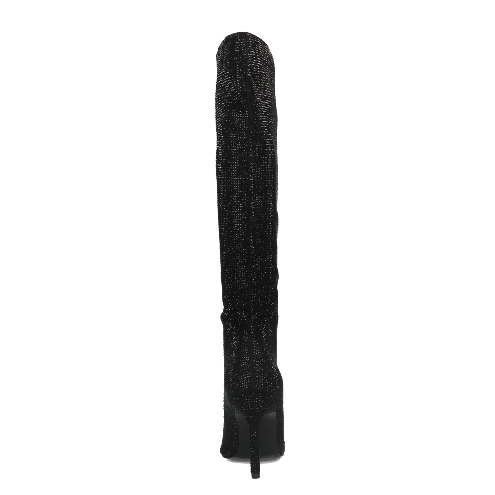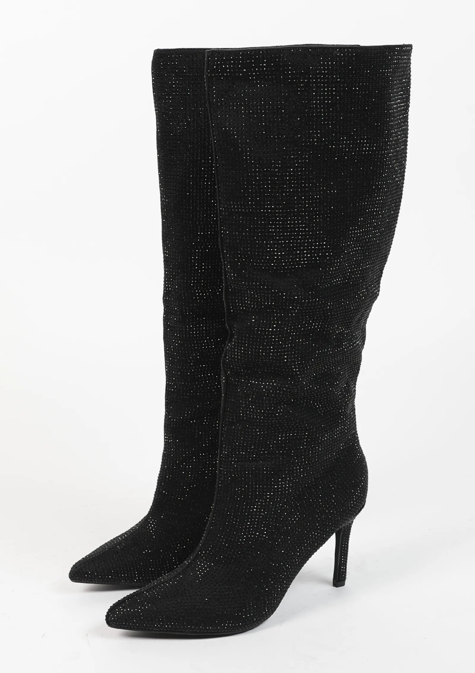 Deze Knie Hoge Laarzen Van Sacha Zijn Geheel Design Met Schitterende Strass Steentjes., Vanaf De Naaldhak Tot De Hoge Schacht! De Laarzen Hebben Een Puntige Neus En Een Naaldhak Van 10 Cm. De Hoge Laarzen Hebben Een Schachtomtrek Van 40 Cm En Een Schachthoogte Van 40 Cm. Deze Rhinestone Boots Zijn Zeker Weten Jouw Nieuwe Eyecatchers! Maak Gebruik Van De Juiste Onderhoudsproducten