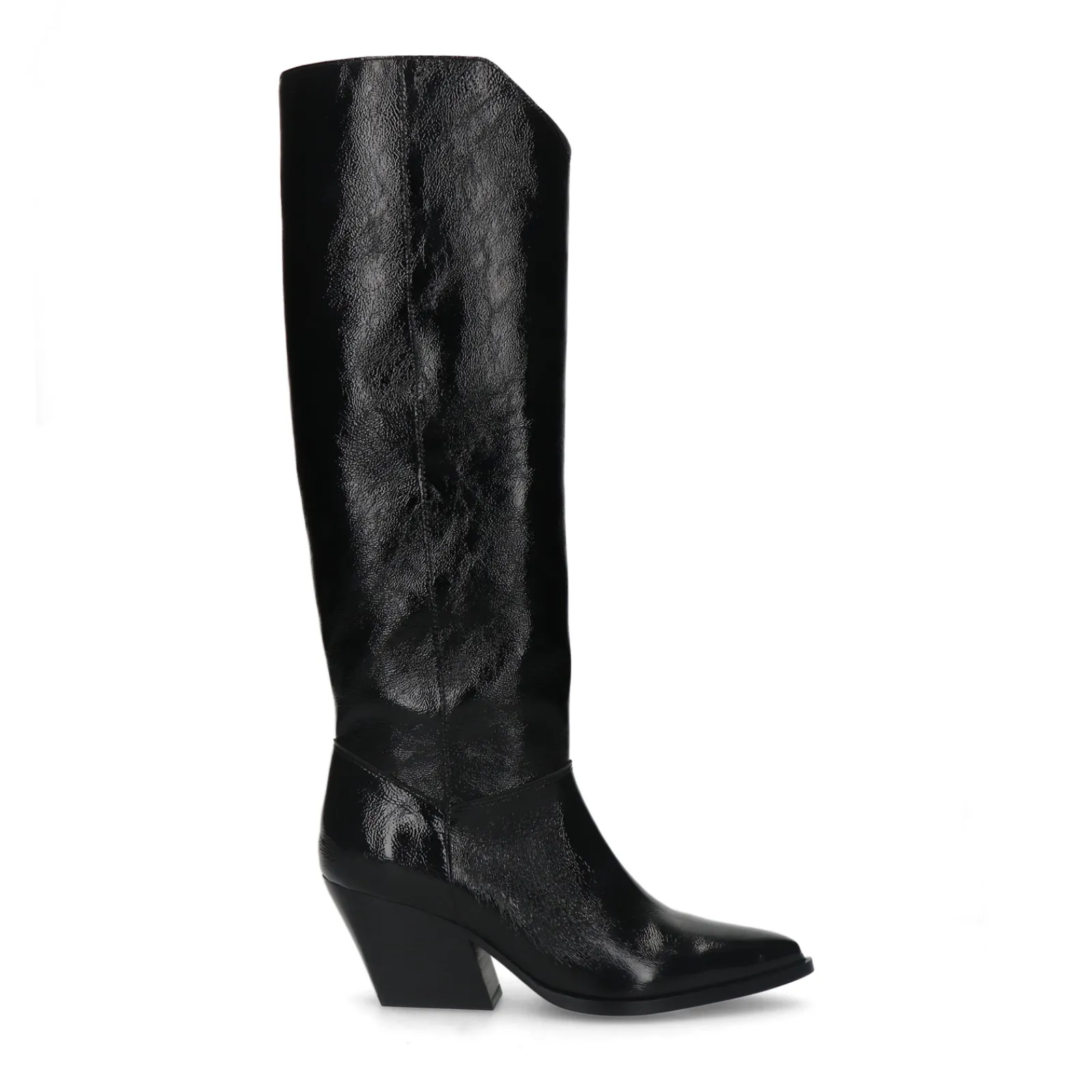 Lakleren Zwarte Cowboyboots Van Sacha Met Een Hogere Schacht! Deze Western Laarzen Hebben Een Minimal Design Met Een Puntige Neus, Schuine Hak Van 7 Cm En Een Korte Rits Aan De Binnenzijde. De Laarzen Zijn Aan De Buiten- En Binnenkant Gemaakt Van Lakleer. Hierbij Hoort Een Schachthoogte Van 40 Cm En Een Schachtomtrek Van 37 Cm. Maak Gebruik Van De Juiste Onderhoudsproducten.