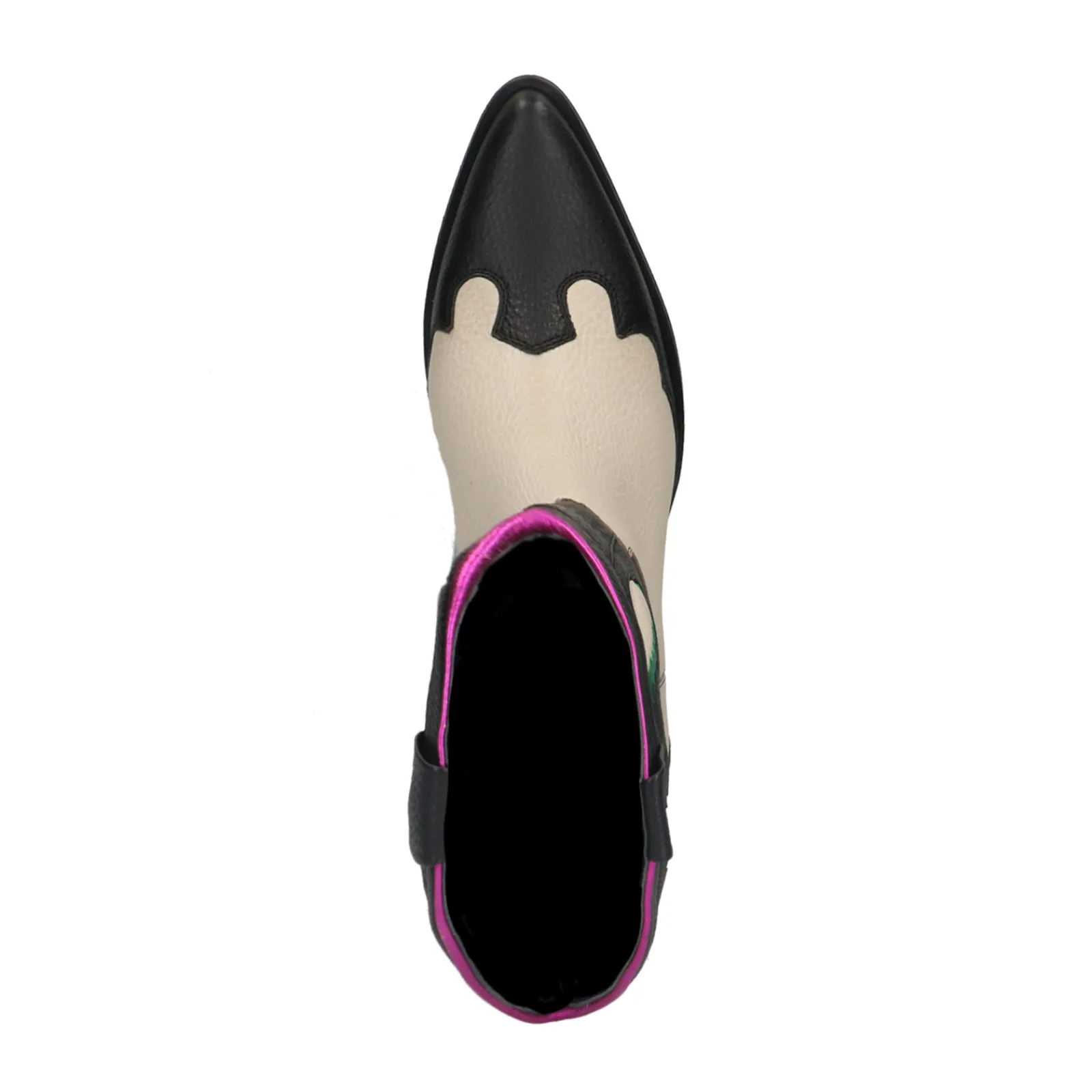 Deze Zwarte Leren Cowboylaarzen Van Sacha Hebben Een Uniek Western Design Met Off White, Groene En Roze Details. De Laar…