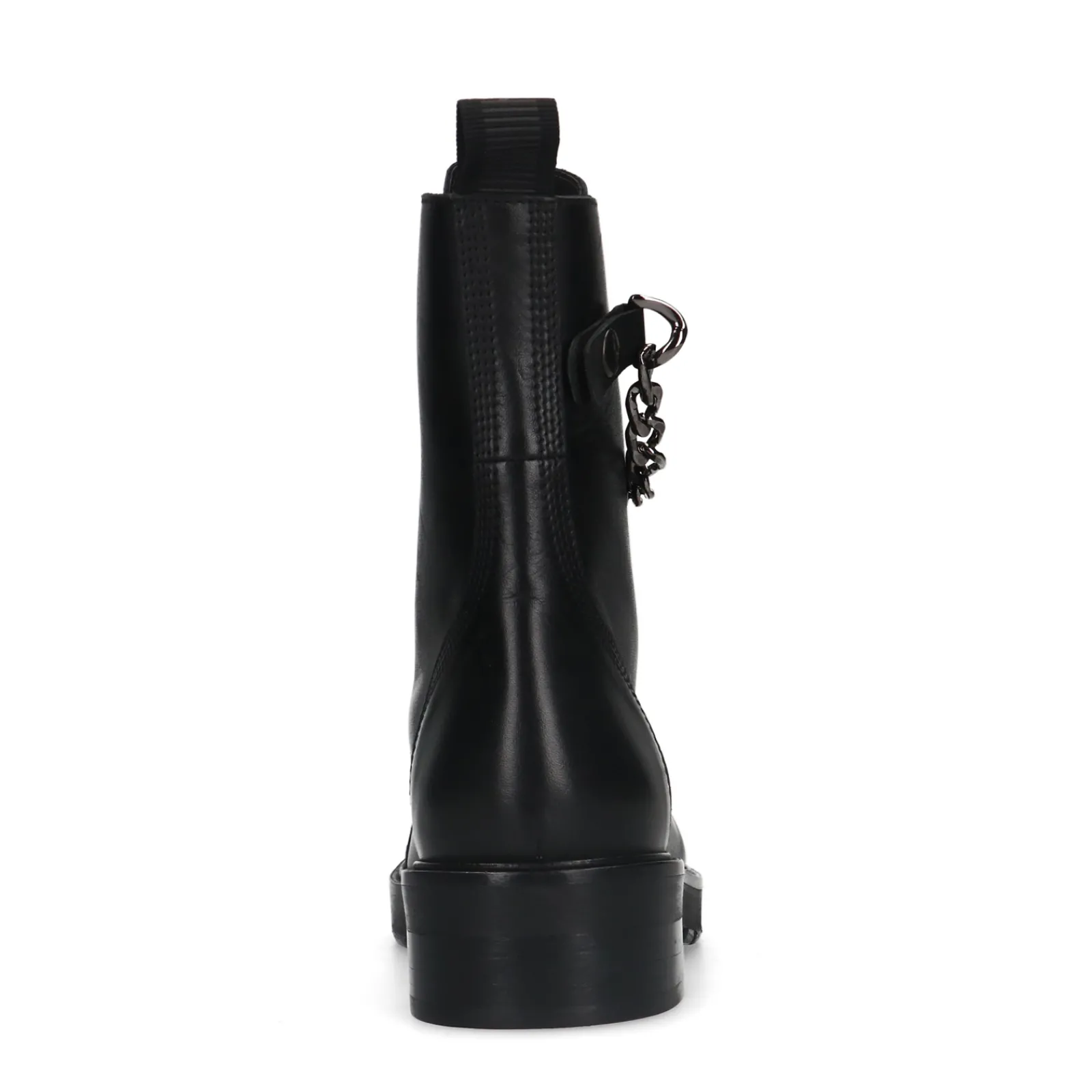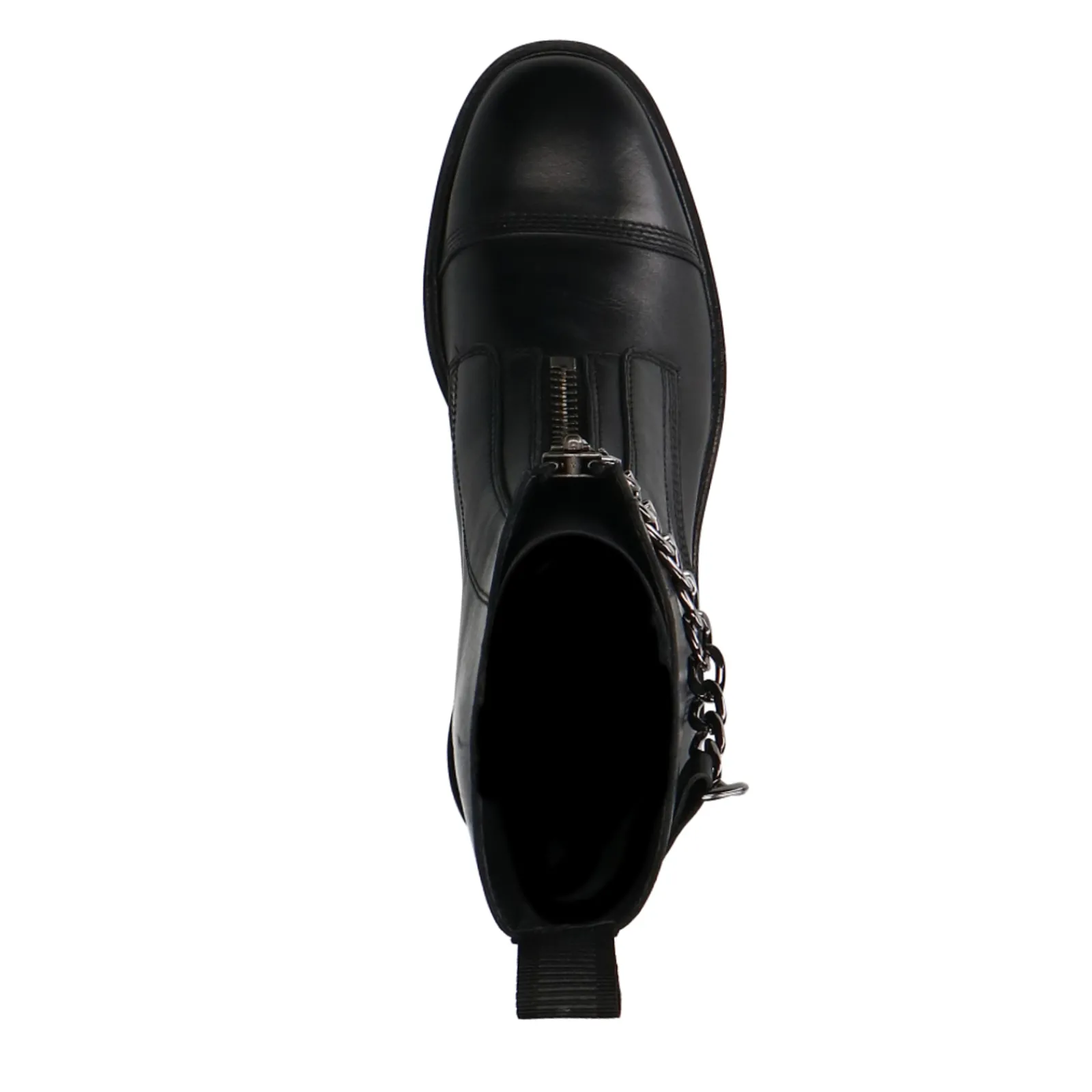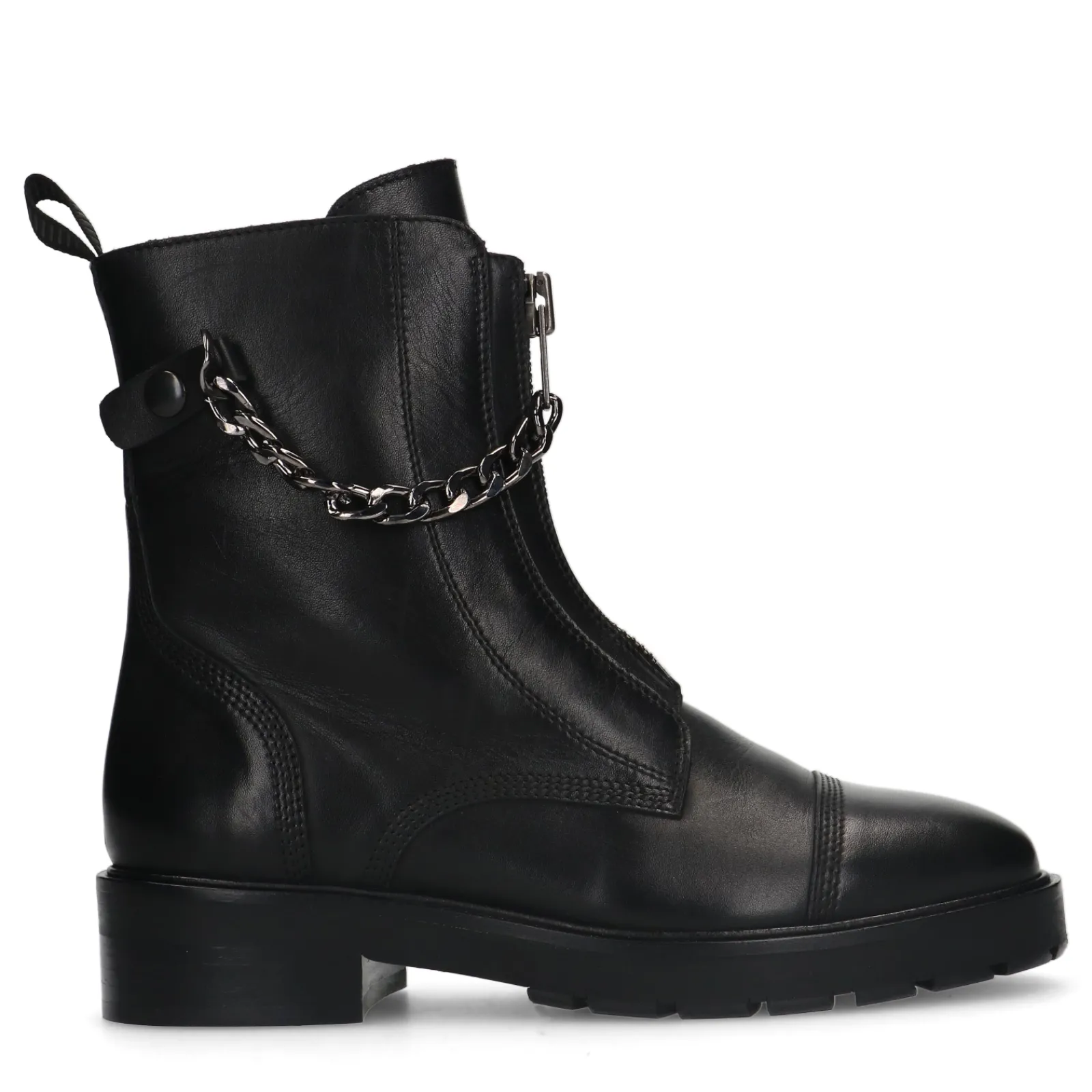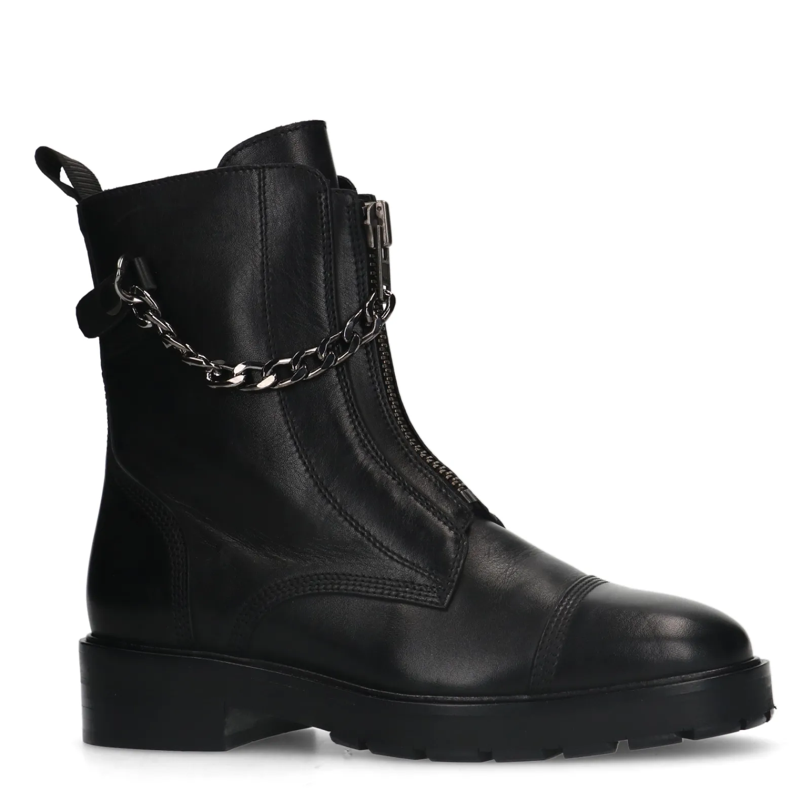 Klassieke Zwarte Enkellaarsjes Van Sacha Met Chunky Details Zorgen Samen Voor Een Stoer Design. De Enkelboots Zijn Aan De Buiten- En Binnenzijde Gemaakt Van Leer, Hebben Een Zilverkleurige Chunky Rits Aan De Voorzijde En Een Chain Aan De Schacht. De Bijhorende Schachthoogte Is 16 Cm En De Schachtomtrek 30 Cm. Maak Gebruik Van De Juiste Onderhoudsproducten!