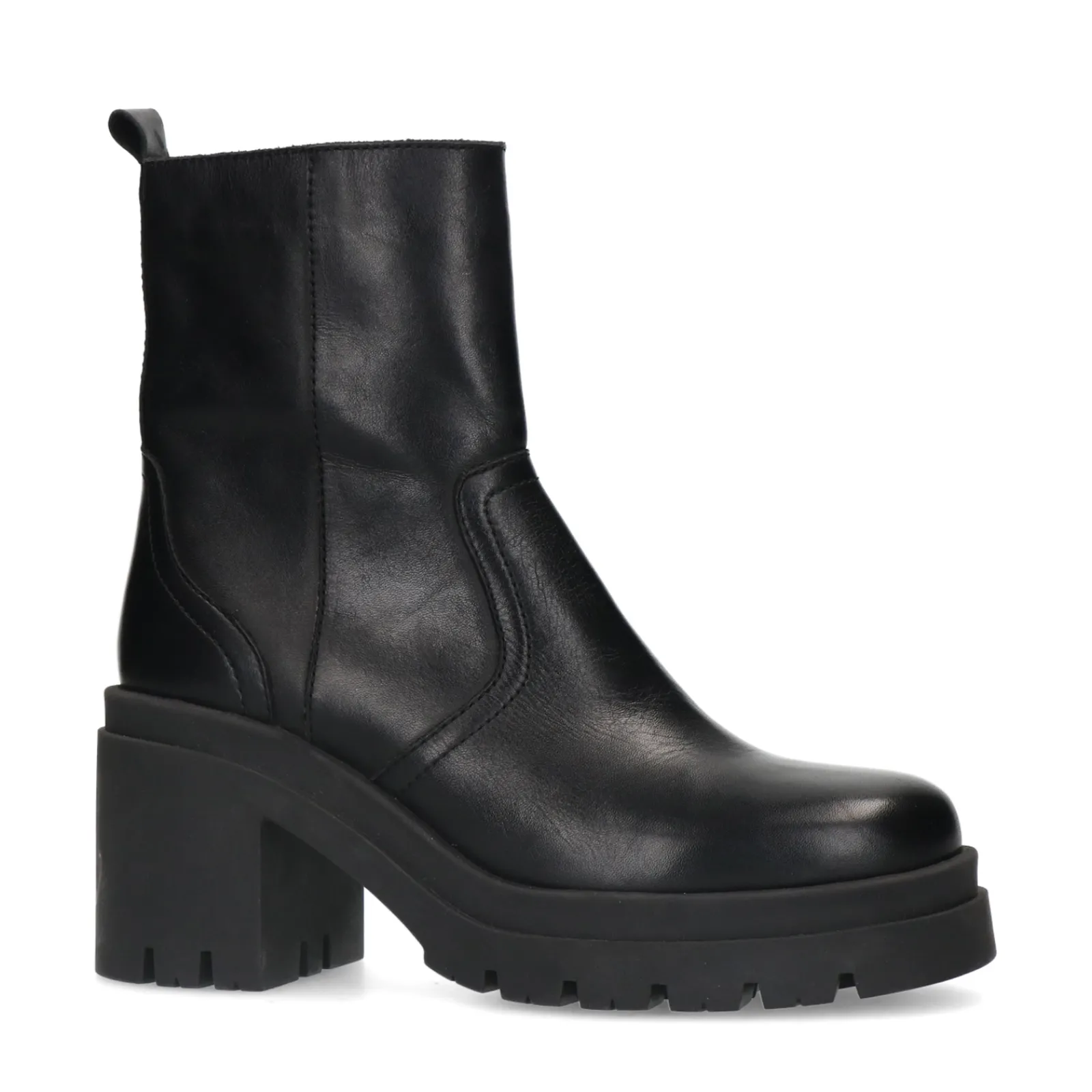 Zwarte Leren Enkellaarsjes Met Hak^Sacha Cheap