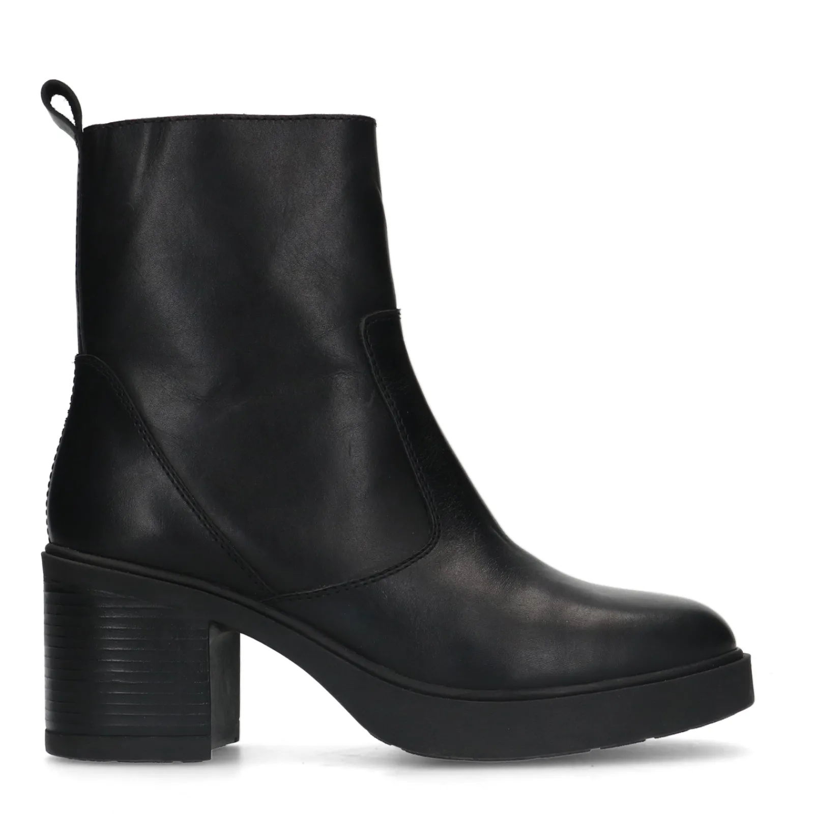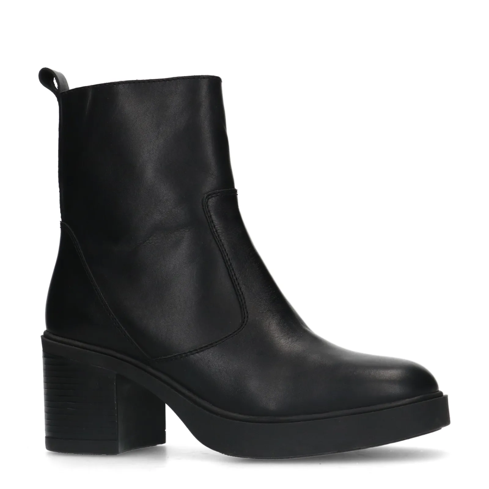 Zwarte Leren Enkellaarsjes Met Hak^Sacha Discount
