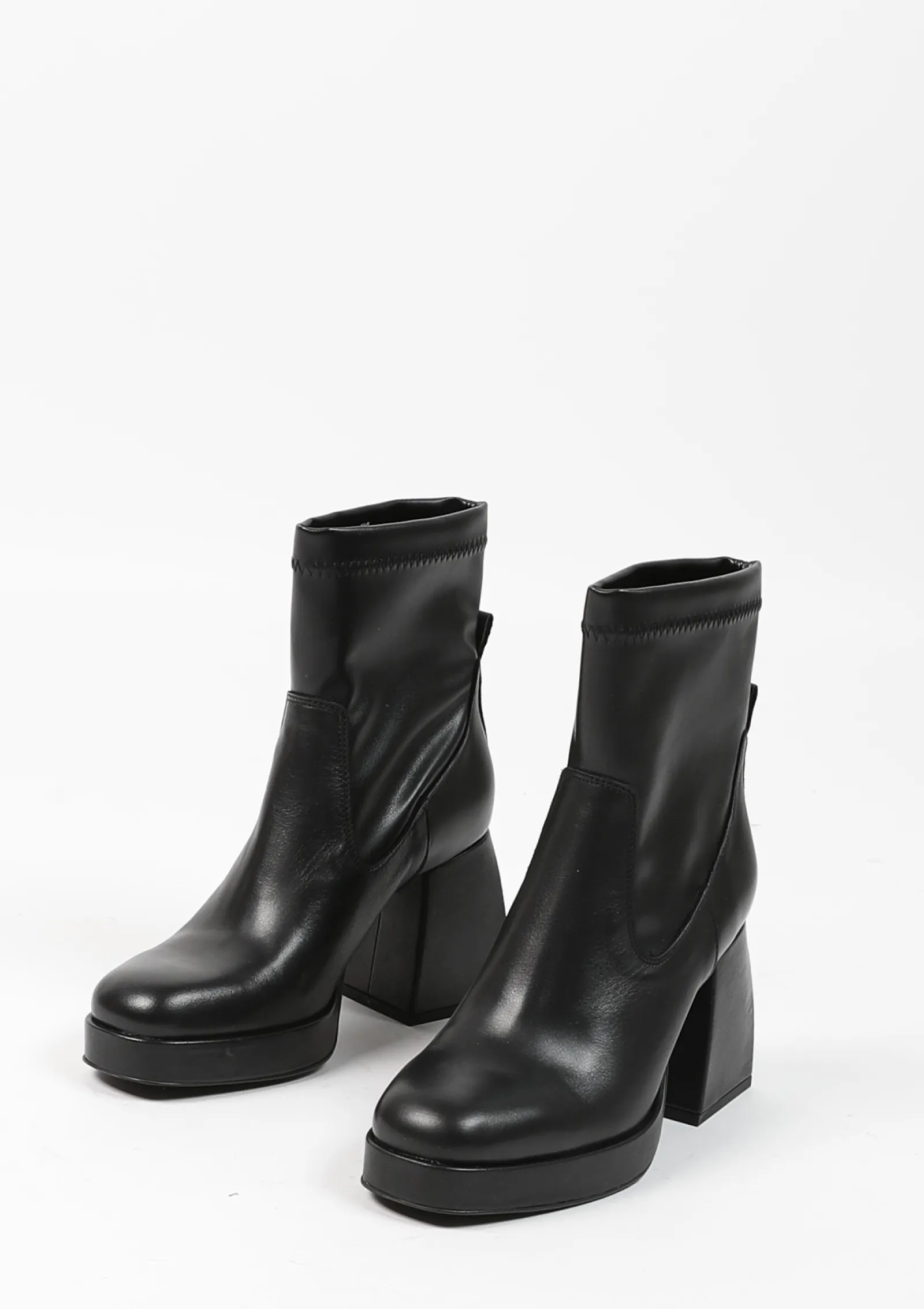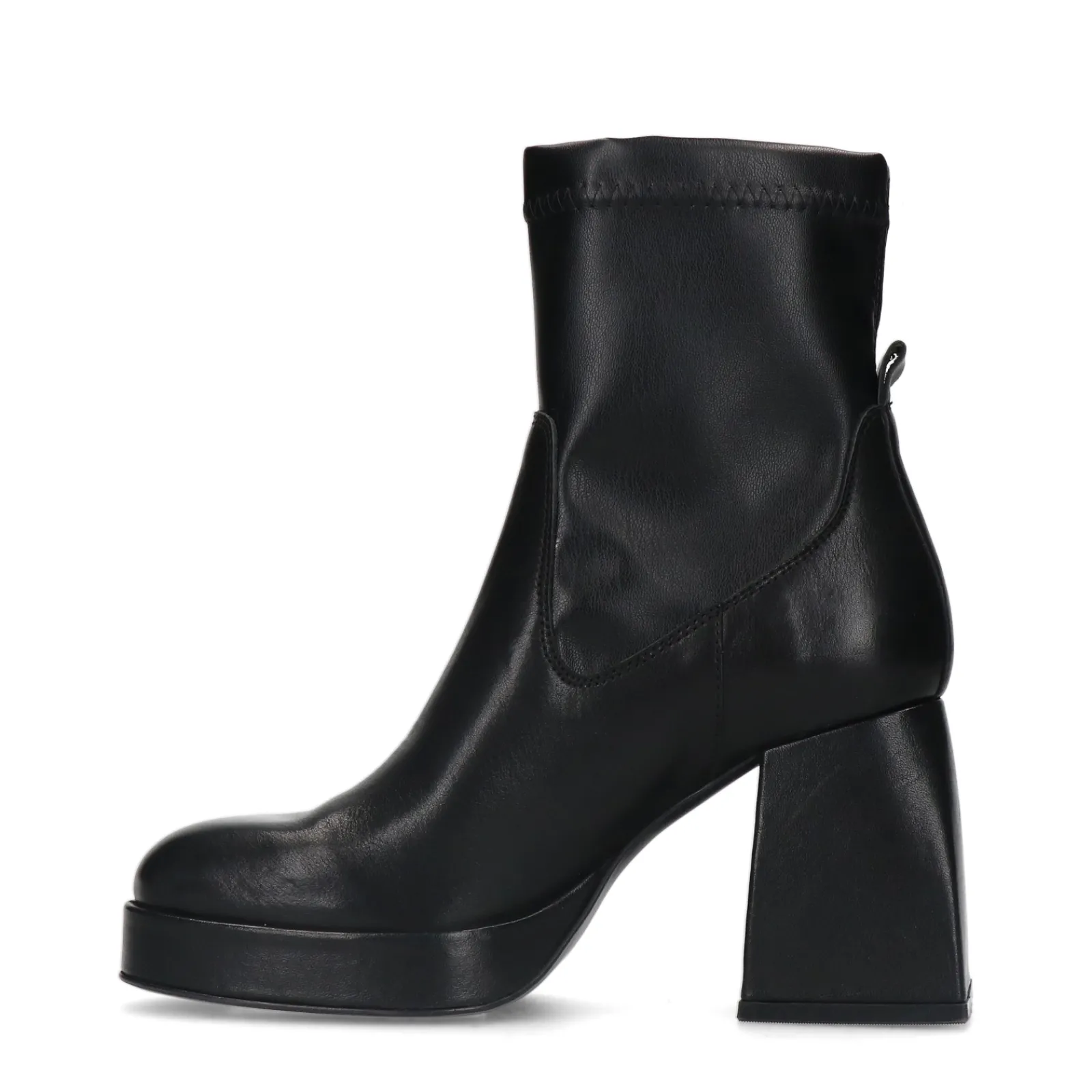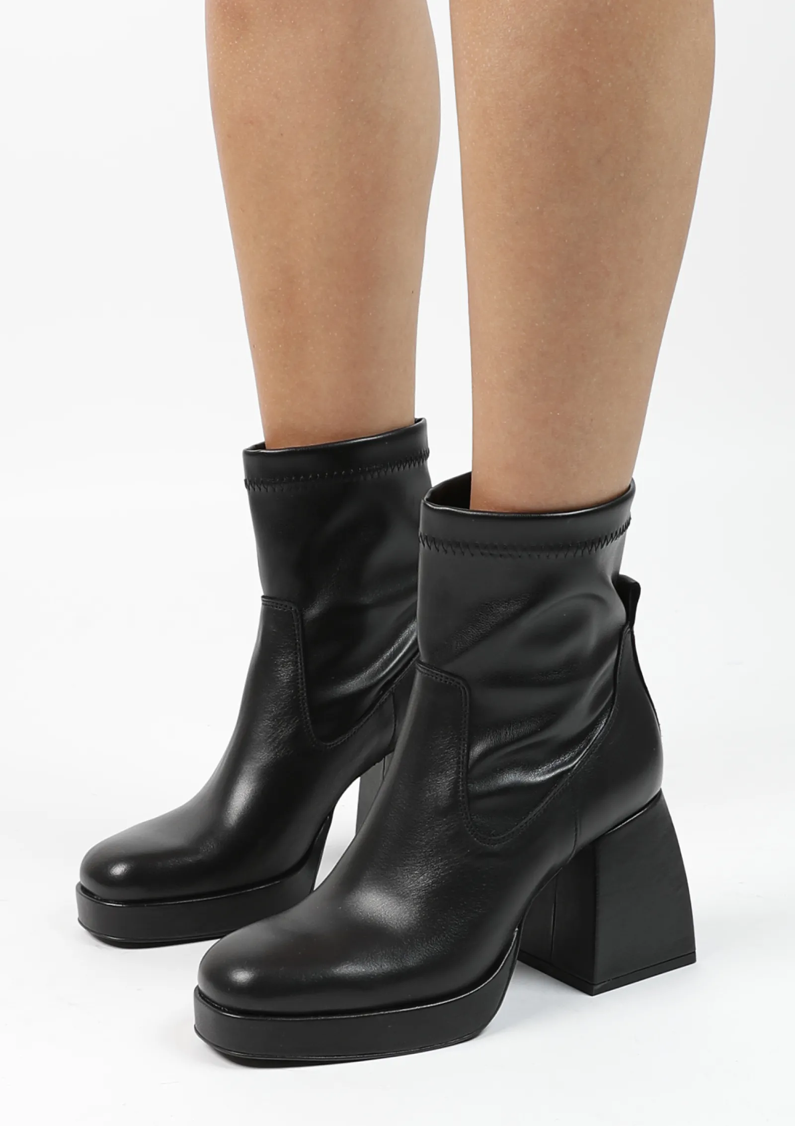 Zwarte Leren Enkellaarsjes Met Hak^Sacha Store