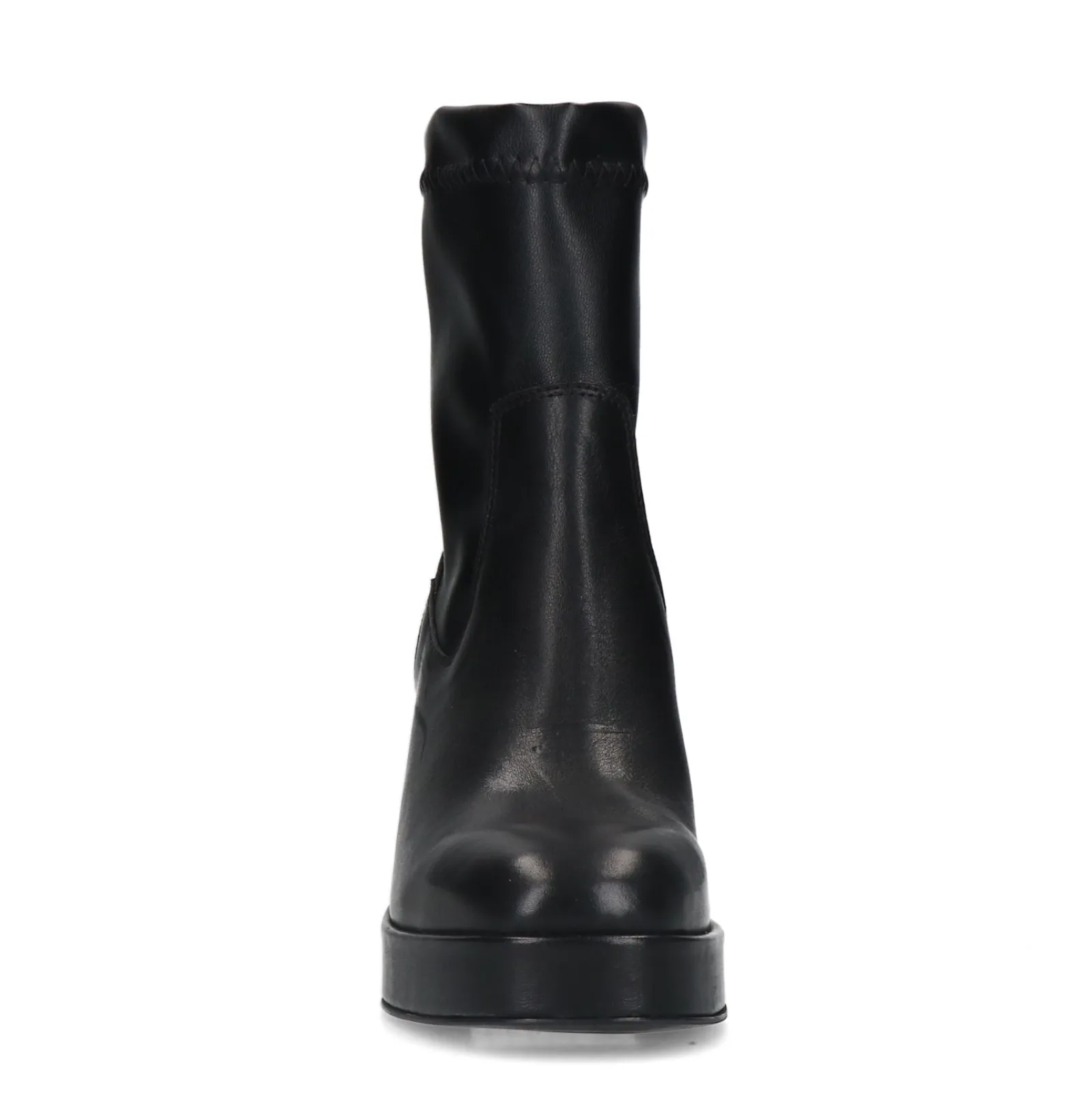 Deze Stijlvolle Zwarte Enkellaarsjes Van Sacha Hebben Een Unieke Blokhak Van 9 Cm Hoog. De Stretchy Schacht Heeft Een Ho…