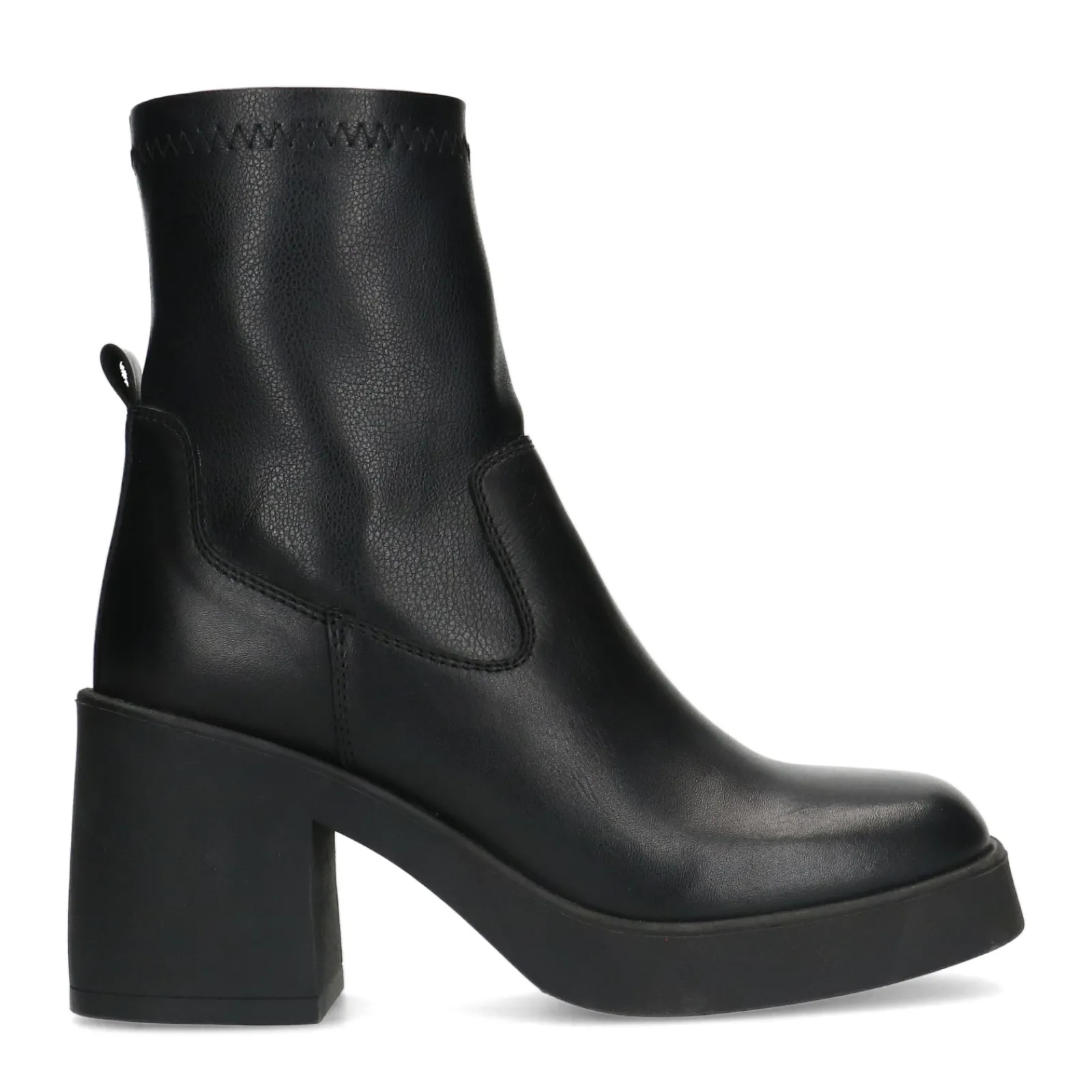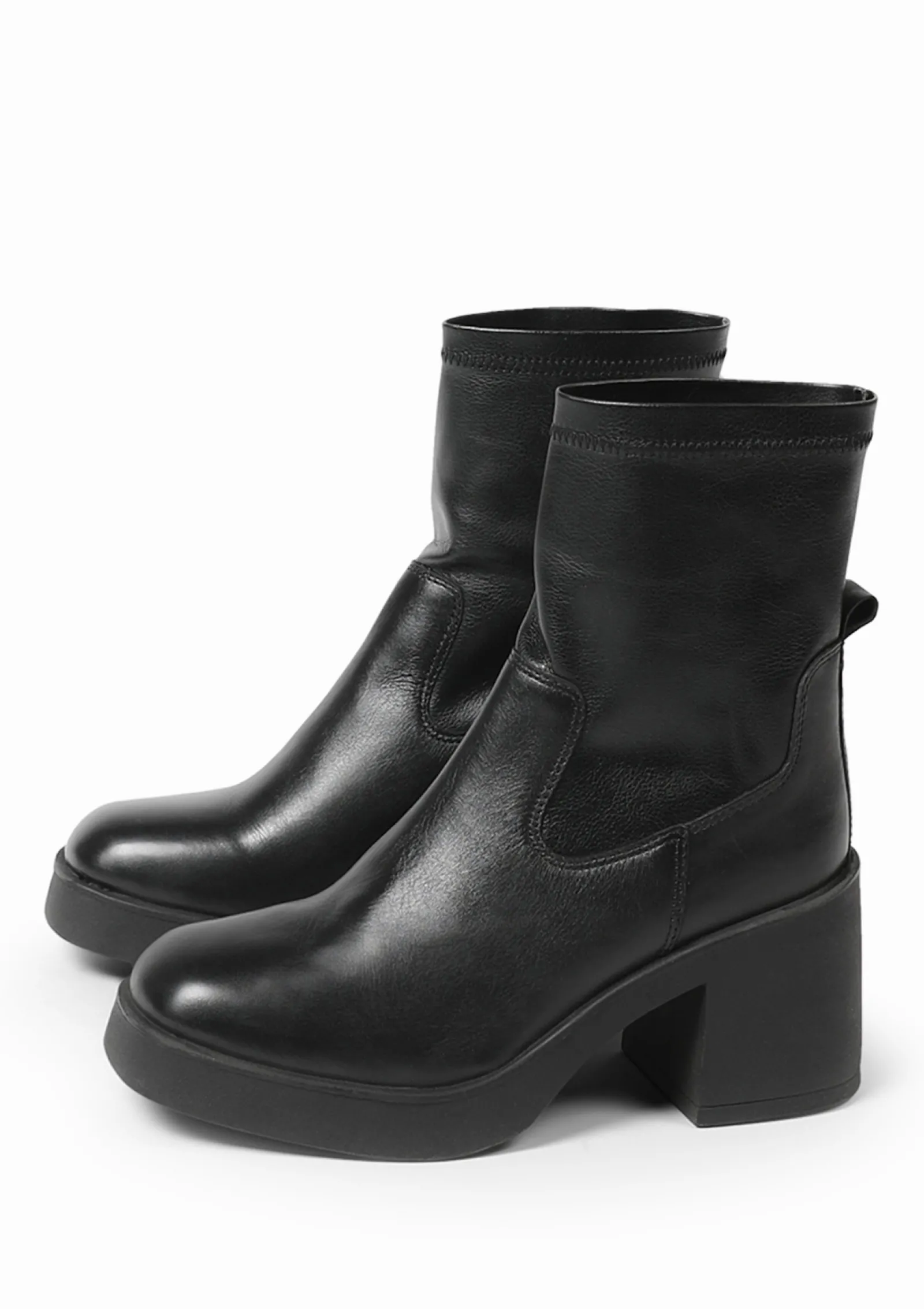Zwarte Leren Enkellaarsjes Met Plateau Hak^Sacha Cheap