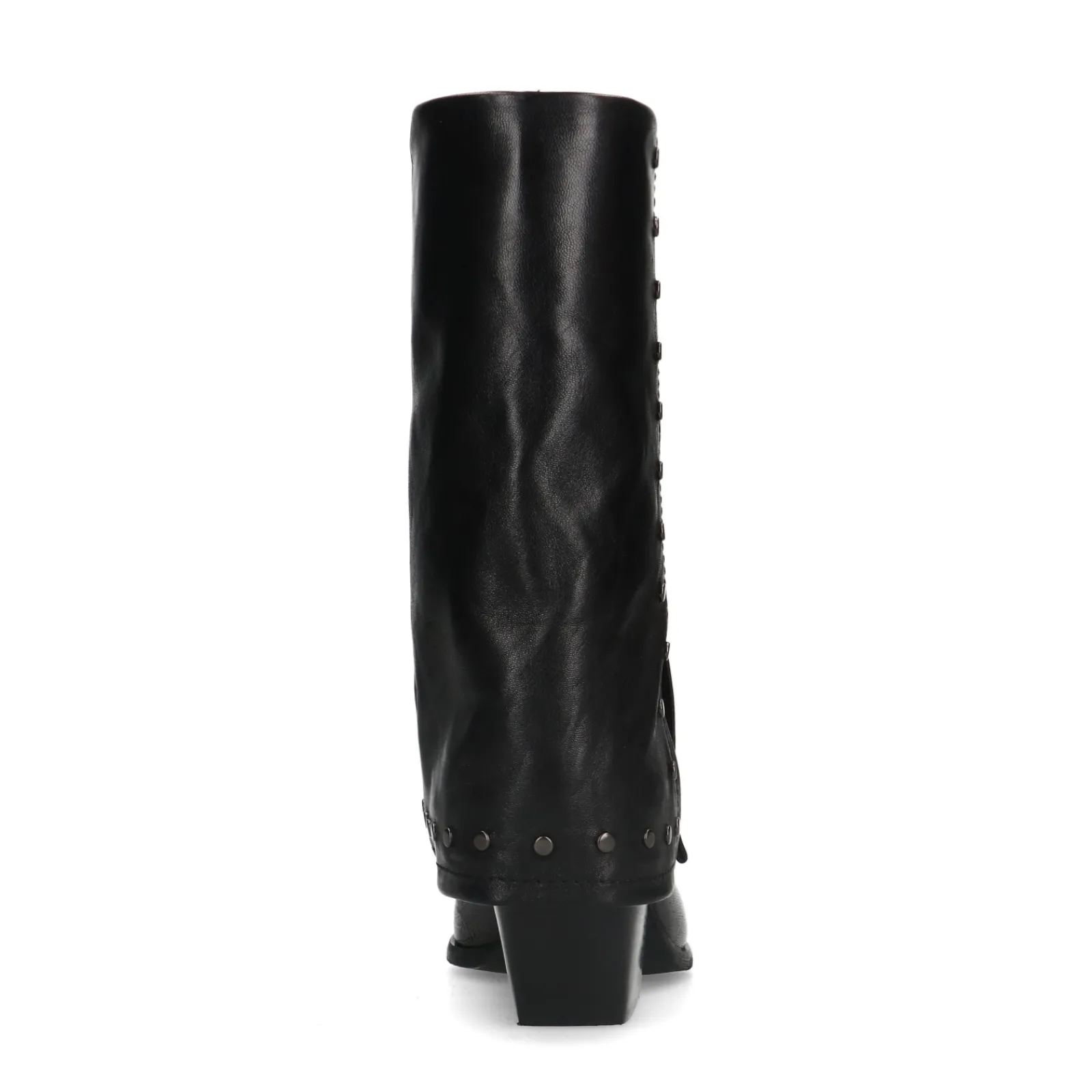 Voeg Deze Zwarte Statement Laarzen Van Sacha Toe Aan Je Laarzen Collectie! De Laarzen Hebben Een Gevouwen Detail Met Studs Voor Een Unieke Look. De Laarzen Hebben Een Puntige Neus En Een Hak Met Een Hoogte Van 7 Cm. De Schachthoogte Is 22 Cm En De Schachtomtrek Meet 35 Cm. De Binnen- En Buitenkant Van De Laarzen Zijn Gemaakt Van Leer. Maak Gebruik Van De Juiste Onderhoudsproducten!