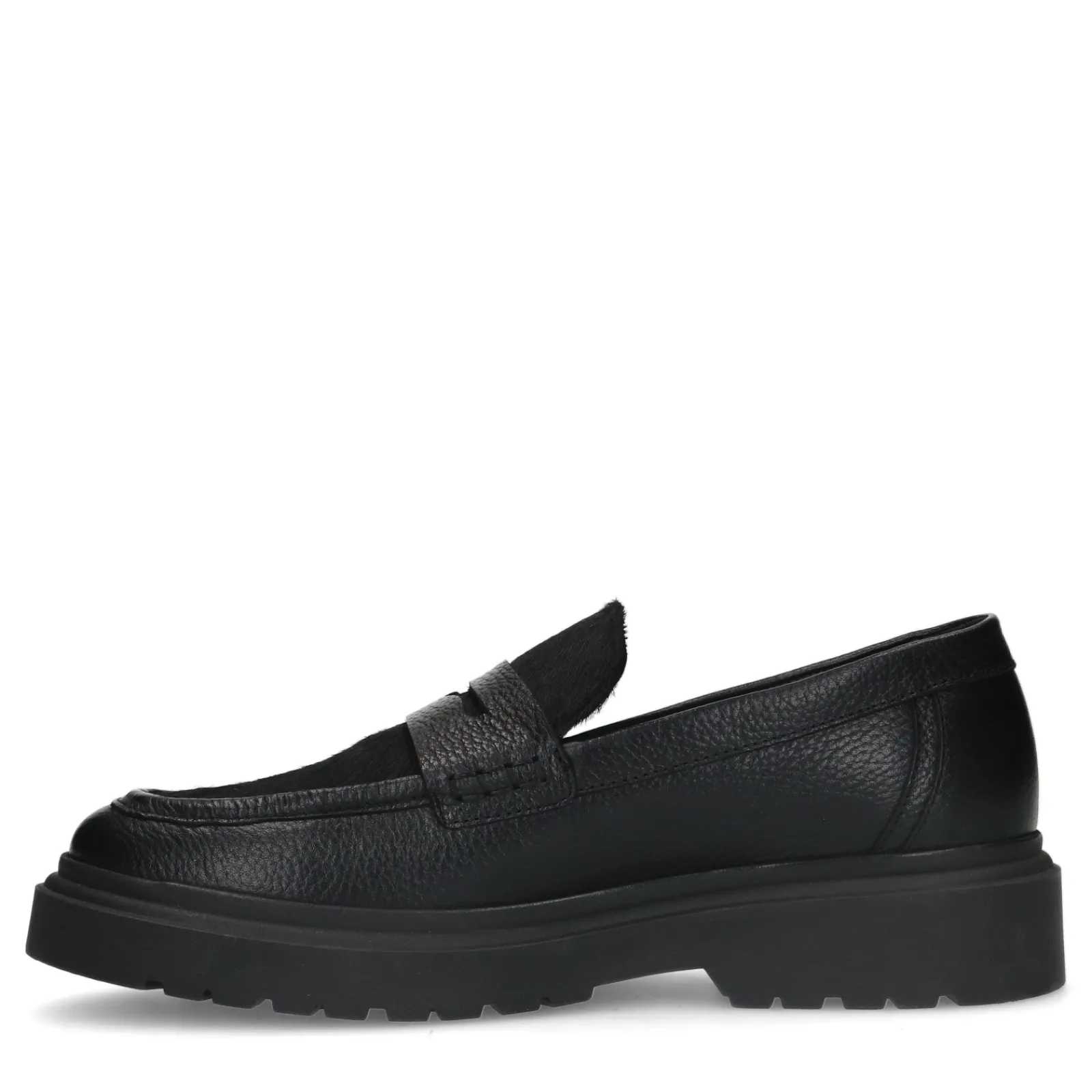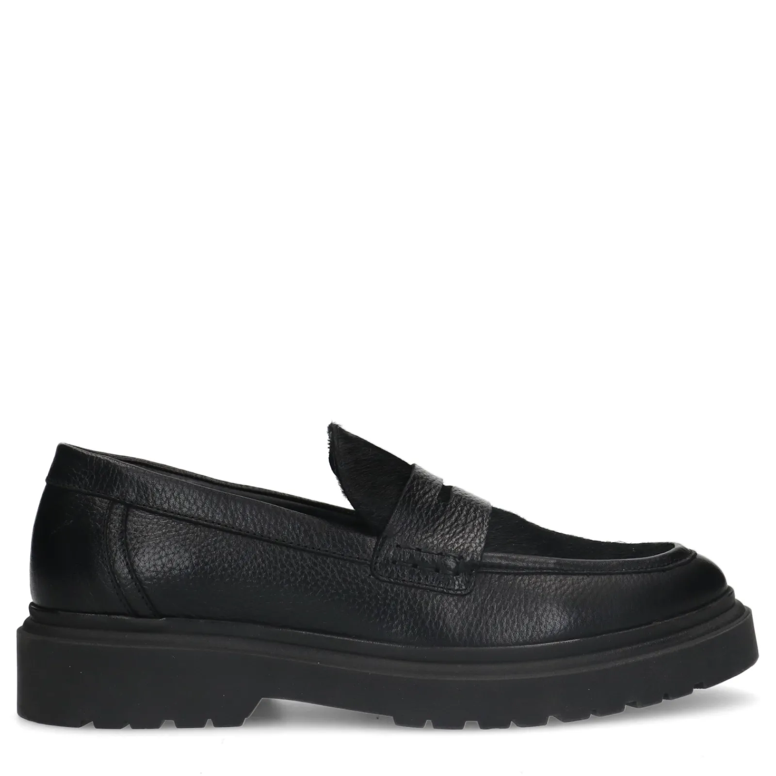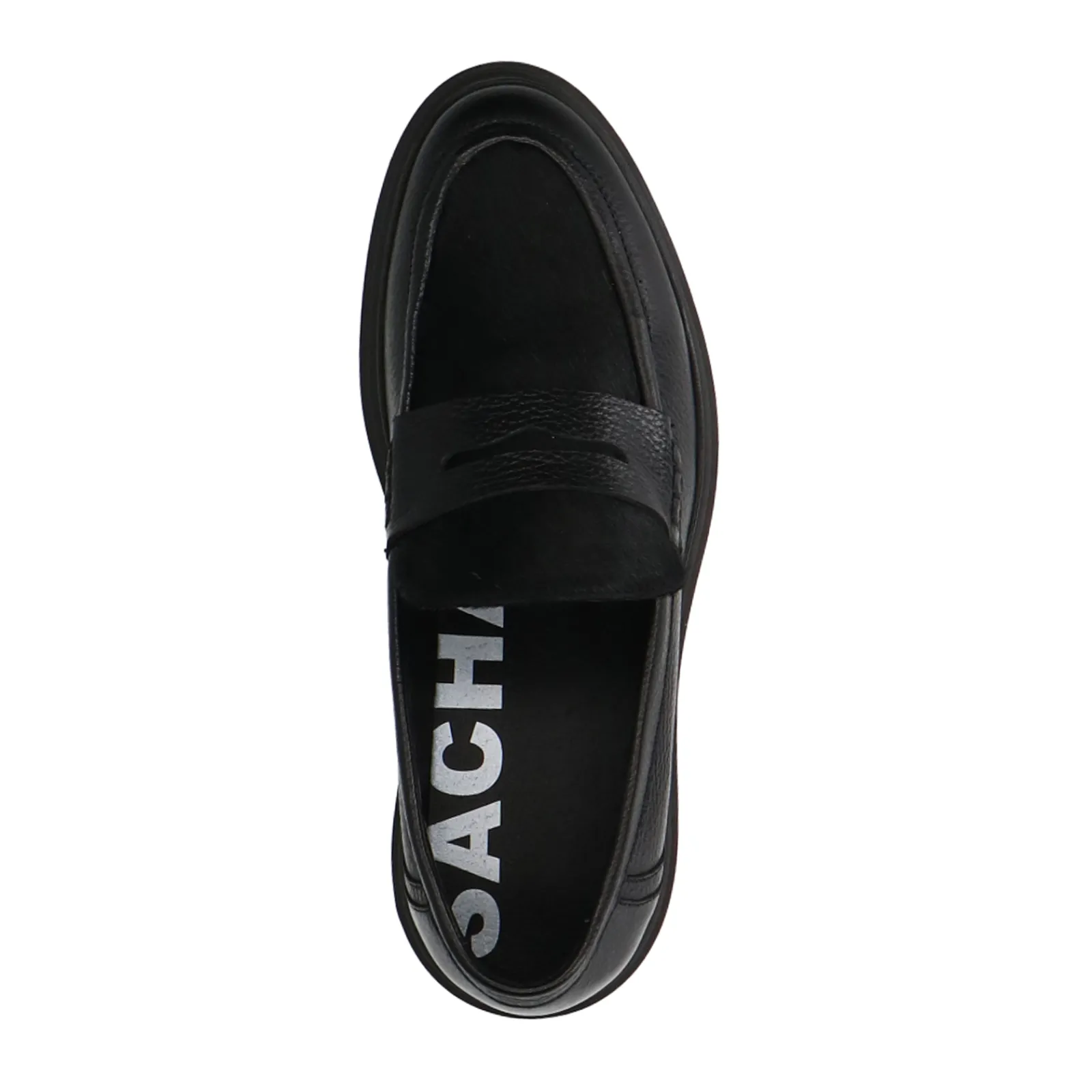 Deze Zwarte Loafers Van Sacha Hebben Op De Upper Een Overlay Van Zacht Materiaal. De Chunky Zwarte Zool Heeft Een Hoogte Van 3 Cm En Een Hak Van 4 Cm. Zowel De Binnen- Als Buitenzijde Is Gemaakt Van Leer. Maak Gebruik Van De Juiste Onderhoudsproducten!