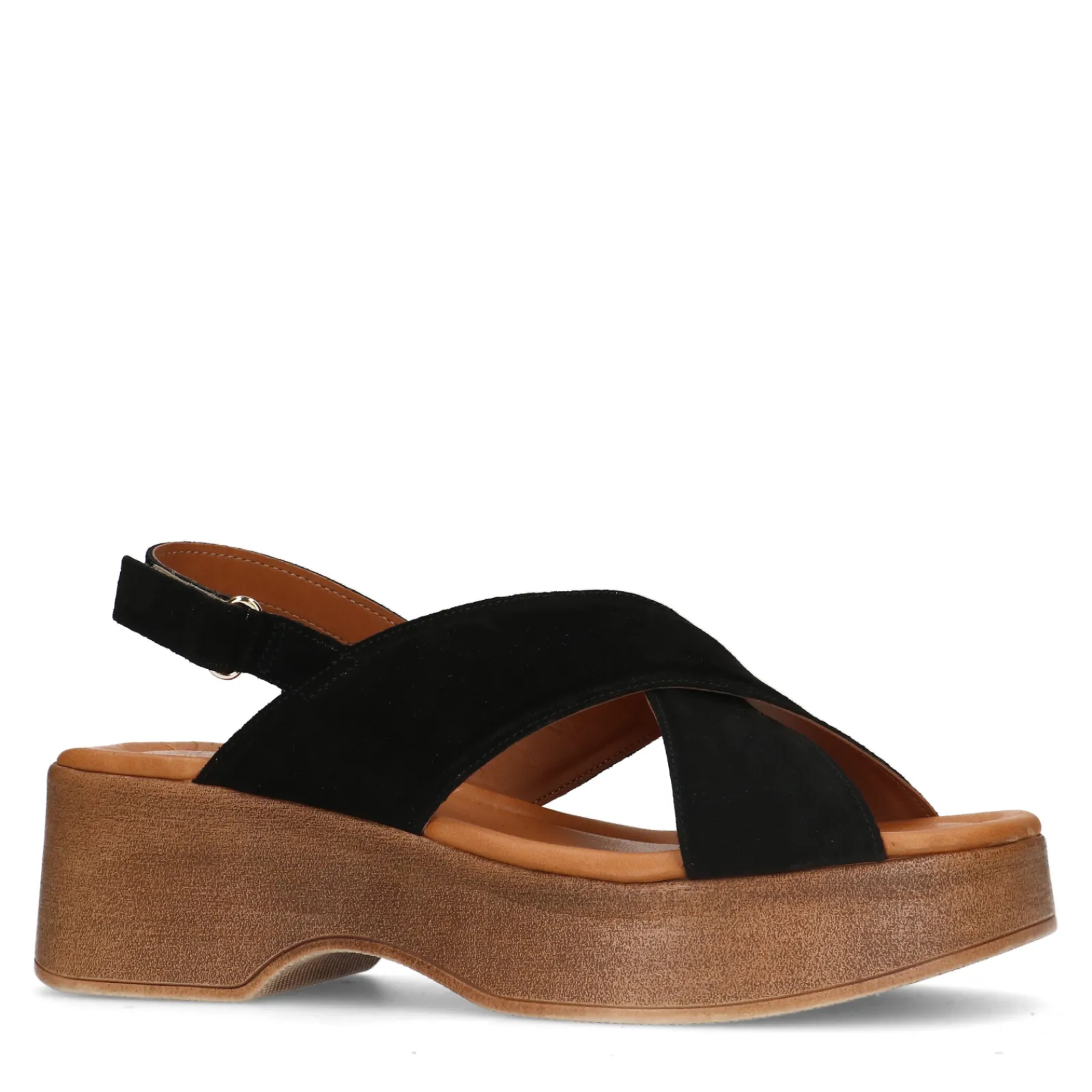 Met Deze Zwarte Plateau Sandalen Van Sacha Ben Je Summer Ready! De Plateau Sandalen Hebben Een Gekruiste Band Over De Voet En Een Enkelbandje Dat Te Sluiten Is Middels Een Klittenband. De Sandalen Zijn Aan De Buitenzijde Gemaakt Van Leer En Aan De Binnenzijde Van Synthetisch Materiaal. De Hak Heeft Een Hoogte Van 6 Cm En Het Plateau Heeft Een Dikte Van 3 Cm. Gebruik De Juiste Onderhoudsproducten Om Je Chunky Sandals Te Verzorgen!