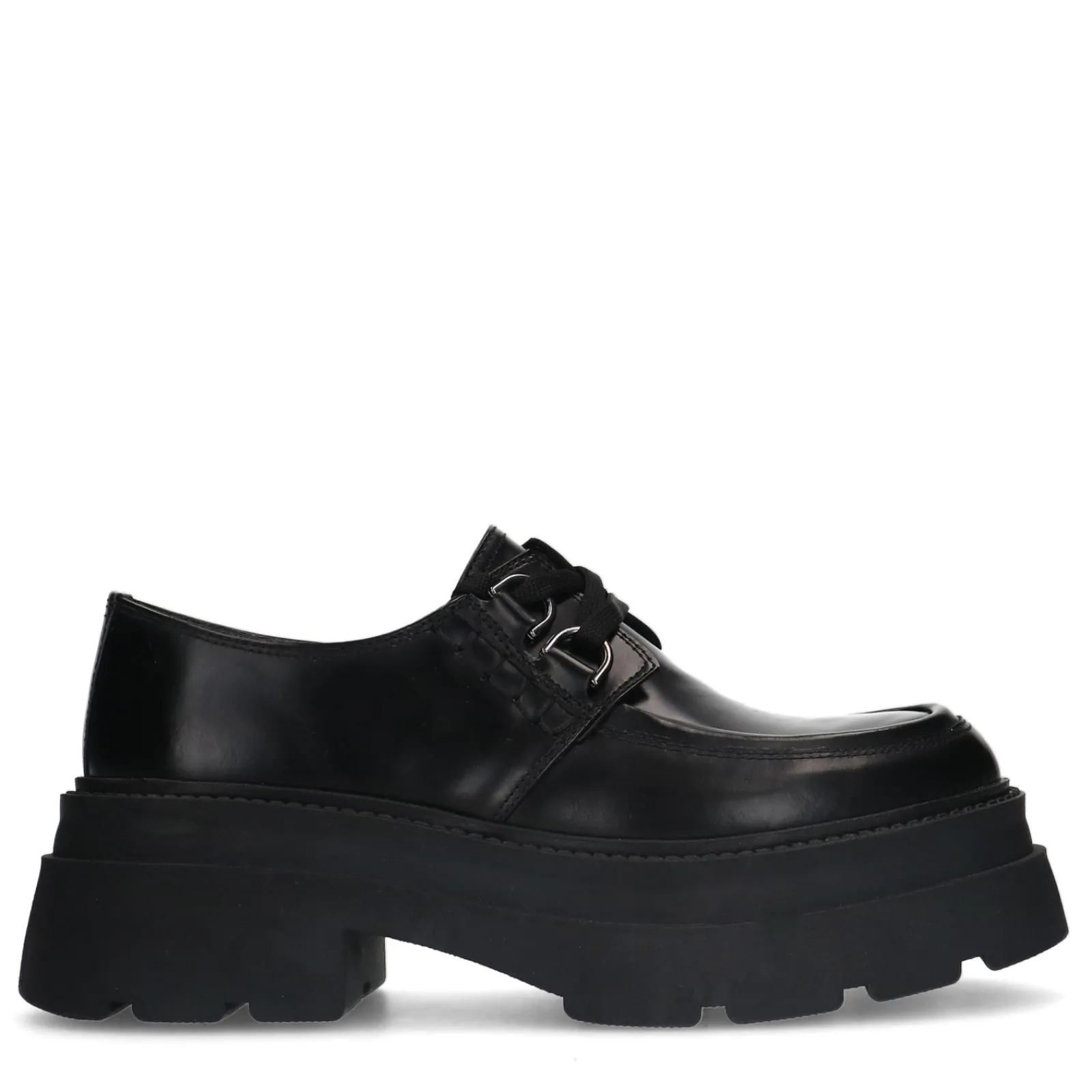 Zwarte Leren Platform Veterschoenen^Sacha Online