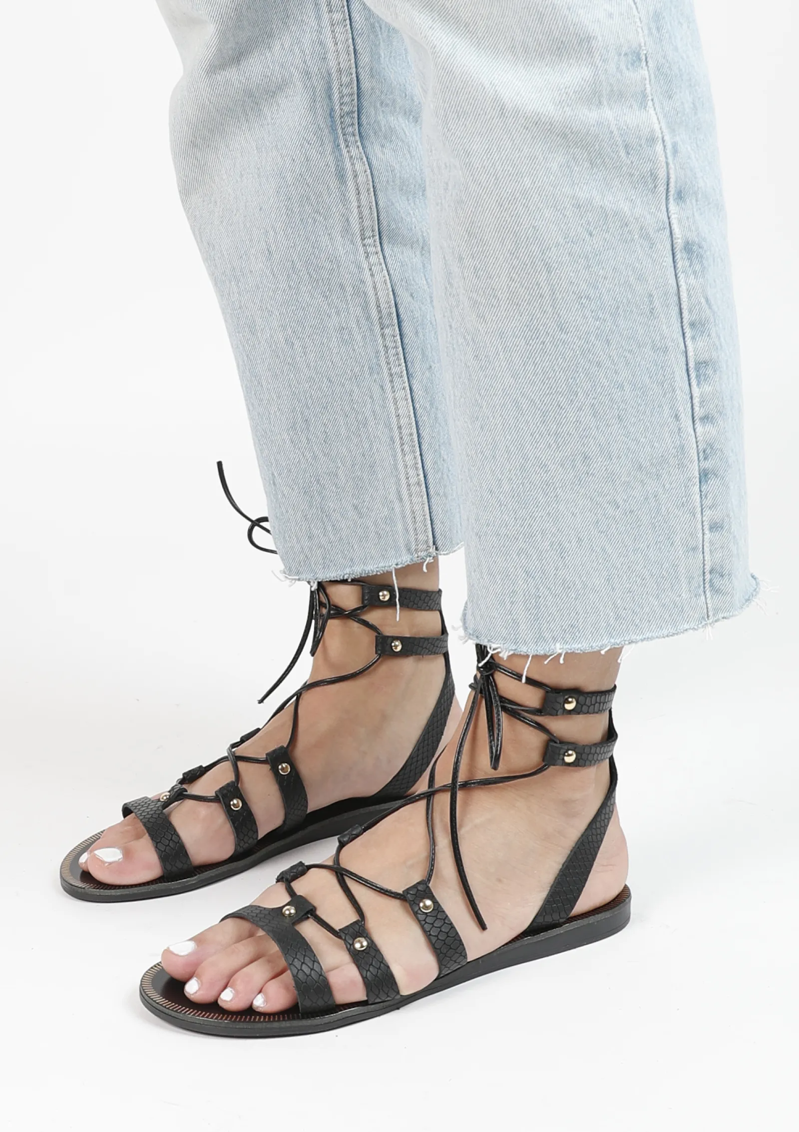 Deze Zwarte Sandalen Van Sacha Hebben Een Subtiele Crocoprint. De Schoenen Zijn Met Zwarte Veters Te Strikken En Hebben Aan De Achterkant Een Kleine Hakverhoging Van 1 Cm. De Sandalen Zijn Aan De Buitenkant Gemaakt Van Leer. Maak Gebruik Van De Juiste Onderhoudsproducten!