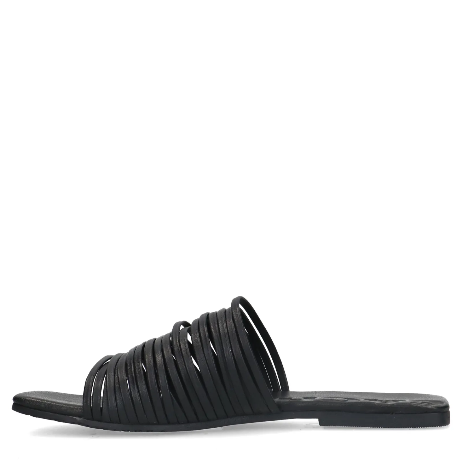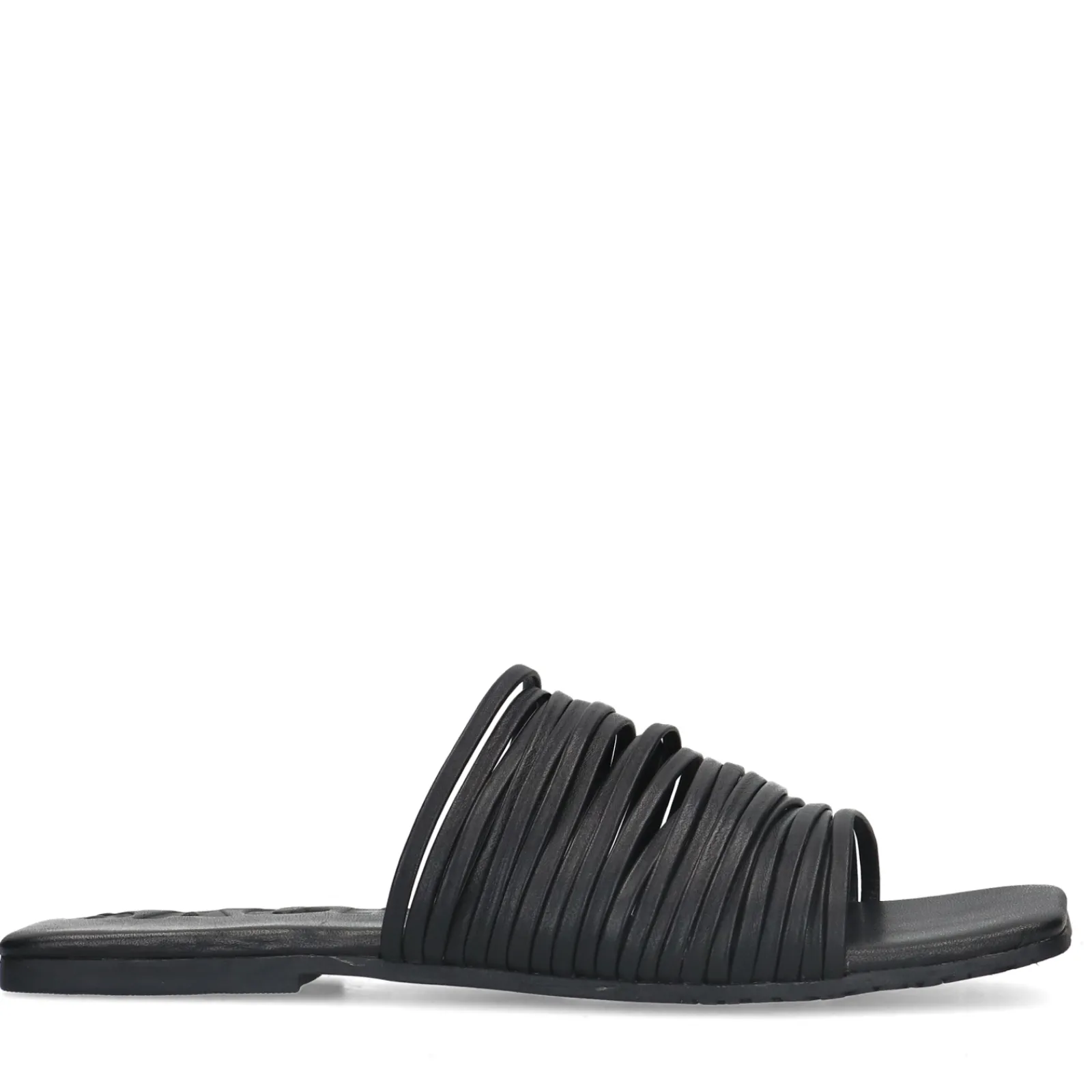 Zomerse Basics: Deze Zwarte Leren Slippers Van Sacha! De Slippers Hebben Een Opvallend Detail Door De Meerdere Dunne Bandjes Over De Voet Wat Zorgt Voor Een Unieke Look. De Slippers Zijn Geheel Gemaakt Van Leer En Hebben Een Platte Hak Van 1 Cm. Maak Gebruik Van De Juiste Onderhoudsproducten.