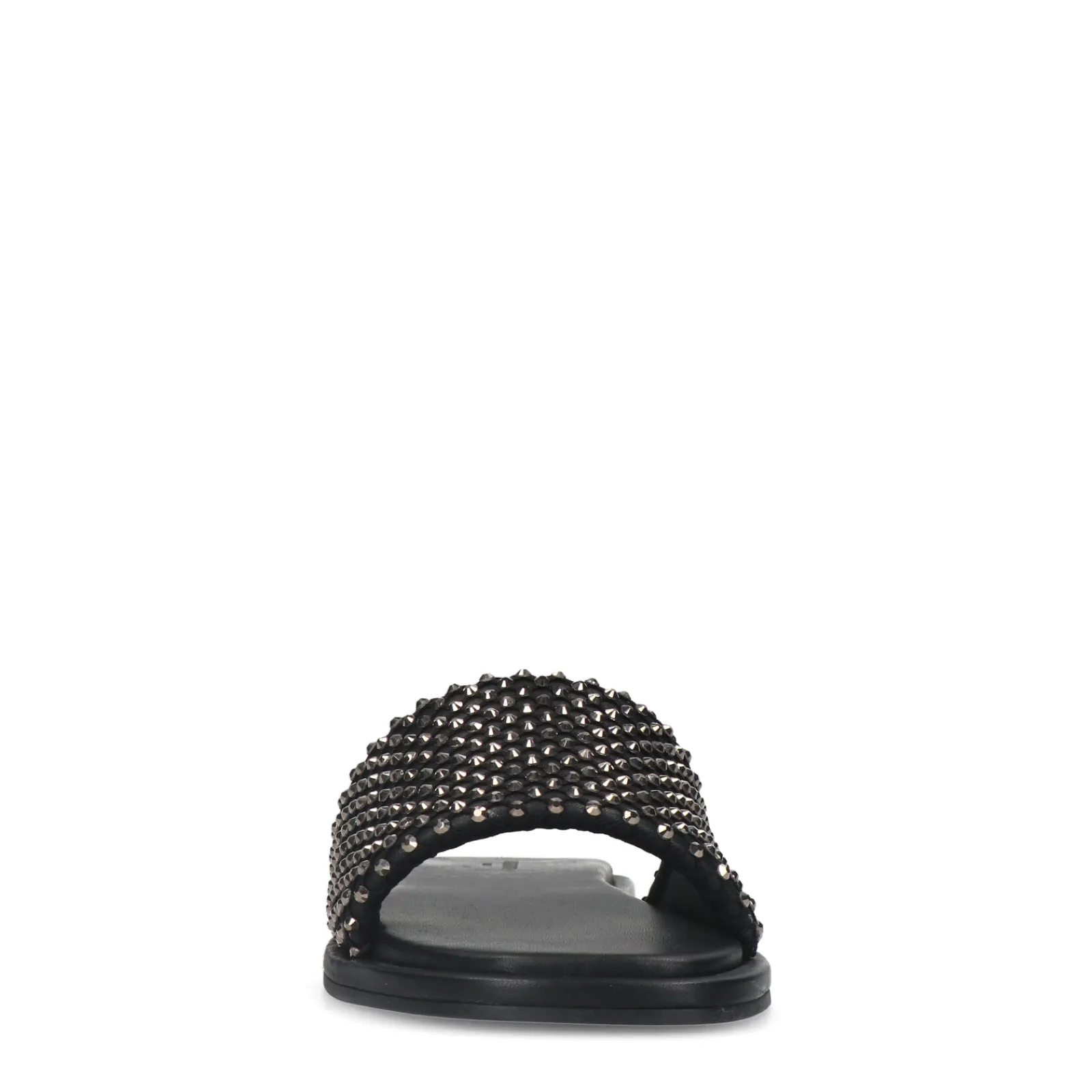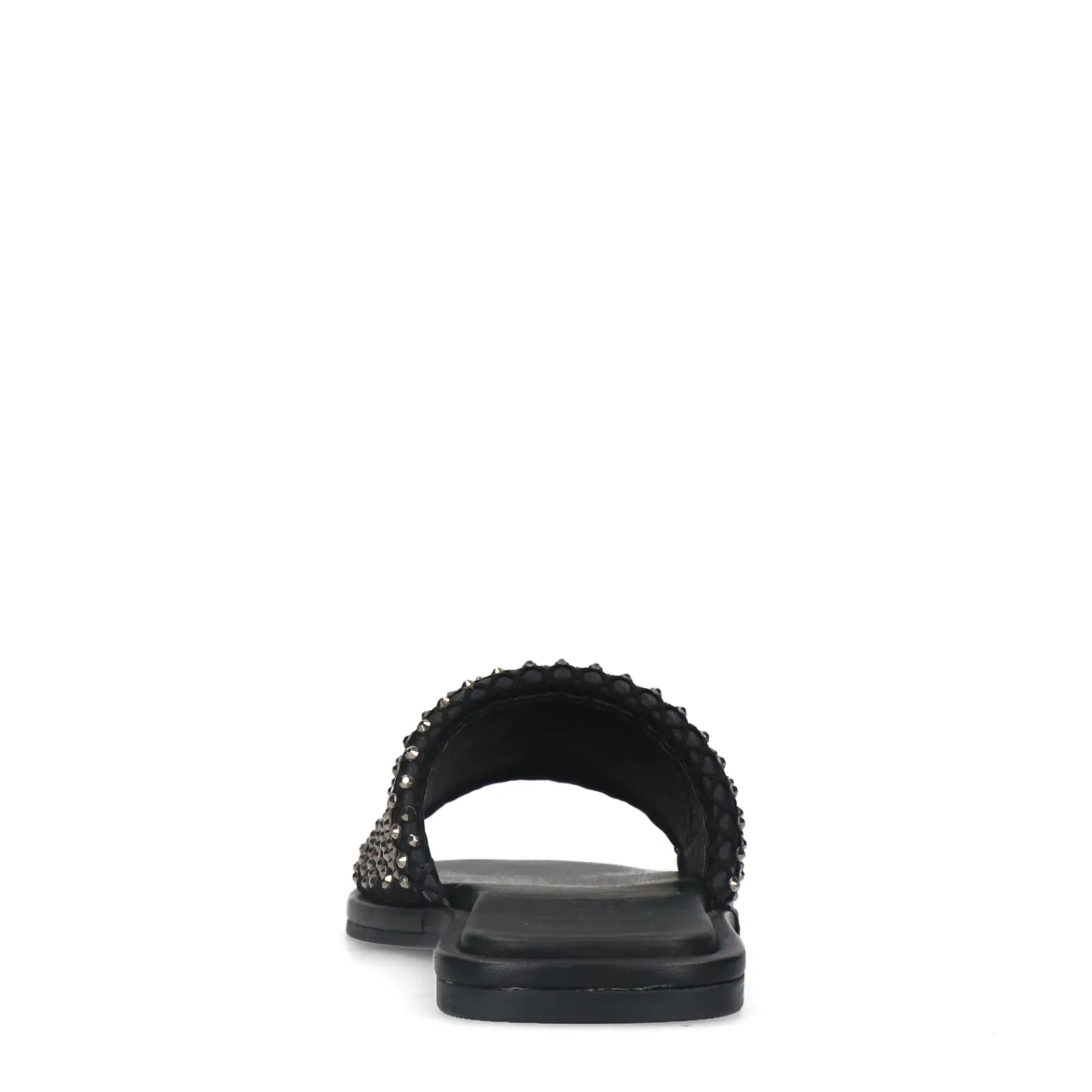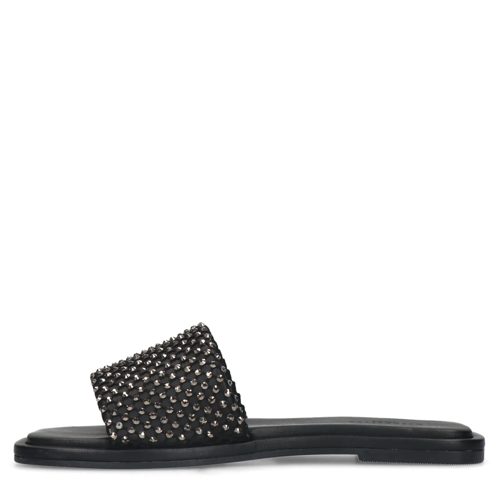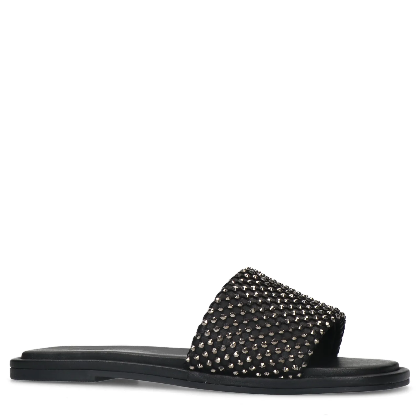 Zwarte Leren Slippers Met Strass Band^Sacha Best Sale