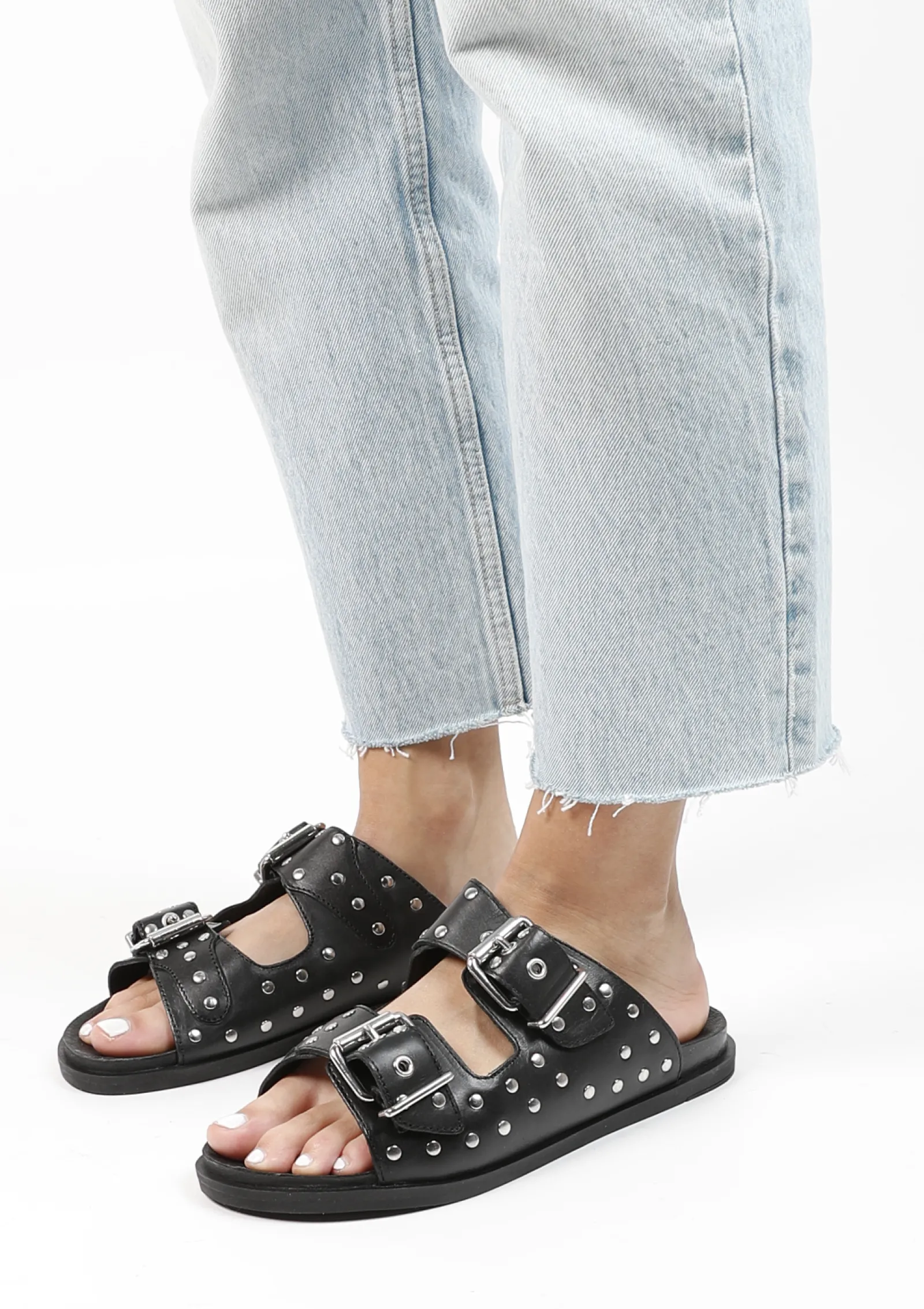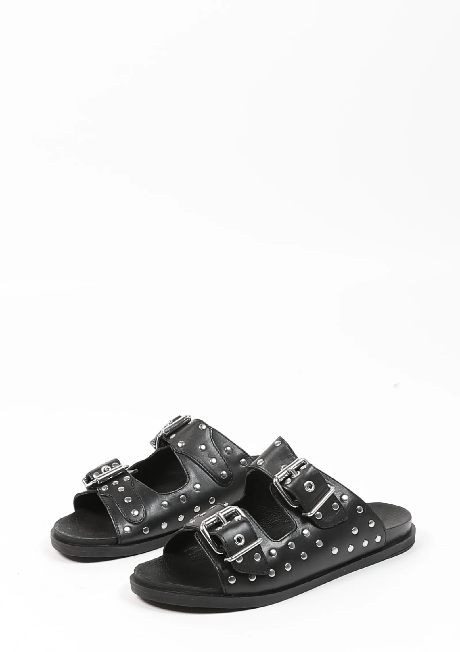 Zwarte Leren Slippers Met Zilverkleurige Studs^Sacha Online