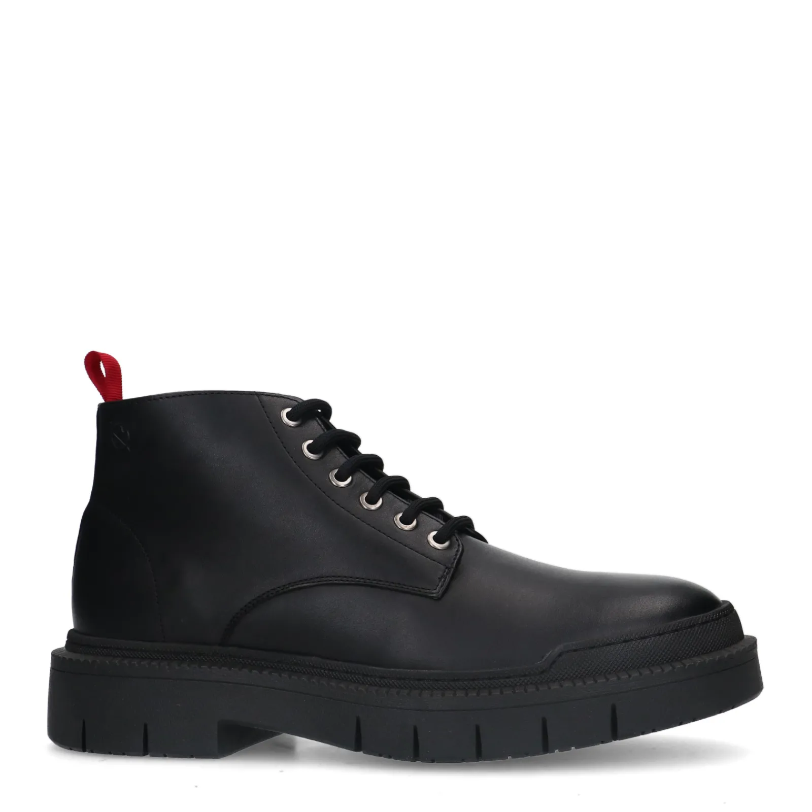 Zwarte Veterboots Van Sacha Met Een Rood Label Aan De Achterzijde Van De Laars. De Heren Boots Zijn Aan De Buitenzijde Gemaakt Van Leer En Aan De Binnenzijde Van Textiel. De Enkelboots Hebben Een Tijdloos En Simpel Design Met 6 Veterogen Aan Iedere Zijde. Maak Gebruik Van De Juiste Onderhoudsproducten.