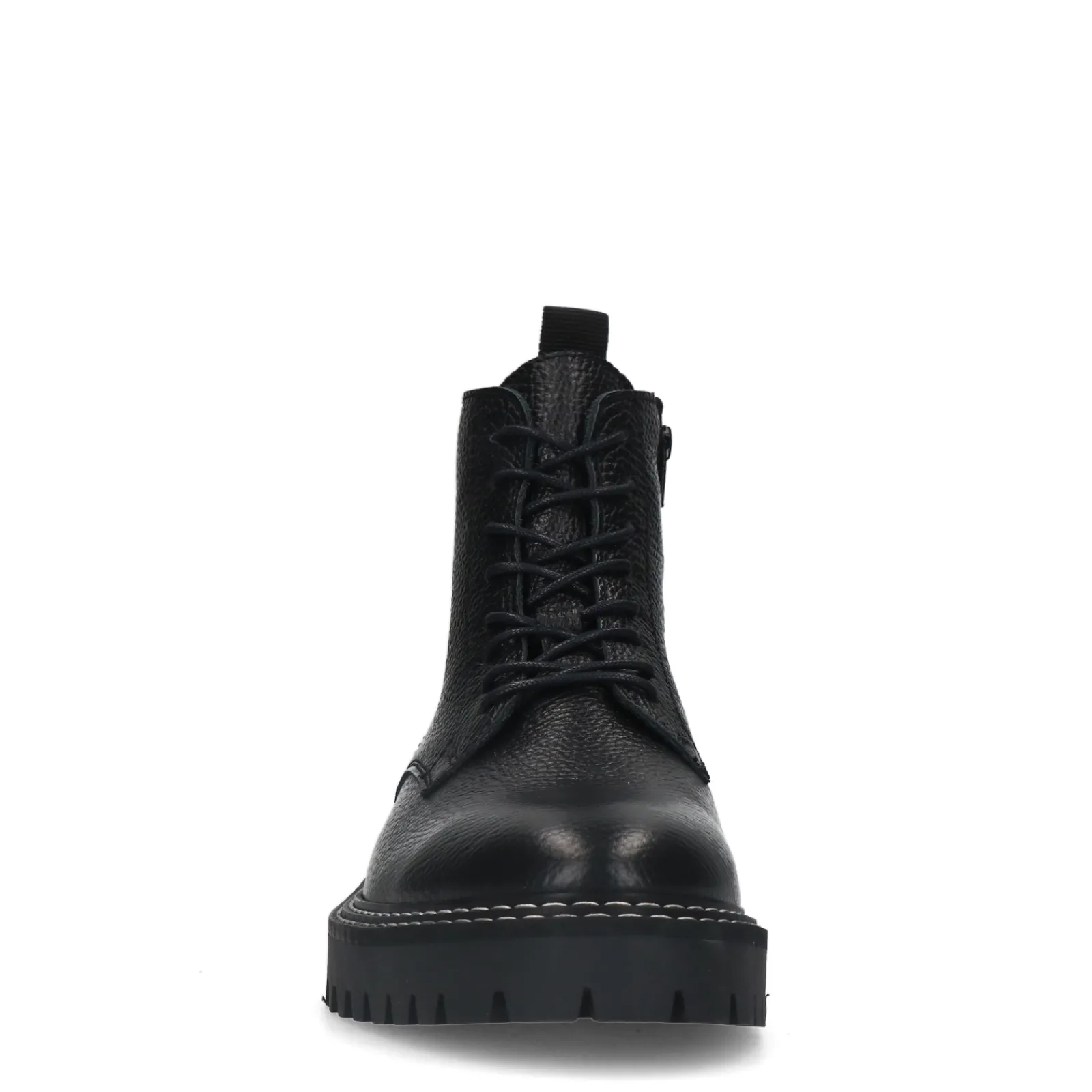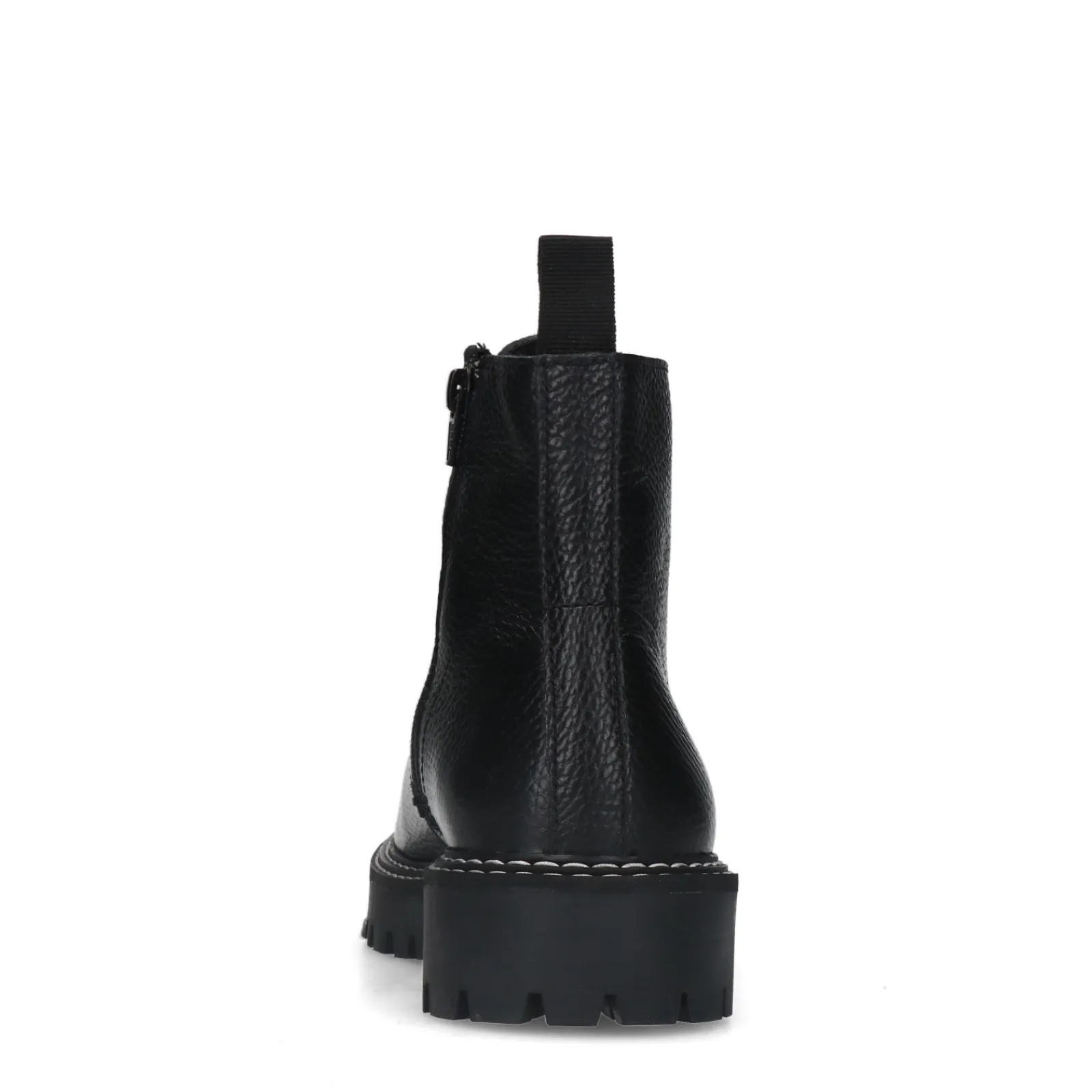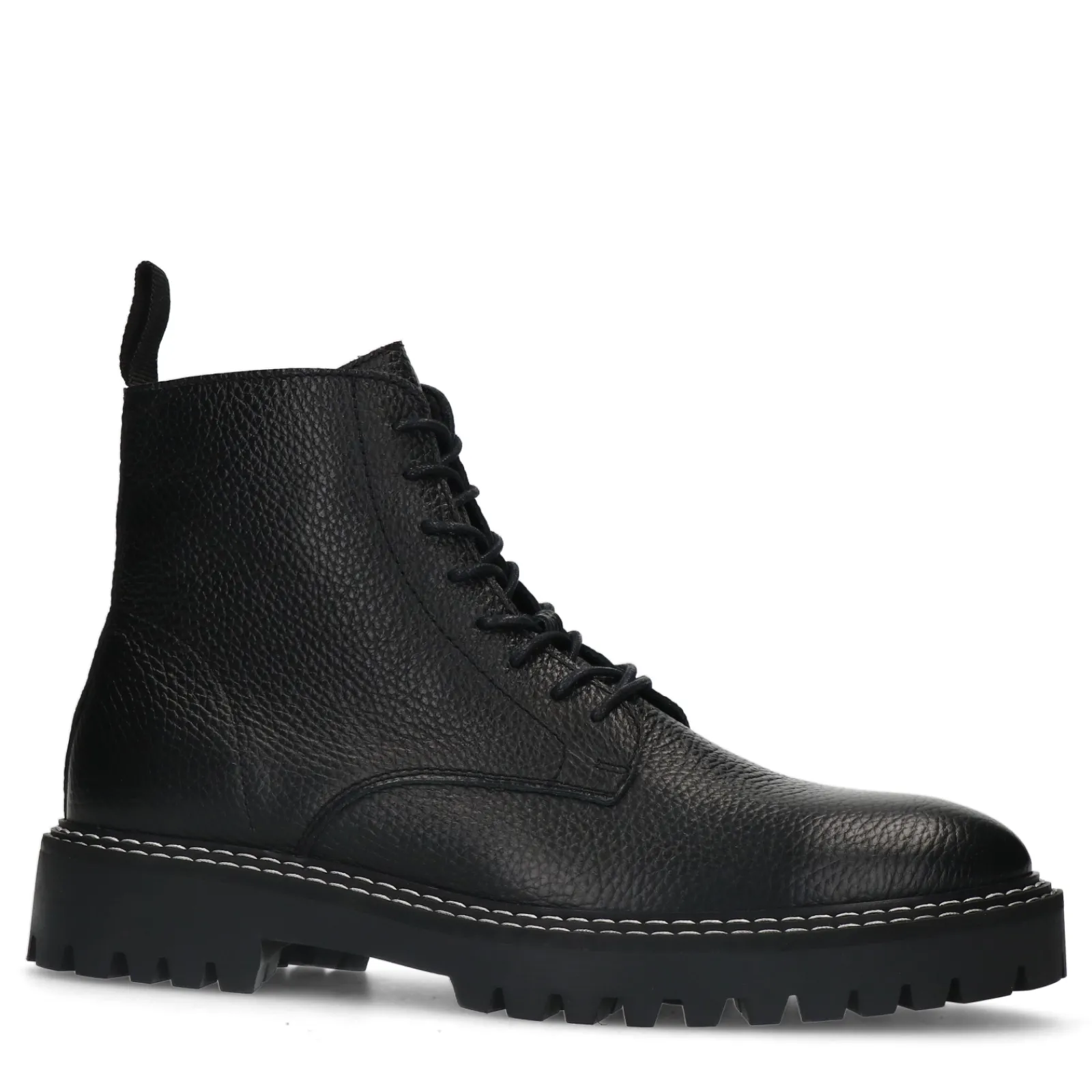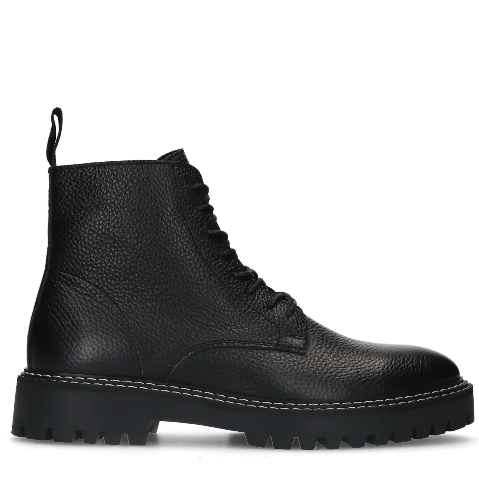 Deze Zwarte Veterlaarzen Van Sacha Hebben Een Chunky Zool En Een Dubbele Rij Witte Sierstiksels Op De Bovenzijde Van De Buitenzool. De Zool Heeft Een Hoogte Van 2.5 Cm Met Een Hakhoogte Van 3.5 Cm. De Zwarte Veterboots Hebben Twee Rijen Met Ieder 5 Veterogen, Een Zwarte Rits Aan De Binnenzijde En Een Zwarte Lus Aan De Achterzijde. Hierbij Hoort Een Schachtomtrek Van 25 Cm En Een Schachthoogte Van 13 Cm. Maak Gebruik Van De Juiste Onderhoudsproducten Om Het Leer Te Beschermen En Te Verzorgen!