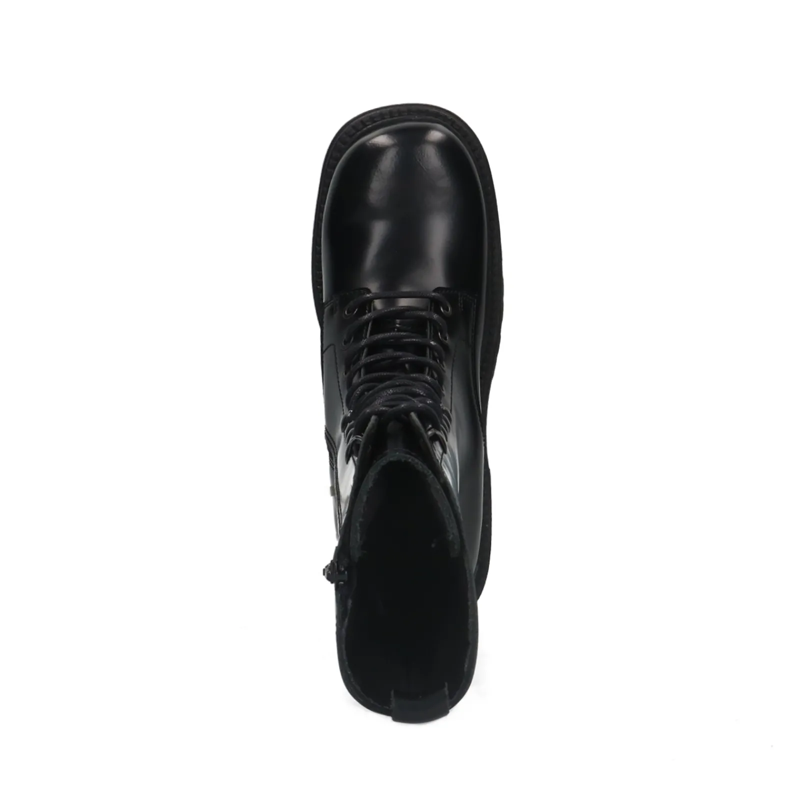 Zwarte Leren Veterlaarsjes Met Plateau Hak^Sacha New