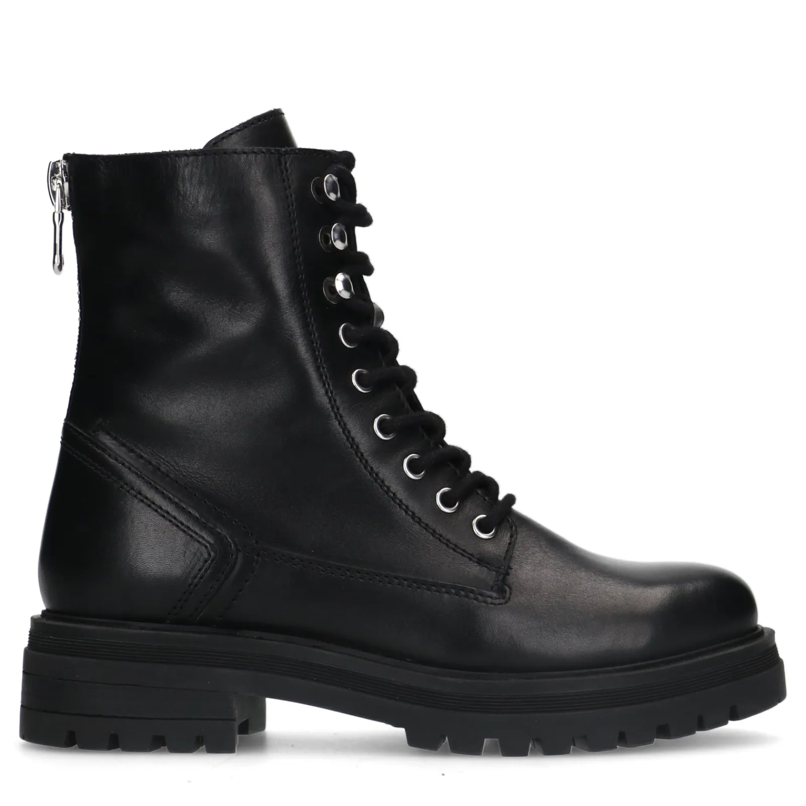 We Love Biker Boots! De Zwarte Enkellaarsjes Van Sacha Hebben Veters En Een Opvallend Zilverkleurig Ritsdetail Aan De Achterzijde Van De Laars. Deze Veterlaarsjes Van Sacha Zijn Aan De Buitenzijde Gemaakt Van Leer En Aan De Binnenzijde Van Textiel. De Hak Heeft Een Hoogte Van 4 Cm En De Zool Heeft Een Hoogte Van 2 Cm. Maak Gebruik Van De Juiste Onderhoudsproducten Om De Enkellaarsjes Te Verzorgen!